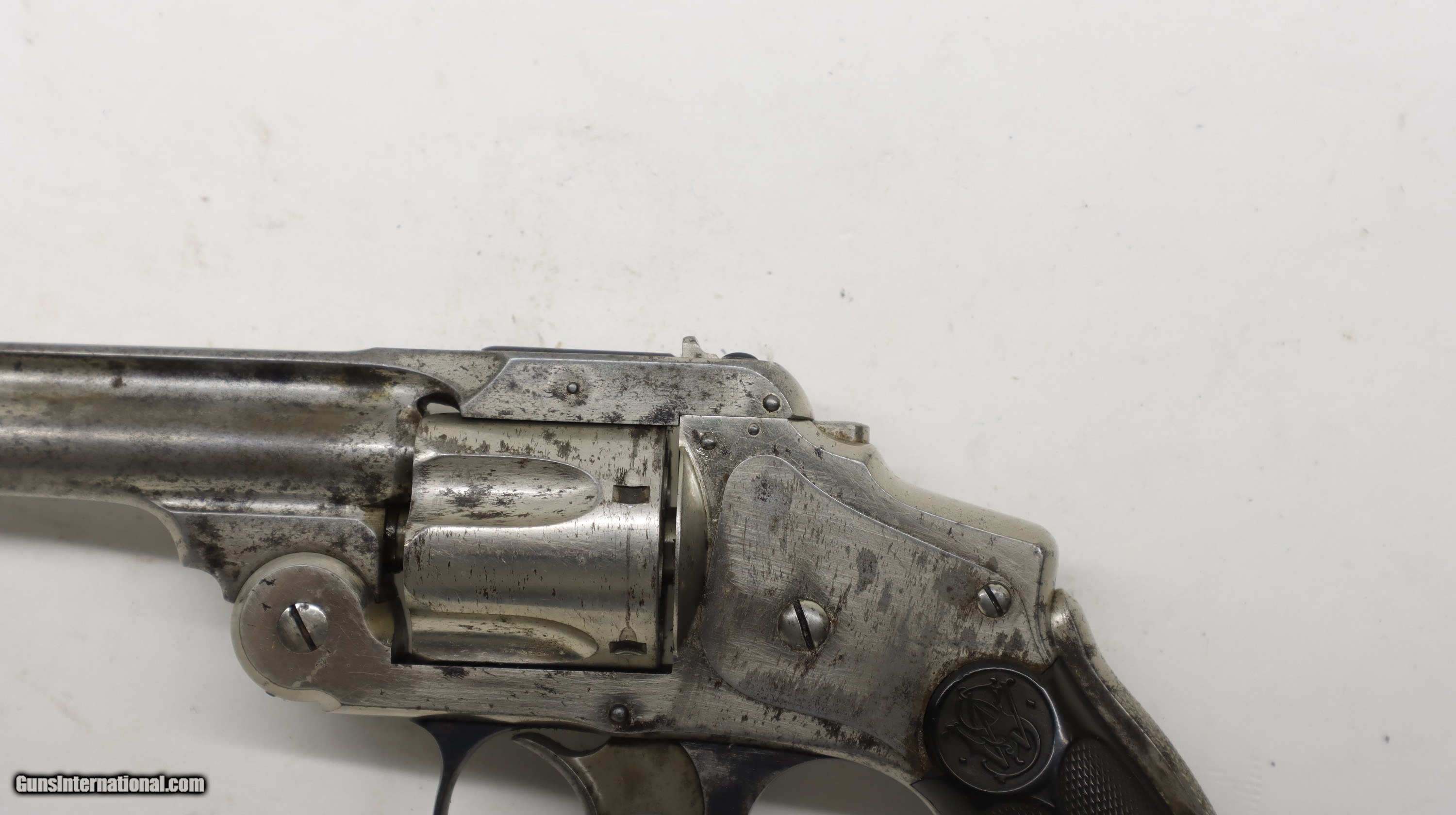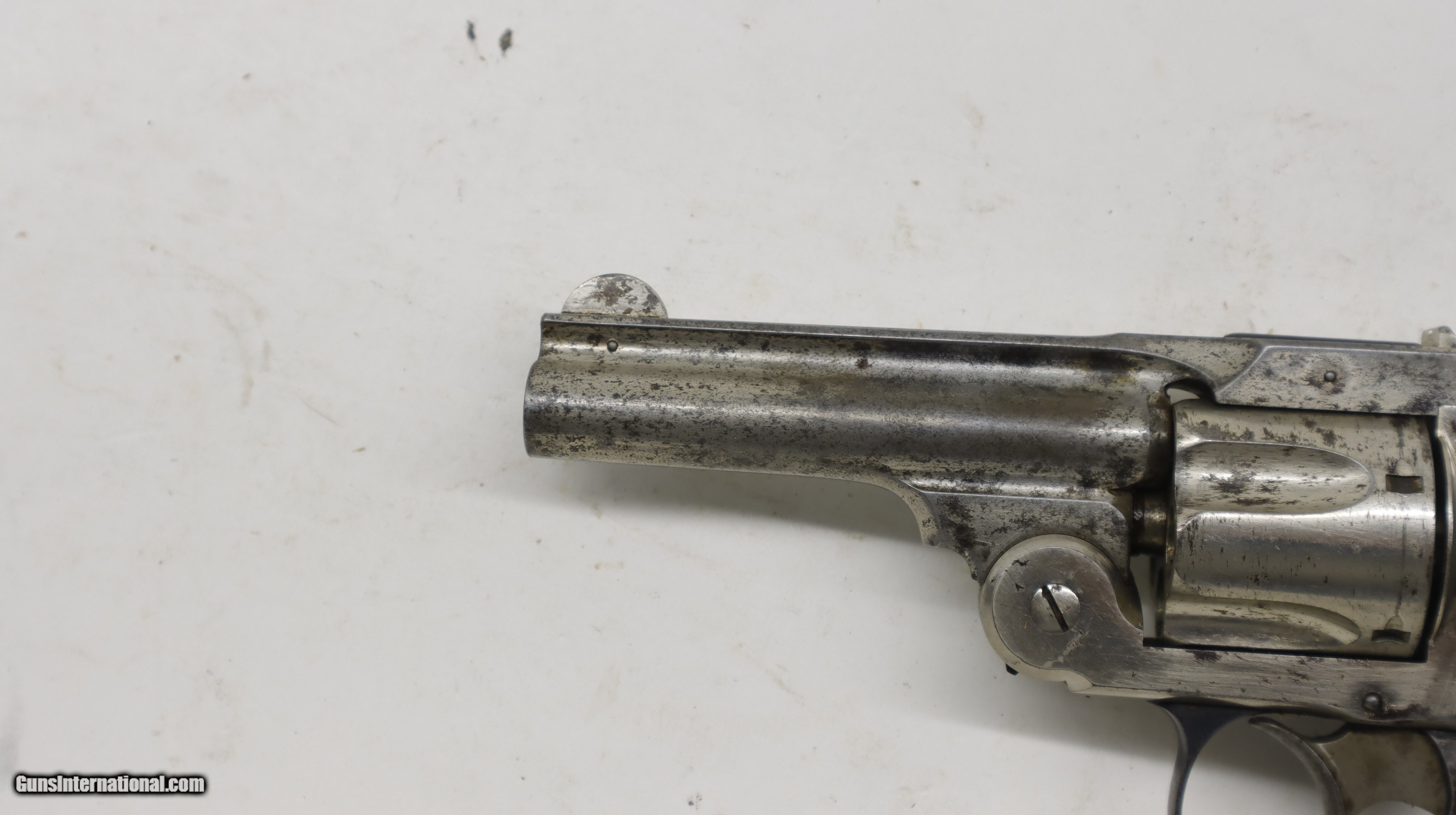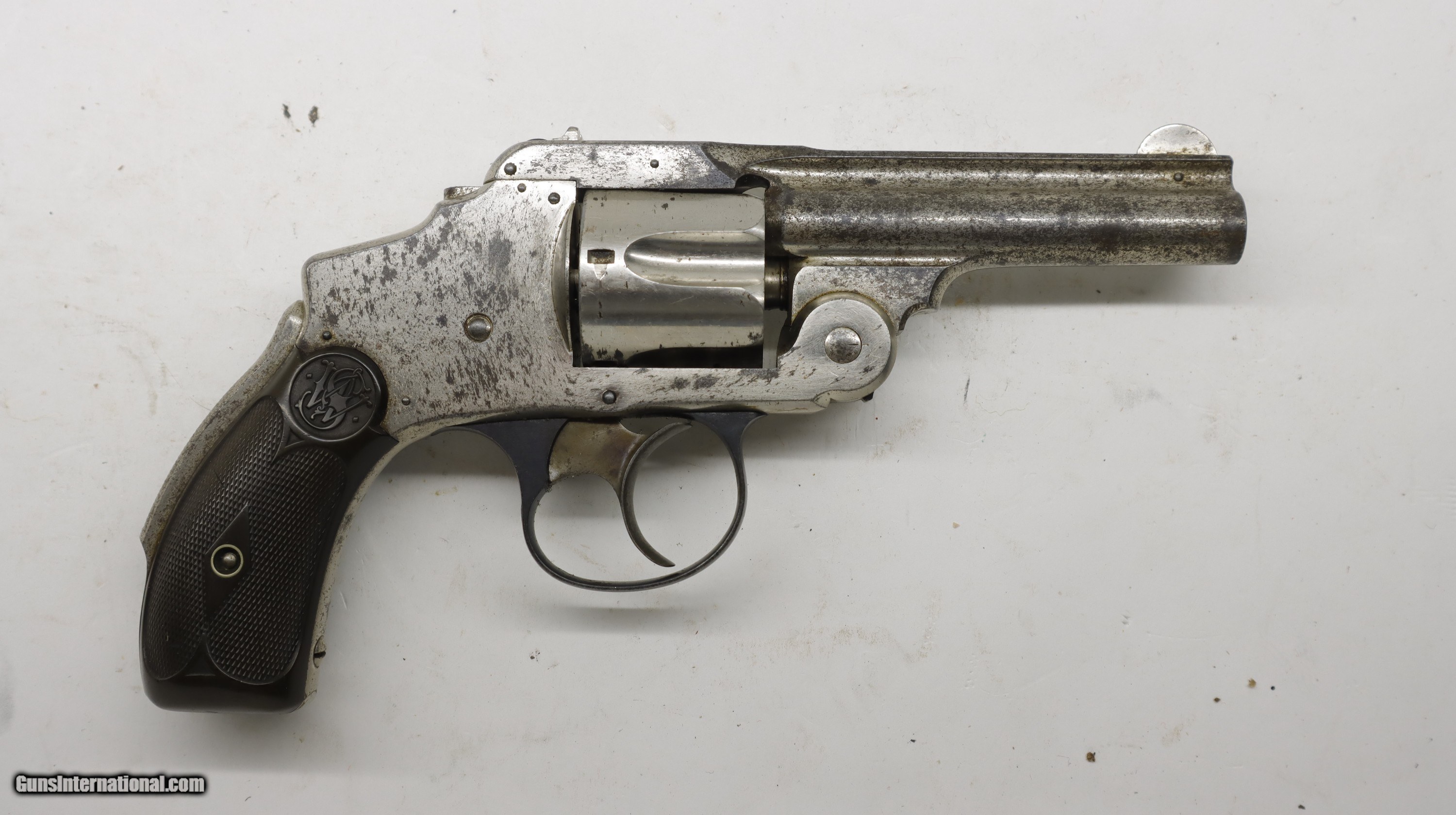 Description: Smith & Wesson S&W 38 Safety Double Action 2nd Model, 3.25" 38 S&W. SN is 158xx. According to Fladerman it was made between 1887-1890. Factory nickel finish, factroy grips. Good bore, looks to be in good mechainally working order.. Trigger, hammer, ejector and cylinder all work as they should. We will trade for silver and gold. All my guns (except layaway) come with a non-firing, 3 day unconditional return privilege, from the day UPS delivers to your dealer. Buyer pays shipping both ways if the gun comes back. Please make sure to make it to your FFL to inspect within the 3 days. We accept personal check or any certified funds. We can also take your credit card, +3%. Email me if you would like these pictures sent to you, they will come through bigger and better than on the listing page here. We do offer Layaway. Our standard terms are 25% down, 90 days. Initial deposit is not refundable. Layaway guns do not have a return/inspection period. Email me with any questions. Please check your local laws to confirm it is legal to own in your state! Buyer pays $30 shipping and insurance to your FFL in the lower 48. AK, HI or PR is extra. I will ship to California, as long as it is legal, NO PROBLEM! I am a licensed FFL, and will include a copy of my FFL with the gun for your dealer’s records. I will ship to a C&R if the gun is eligible. I will ship to California, but you need to confirm the gun is legal where you are, California or other. WE BUY AND CONSIGN GUNS AND GUN COLLECTIONS! Will travel! I am always looking for good clean, old original Winchesters to buy, consign, or trade, especially Pre '64's model 70's and model 54's. WE ALSO TRADE FOR CLASSIC CARS AND TRUCKS! We also trade for gold and silver. SOLD Handgun Caliber: .38 S&W (.38 Colt New Police, .38 Super Police) Manufacturer: Smith & Wesson Model: 38 Safety Barrel Length: 3 1/4 Condition: Used |