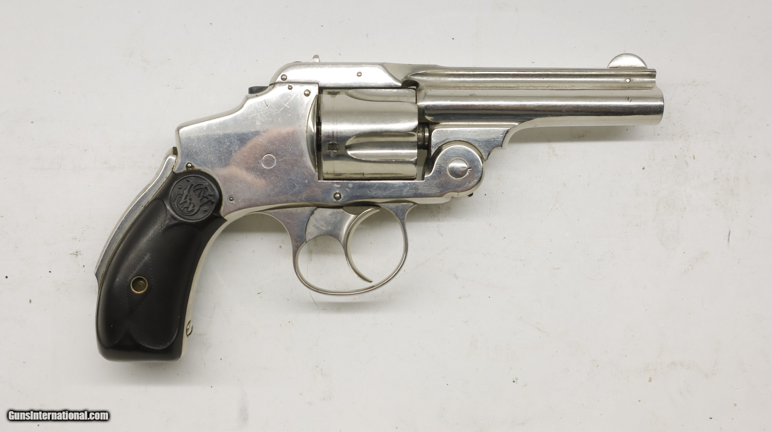 Description: Smith & Wesson S&W 38 Safety Double Action 3rd Model, 3.25" 38 S&W. SN is 132xx. According to Fladerman it was made between 1890-1898. Factory nickel finish, factroy grips. Good bore, looks to be in good mechainally working order.. Trigger, hammer, ejector and cylinder all work as they should. We will trade for silver and gold. All my guns (except layaway) come with a non-firing, 3 day unconditional return privilege, from the day UPS delivers to your dealer. Buyer pays shipping both ways if the gun comes back. Please make sure to make it to your FFL to inspect within the 3 days. We accept personal check or any certified funds. We can also take your credit card, +3%. Email me if you would like these pictures sent to you, they will come through bigger and better than on the listing page here. We do offer Layaway. Our standard terms are 25% down, 90 days. Initial deposit is not refundable. Layaway guns do not have a return/inspection period. Email me with any questions. Please check your local laws to confirm it is legal to own in your state! Buyer pays $30 shipping and insurance to your FFL in the lower 48. AK, HI or PR is extra. I will ship to California, as long as it is legal, NO PROBLEM! I am a licensed FFL, and will include a copy of my FFL with the gun for your dealer’s records. I will ship to a C&R if the gun is eligible. I will ship to California, but you need to confirm the gun is legal where you are, California or other. WE BUY AND CONSIGN GUNS AND GUN COLLECTIONS! Will travel! I am always looking for good clean, old original Winchesters to buy, consign, or trade, especially Pre '64's model 70's and model 54's. WE ALSO TRADE FOR CLASSIC CARS AND TRUCKS! We also trade for gold and silver. SOLD Handgun Caliber: .38 S&W (.38 Colt New Police, .38 Super Police) Manufacturer: Smith & Wesson Model: 38 Safety Barrel Length: 3 1/4 Condition: Used |