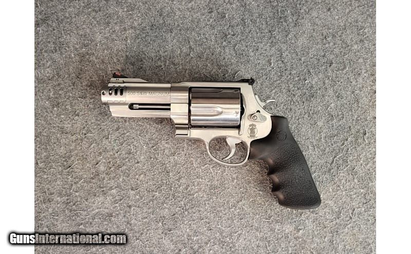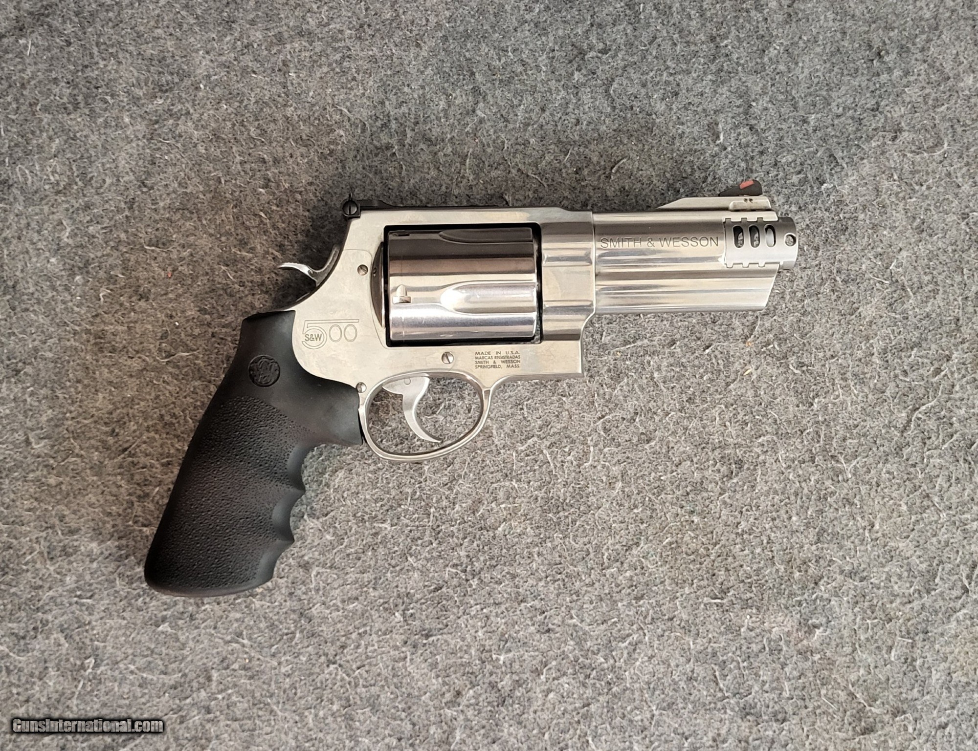 Description: This Smith & Wesson double-action revolver is chambered in .500 S&W and is in good overall condition with light wear around the hammer and trigger. This model is known as the most powerful production revolver, firing the .500 S&W Magnum cartridge for hunting large game like bear and bison. This revolver comes with a box. .500 S&W Magnum Barrels: 4.5 inches Weight: 4 Pounds Item Location: Sidney, NE Price: $1,299.99 Contact Seller |