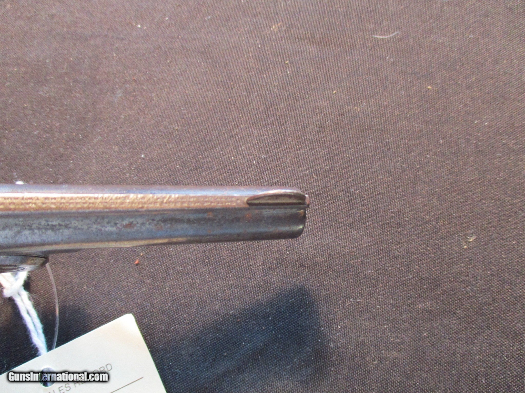 Description: Smith and Wesson 32 S&W safety hammerless, first model. Blued with a 3" barrel. Factory finish metal, factory grips. SN is 136xx. Email me if you would like these pics sent to you, they will come through bigger and better than on the listing page here. Email me with any questions. I am a store front dealer, and I will close s if the gun sells locally. Once it has aI will pull it from my shelves. Please check your local laws to confirm it is legal to own in your state! Buyer pays $25 shipping and insurance to your FFL in the lower 48. AK, HI or PR is extra. I will ship to California, NO PROBLEM! All my guns come with a non firing, 3 day unconditional return privilege, from the day UPS delivers to your dealer. Buyer pays shipping both ways if the gun comes back. I can add a new hard case by PLANO for secure shipping for $25 if the buyer wishes (highly recommended, cheap insurance, really helps keep the UPS monster from eating my guns!). No sales tax on guns ship out of Kansas, guns sold in Kansas are subject to Kansas sales tax. I am a licensed FFL, and will include a copy of my FFL with the gun for your dealers records. I will ship to a C&R if the gun is eligible. I will ship to California, but you need to confirm the gun is legal where you are, California or other. I am always looking for good clean, old original Winchesters to buy, consign, or trade, especially pre '64's model 70's and model 54's. WE ALSO TRADE FOR CLASSIC CARS AND TRUCKS! Email me with any questions, and good luck! SOLD |