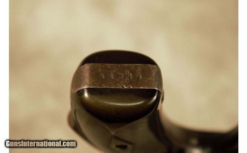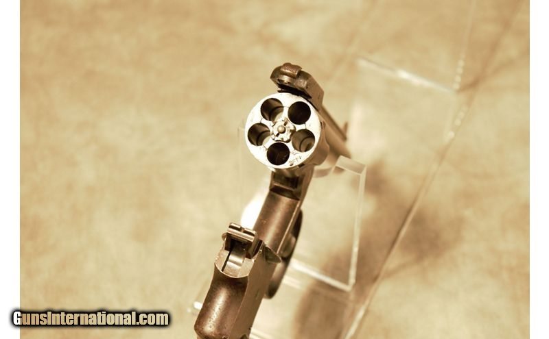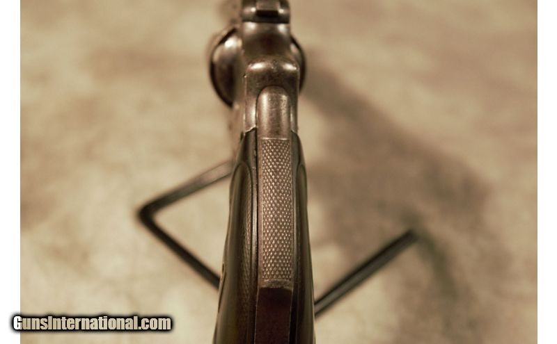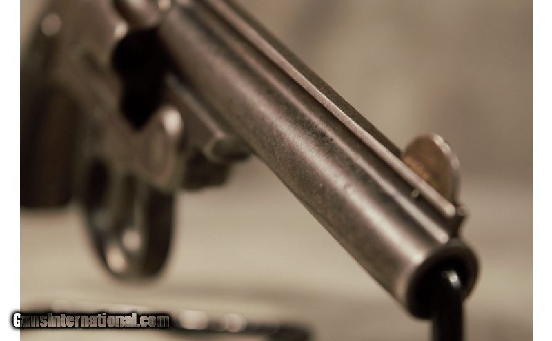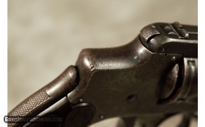 Description: The Smith & Wesson Safety Hammerless nicknamed by collectors as the Lemon Squeezer is a double-action revolver that was produced from 1887 to 1940 by Smith & Wesson. Based on the Smith & Wesson Model 2 double-action design the revolver incorporated an internal hammer and an external grip safety on its back-strap.These top-break revolvers were designed for fast reloading and concealed carry as the hammer was internal and would not snag on drawing the revolver from a pocket. .32 S&W SOLD Chambers: 32 S&W Metal Condition: "The metal showns signs of pitting and some rust with some dings, scratches, and gouges Bore Condition: The barrel showns signs of a small amount of rust and pitting Barrels: 3.5 Triggers: Double action only Sights: Rear notch & front blade Item Location: Chesterfield, MI |