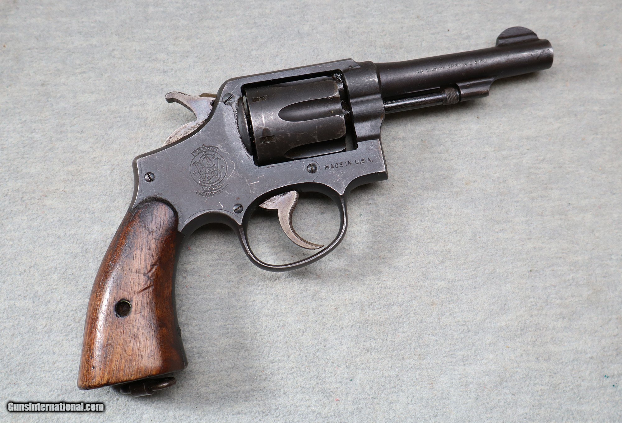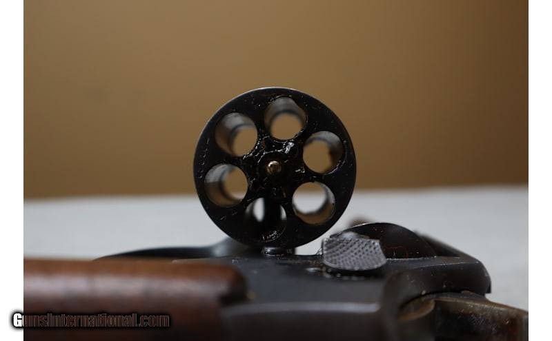 Description: The Victory .38 was a wartime version of the original Smith and Wesson Model 10 first introduced in 1899. The gun was variously known as the S&W Military and Police or the S&W Hand Ejector. Total production exceeded six million copies. While civilian variants typically sported a deep blue finish and a variety of barrel lengths, the Victory model was bred purely for combat. The Smith & Wesson "Victory Model" was chambered in .38 Spl. and had a 4" barrel as made under a World War II U.S. Navy contract. The Victory model typically sported a V-prefix in front of the serial number and was produced between 1942 and 1944. Wartime Victory models featured a lanyard ring on the butt and a rugged sandblasted and Parkerized finish. This example is still in good shape and generously greased up. .38 S&W Special Metal Condition: good Wood Condition: good Barrels: 4" pinned barrel Triggers: SA/DA Butt Pad: wood grips Weight: 1 LB 12 OZ Sights: "blade front sight, channel rear sight Item Location: La Vista, NE Price: $699.99 Contact Seller |