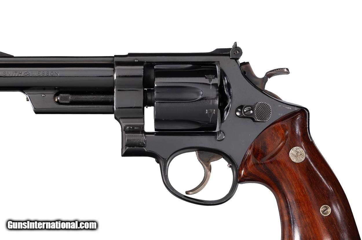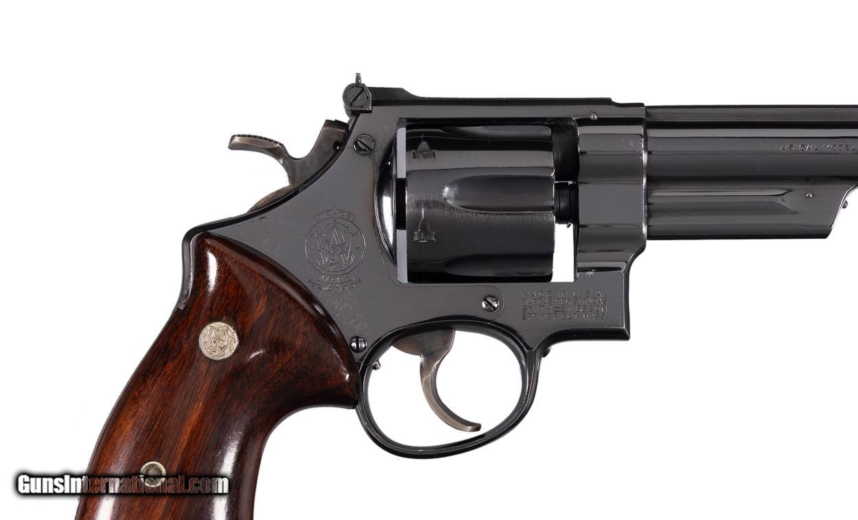 Description: Built in 1956 on the five screw N-frame, this incredibly rare special ordered Model Pre Model 25 is equipped with a 5” barrel, original bright blue finish and smooth rosewood presentation target stocks. The configuration and rare barrel length have been confirmed by the factory S&W Historical Foundation and the gun is guaranteed to letter as shown. Knowledgeable collectors are aware of the extreme rarity of non standard barrel lengths as they were not catalogued. An impressive and exceedingly rare N-frame that will fill a hole in virtually any collection. The gun remains in excellent overall condition with some scattered light aging on the frame and knuckle along with slight wear to the muzzle. The bore and cylinder chambers are mint and the mechanical working order is flawless. Overall a desirable and rare N-frame that will take years of searching to replicate. Price: $8,500.00 Shipping: $25.00 Contact Seller |