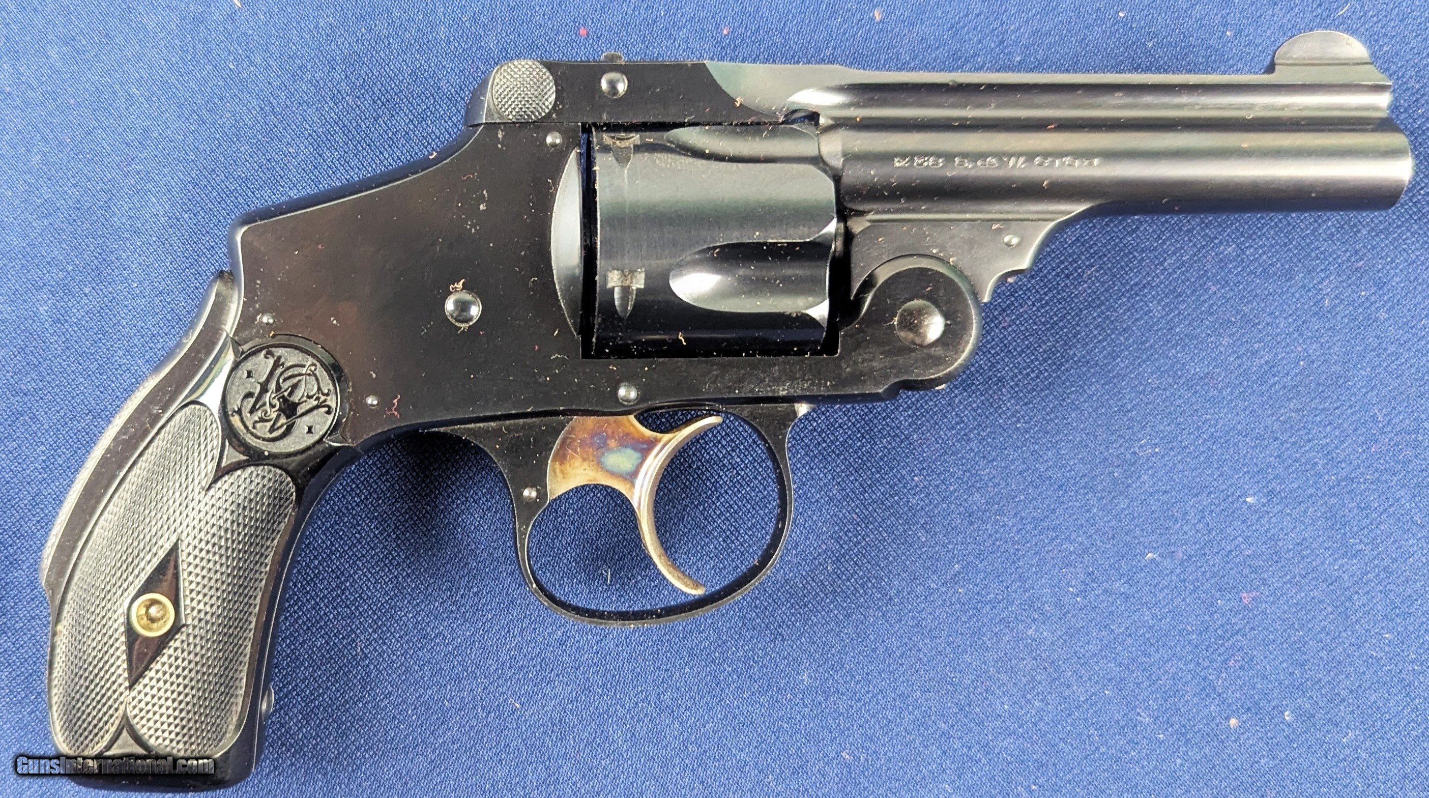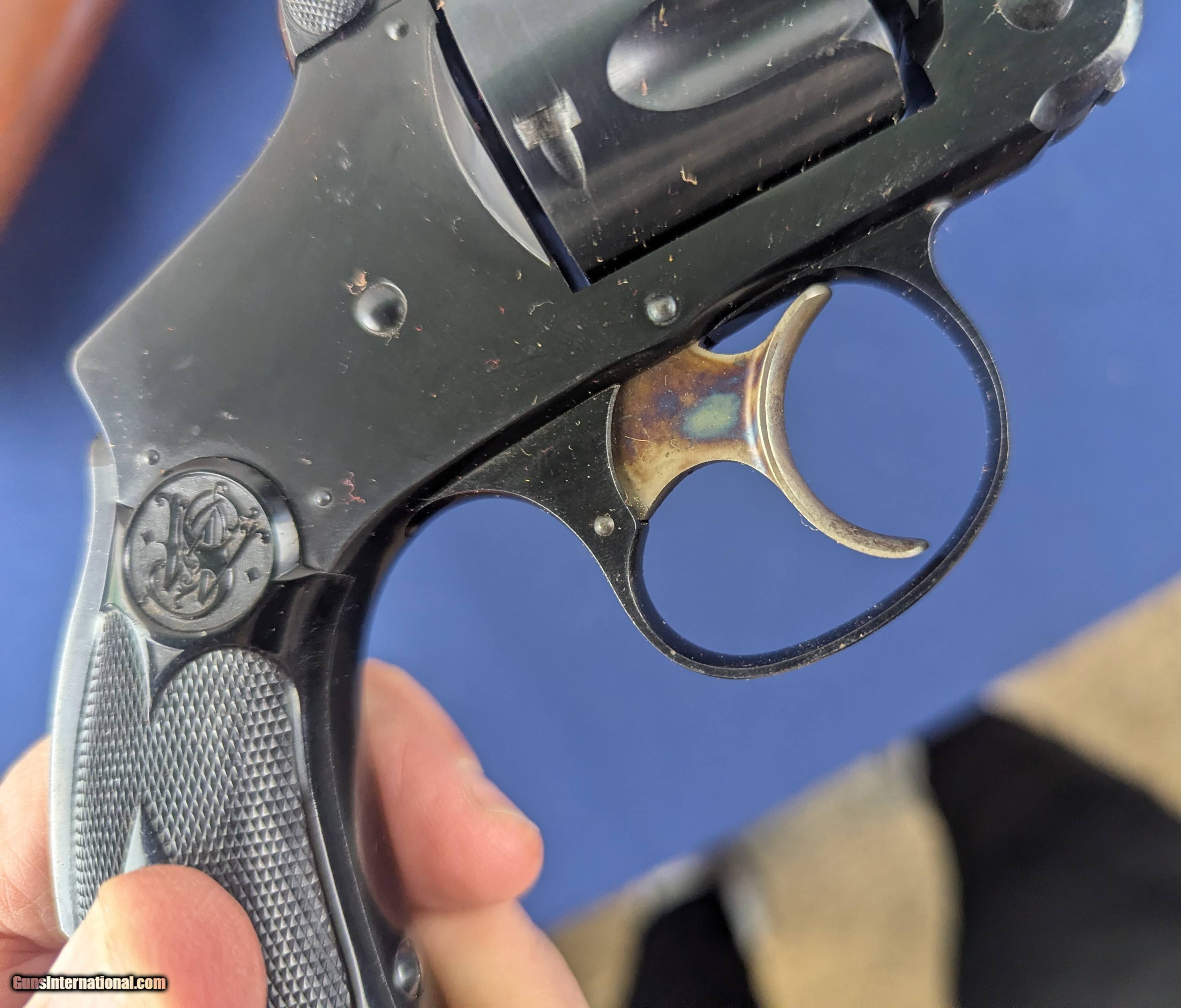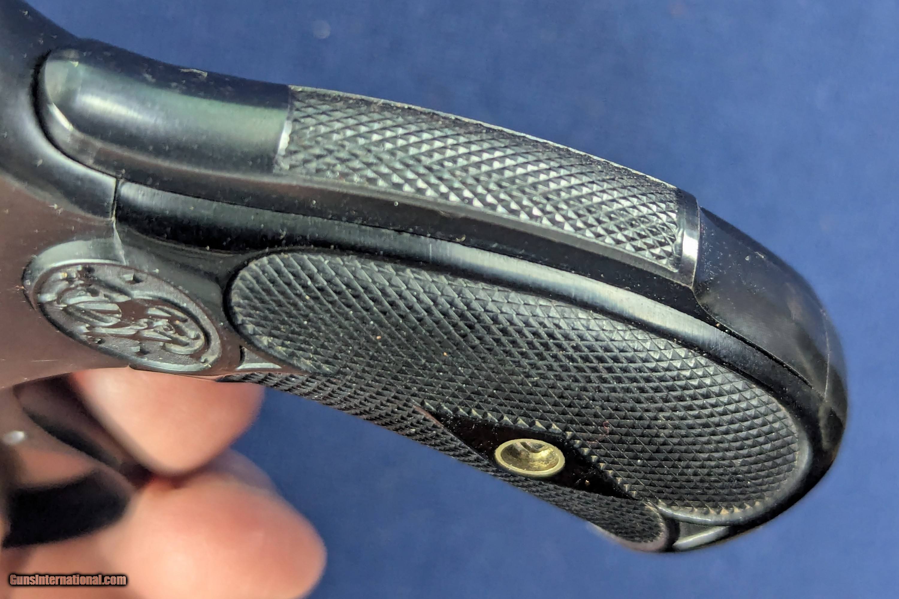 Description: UNFIRED S&W DA 4th Model .38 Revolver C.1900-1907 Offered here for sale and just acquired is this original SCARCE UNFIRED vintage Smith & Wesson 5th model double action .38 revolver. A top break model with 3" barrel, this specimen retains all of its finish, 100% case colors on trigger and minty factory hard rubber grips. Mint bore. Untouched screw heads. Serial number 245845. Smith & Wesson produced a series of .38 S&W Double-Action top-break revolvers in the late 19th and early 20th centuries in multiple “models” (1st through 5th) before the era of the modern hand-ejector “Military & Police” type. Serial number 245845 with 3″ top-break .38 DA was made sometime in the first decade of the 1900s — very likely around ~1900–1907. An UNFIRED specimen, in excellent untouched condition, 100% finish, mint bore, and hard rubber grips is unusually high quality for a gun of this age and an exceptional addition to ANY collection-especially in a Smith & Wesson collection. L550 Thank you for your order. Shipping is $42. To expedite each order received, however we ship 80-100 items weekly, therefore orders paid by money orders or bank checks are cleared for shipping 5-7 days after deposited funds show in our account. Shipping date is scheduled ONLY AFTER VERIFICATION TAKES PLACE AND FFL/C&R IS RECEIVED (IF APPLIES). This is 5-7 days after WE receive order by mail - NOT customer date mailed and postmarked and after credit card funds are posted. Credit card orders exceeding $500 must be cleared through customer’s bank before shipping. Personal checks are accepted but orders are held UP TO 3 WEEKS after deposit of funds before items released for shipping. IF you have special instructions or require overnight or expedited shipping please advise at time of ordering and we will gladly prioritize shipping FOR AN ADDITIONAL CHARGE. THIS IS OUR POLICY and we encourage buyers to PLEASE READ AND UNDERSTAND OUR POLICY BEFORE . We would be pleased to answer ANY questions by phone (our toll free number is 1-800-571-7337 or e-mail cwlopiaol. Curio/Relic: Yes Handgun Caliber: .38 Price: $1,100.00 Buy Now Contact Seller |