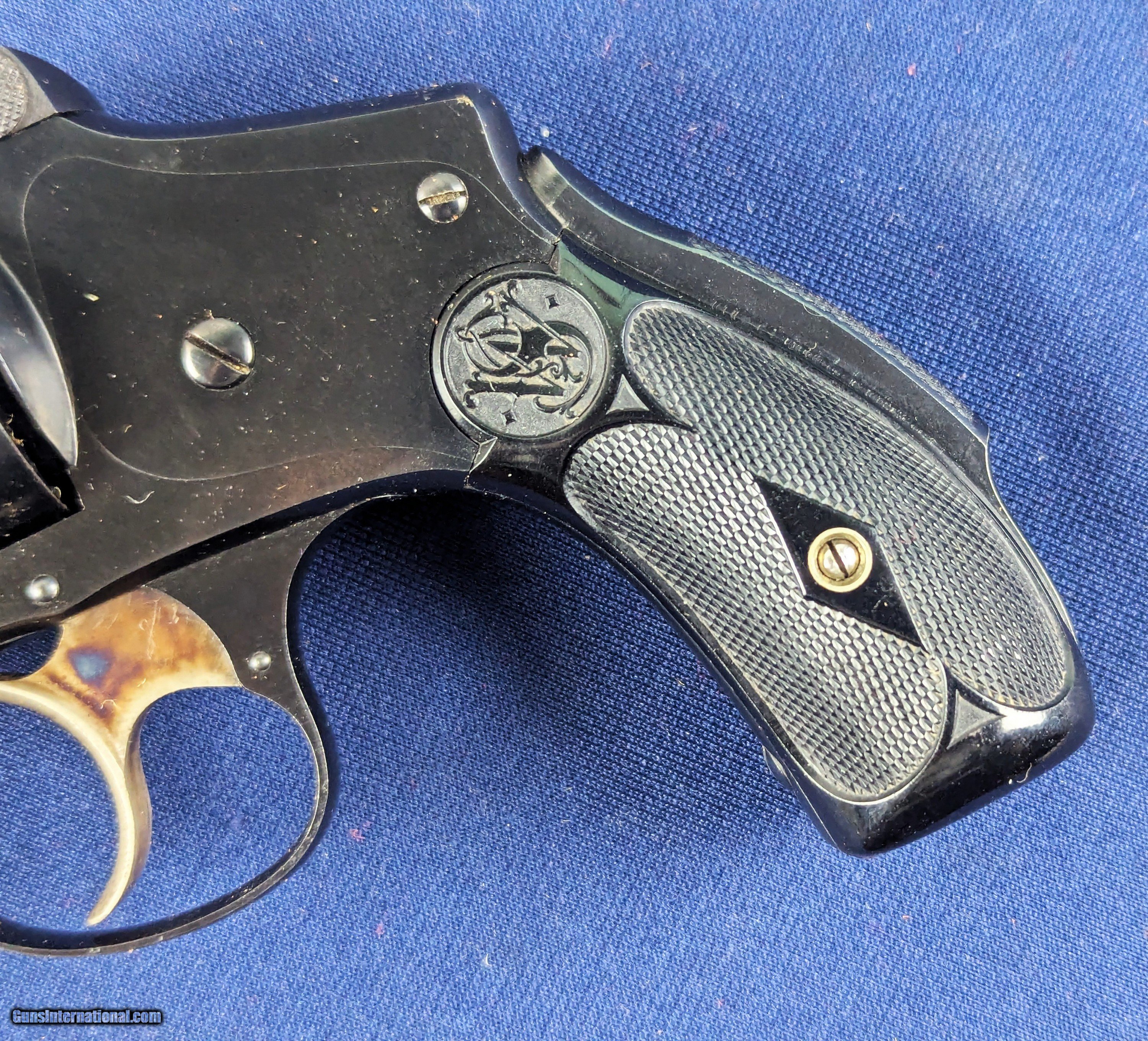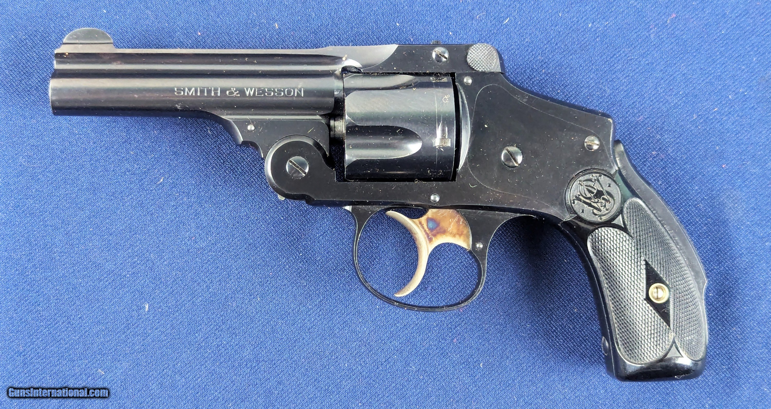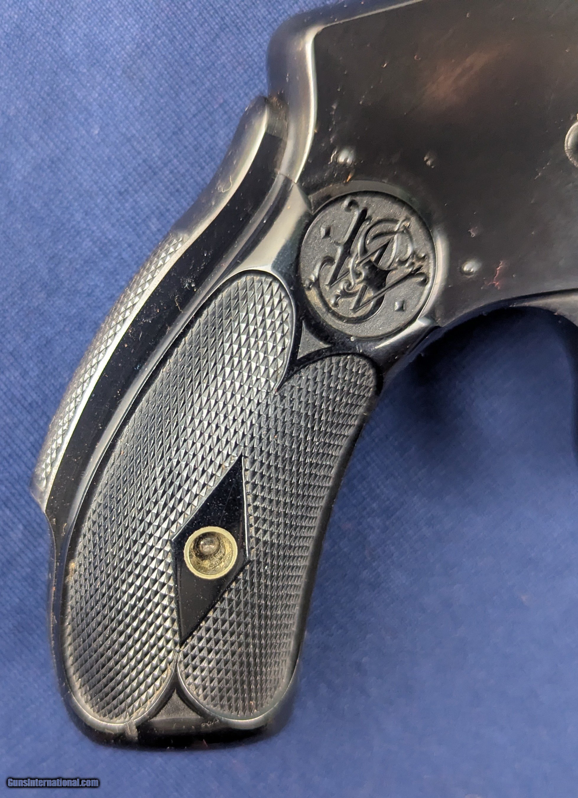 Description: UNFIRED S&W DA 4th Model .38 Revolver C.1900-1907 Offered here for sale and just acquired is this original SCARCE UNFIRED vintage Smith & Wesson 5th model double action .38 revolver. A top break model with 3" barrel, this specimen retains all of its finish, 100% case colors on trigger and minty factory hard rubber grips. Mint bore. Untouched screw heads. Serial number 245845. Smith & Wesson produced a series of .38 S&W Double-Action top-break revolvers in the late 19th and early 20th centuries in multiple “models” (1st through 5th) before the era of the modern hand-ejector “Military & Police” type. Serial number 245845 with 3″ top-break .38 DA was made sometime in the first decade of the 1900s — very likely around ~1900–1907. An UNFIRED specimen, in excellent untouched condition, 100% finish, mint bore, and hard rubber grips is unusually high quality for a gun of this age and an exceptional addition to ANY collection-especially in a Smith & Wesson collection. L550 Thank you for your order. Shipping is $42. To expedite each order received, however we ship 80-100 items weekly, therefore orders paid by money orders or bank checks are cleared for shipping 5-7 days after deposited funds show in our account. Shipping date is scheduled ONLY AFTER VERIFICATION TAKES PLACE AND FFL/C&R IS RECEIVED (IF APPLIES). This is 5-7 days after WE receive order by mail - NOT customer date mailed and postmarked and after credit card funds are posted. Credit card orders exceeding $500 must be cleared through customer’s bank before shipping. Personal checks are accepted but orders are held UP TO 3 WEEKS after deposit of funds before items released for shipping. IF you have special instructions or require overnight or expedited shipping please advise at time of ordering and we will gladly prioritize shipping FOR AN ADDITIONAL CHARGE. THIS IS OUR POLICY and we encourage buyers to PLEASE READ AND UNDERSTAND OUR POLICY BEFORE . We would be pleased to answer ANY questions by phone (our toll free number is 1-800-571-7337 or e-mail cwlopiaol. Curio/Relic: Yes Handgun Caliber: .38 Price: $1,100.00 Buy Now Contact Seller |