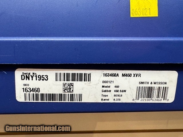 Description: Used 460 S&W 5 Shot Revolver, With Box, 8.375" UPC 022188634600 MPN 163460 Brand Smith & Wesson Main Model Smith & Wesson Model 460 Model Model 460XVR Caliber 460 S&W Capacity 5 Features Removeable Interchangeable Compensator: One for;Lead Ammo and one for Jacketed Ammo Type Revolver: Double Action Action Double Action Finish Satin Stainless Steel Stock Hogue Rubber Grips Sight Ft:Hi-Viz Green Dot, Rr:Micromtr Clck Blk Blade Safety Internal Lock Barrel Length 8.375 Overall Length 15 Weight 72.5 oz Buyer pays shipping Millers Gun Center Located in New Castle, Delaware "Home of TAX-Free shopping" No Credit Card Fees Send Gun international inquiry and then call 302-328-9747 to complete your purchase SOLD Handgun Caliber: .460 S&W Magnum Manufacturer: S&W Model: 460 S&W Serial Number: DNY1953 |