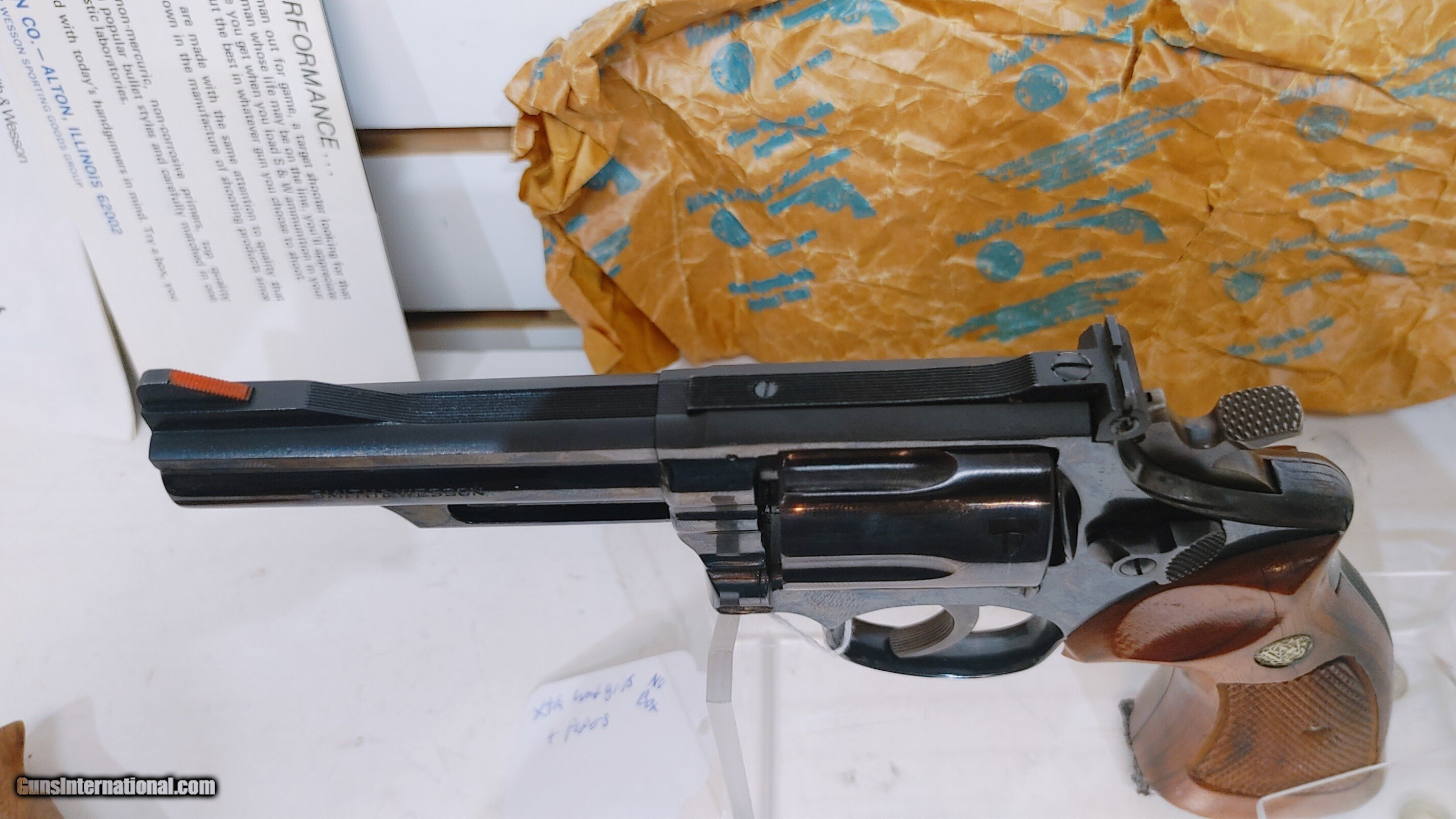 Used Smith & Wesson Model 19-3 19, no box, with box paper and paperwork plus extra wood grips, 4" barrel blued