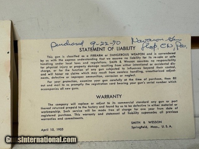 Description: Used Smith & Wesson S&W Model 10, 38 Special, with papers, no box. Buyer pays shipping Millers Gun Center Located in New Castle, Delaware "Home of TAX-Free shopping" No Credit Card Fees Send Gun international inquiry and then call 302-328-9747 to complete your purchase SOLD Handgun Caliber: .38 Special Manufacturer: Smith & Wesson Model: 10 Serial Number: D266191 |
