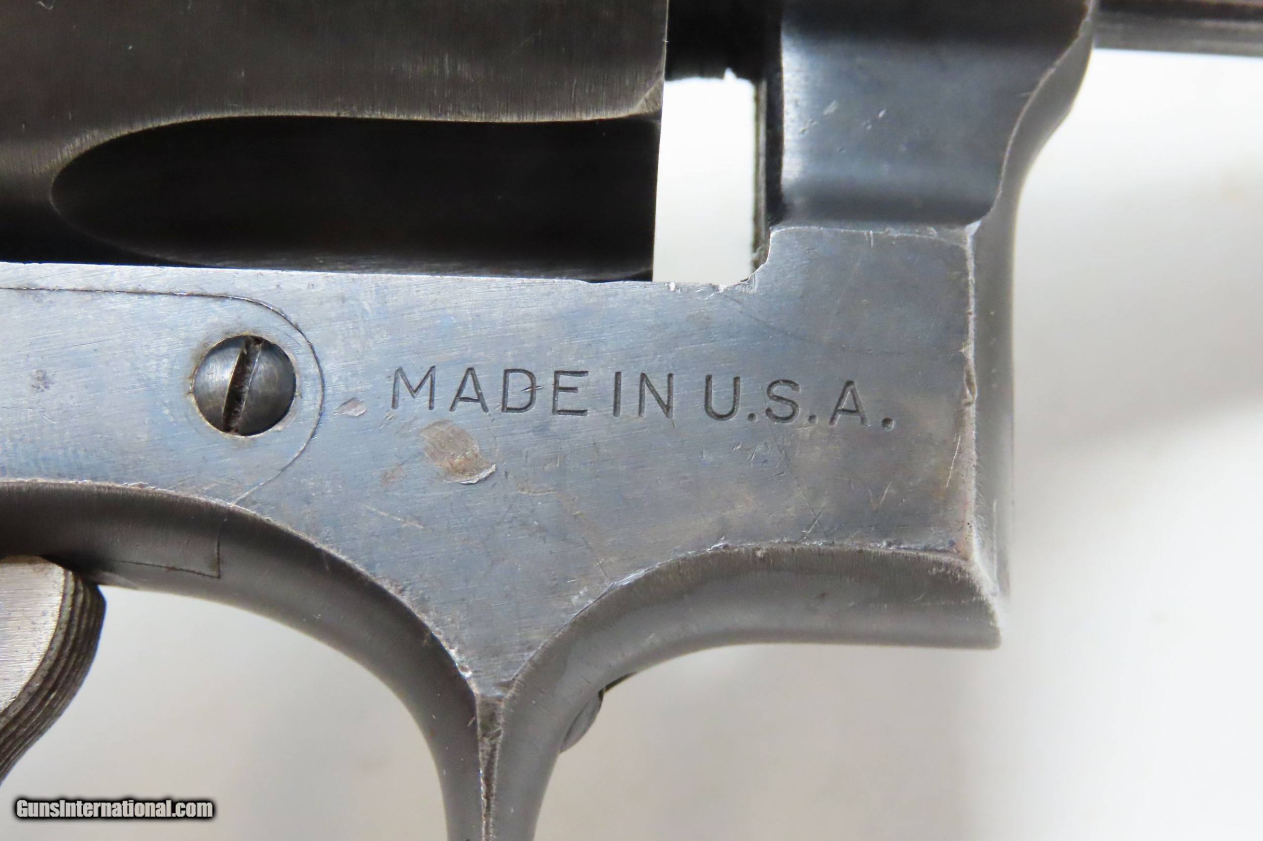Description: World War II SMITH & WESSON .38/200 Cal. BRITISH Double Action Revolver C&R WWII BRITISH MILITARY Service Revolver Here we present a C&R Smith & Wesson .38/200 British Service Revolver, made circa 1940-45 in Springfield, Massachusetts. This revolver is similar to the U.S. Smith & Wesson “Victory” model revolvers and made for the British Commonwealth countries. It features a .38 S&W/200 grain bullet. This example is marked with the Smith & Wesson logo and “MADE IN U.S.A.” on the right side of the frame. From the spring of 1940 until April of 1942, four, five, and six inch barrels were supplied on the .38/200 revolvers. The initial finish was commercial blue, and later became a duller brush blue. And after the 1942 date, smooth wooden stocks replaced the checkered ones with a silver medallion. At that time, the finish changed to a Parkerized look called Midnight Black, and only 5 inch barrels were furnished. The British wanted 5 inch guns due to Enfield and Webley revolvers also had 5 inch barrels, and the Pattern 1937 holsters were made only for barrels of that length. Typically, these will have British military marks on the revolver. A significant number of these were converted to .38 Special for sale back to the American market, though this one remains in the original .38/200 chambering. The .38/200 cartridge developed by Smith & Wesson in 1877. Versions of the cartridge were the standard revolver cartridges of the British military from 1922 to 1963. Though similar in name, it is not interchangeable with the later .38 Special due to a different case shape and slightly larger bullet diameter. The overall condition is very good. Original finish. Bright bore. Excellent action. Sharp markings. This example sports a nice Pachmayr “GRIPPER”. “MADE IN U.S.A.” is marked on the right side of the frame. There is a screw absent on the right side of the frame. This firearm is classified as a Curio & Relic. Barrel is 5 inches. Caliber: .38 S&W (.38-200) Overall condition as seen in photos. Very Fast. Very Safe. FREE SHIPPING. Will need to be sent to your local FFL or C&R licensee. This firearm is classified as a Curio & Relic. Guaranteed AUTHENTIC & Includes CERTIFICATE OF AUTHENTICITY. ancestryguns $1000 #227158 SOLD Curio/Relic: Yes |