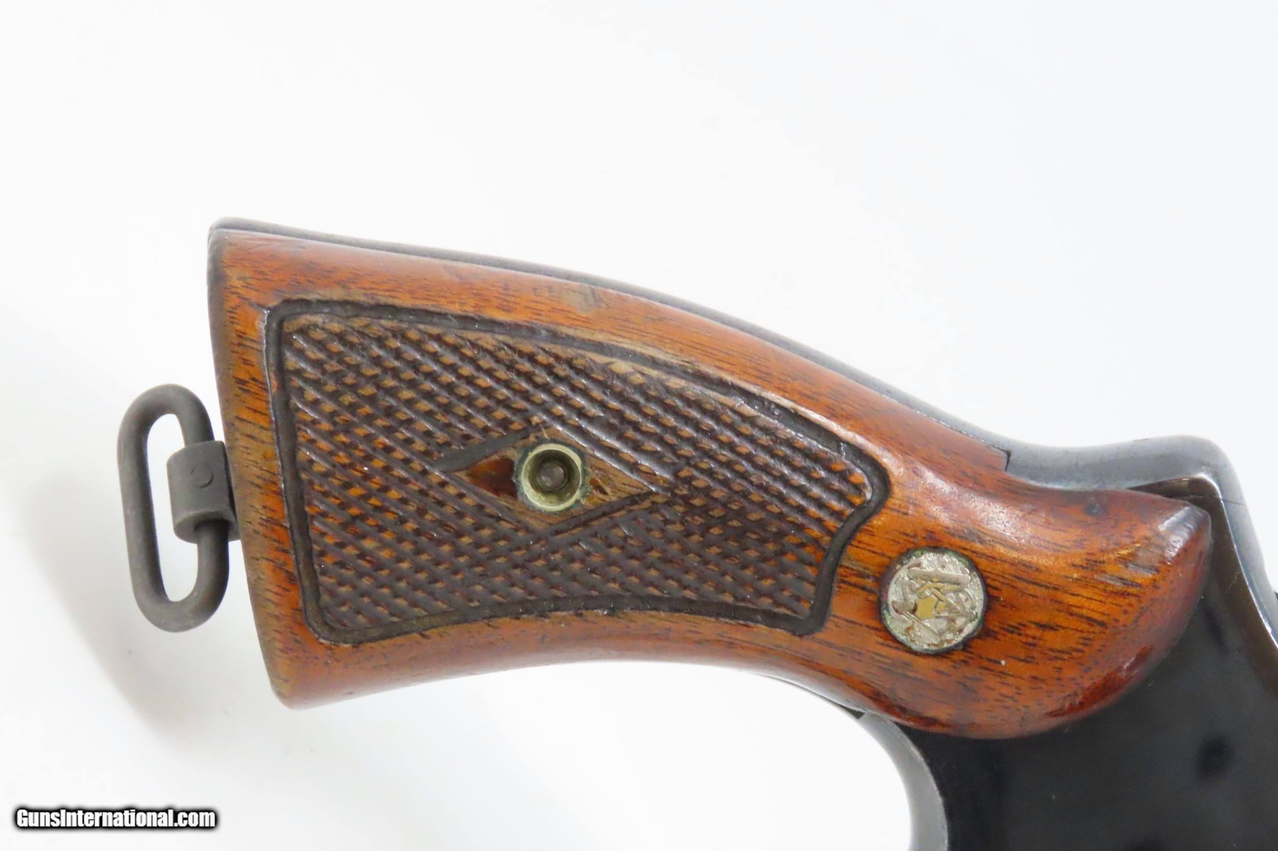 Description: WW I U.S. Army SMITH & WESSON Model 1917 .45 ACP Double Action C&R Revolver US ARMY Marked WWI Revolver to Supplement the M1911 Here we present a C&R Smith & Wesson U.S. Model 1917 double action revolver, made circa mid-WWI in Springfield, Massachusetts. The M1917 Revolvers were six-shot, .45 ACP, large frame revolvers adopted by the United States Military in 1917, to supplement the standard .45 ACP M1911 pistol during World War I. There were two variations of the M1917, one made by Colt and the other made by Smith & Wesson. The Smith & Wesson Model 1917 was essentially an adaptation of that company's Second Model .44 Hand Ejector, chambered instead for .45 ACP, employing a shortened cylinder allowing for use of half-moon clips, and a lanyard ring on the butt of the frame. Smith & Wesson had recently produced the Hand Ejector, which uses their heavy .44 caliber frame, for the British Army in .455 Webley caliber due to shortages in British production facilities of standard-issue Webley Mk VI top-break revolvers. The S&W M1917 is distinguishable from the Colt M1917 in that the S&W cylinder had a shoulder machined into it to permit rimless .45 ACP cartridges to headspace on the case mouth (as with automatic pistols). The S&W M1917 could thus be used without the half-moon clips, though the empty cases would have to be poked-out manually through the cylinder face, since the extractor star cannot engage the rimless cases. The overall condition is good. Refinished blue. Excellent action. This example has retained a bright bore. Sharp markings. S&W grips with heavy varnish applied. This firearm is classified as a Curio & Relic. Barrel is 5-1/2 inches. Caliber: .45 ACP Overall condition as seen in photos. Very Fast. Very Safe. FREE SHIPPING. Will need to be sent to your local FFL or C&R licensee. This firearm is classified as a Curio & Relic. Guaranteed AUTHENTIC & Includes CERTIFICATE OF AUTHENTICITY. ancestryguns $1200 #217639 SOLD Curio/Relic: Yes |