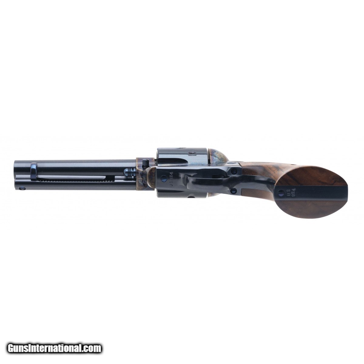 Description: " SN:US924. Modern production .45 Colt caliber with a 4.75"" barrel. Bore is excellent. Single action revolver with excellent blue finish on barrel, Case colors on receiver and wood grips. Overall condition is excellent. Comes in original box. SOLD |