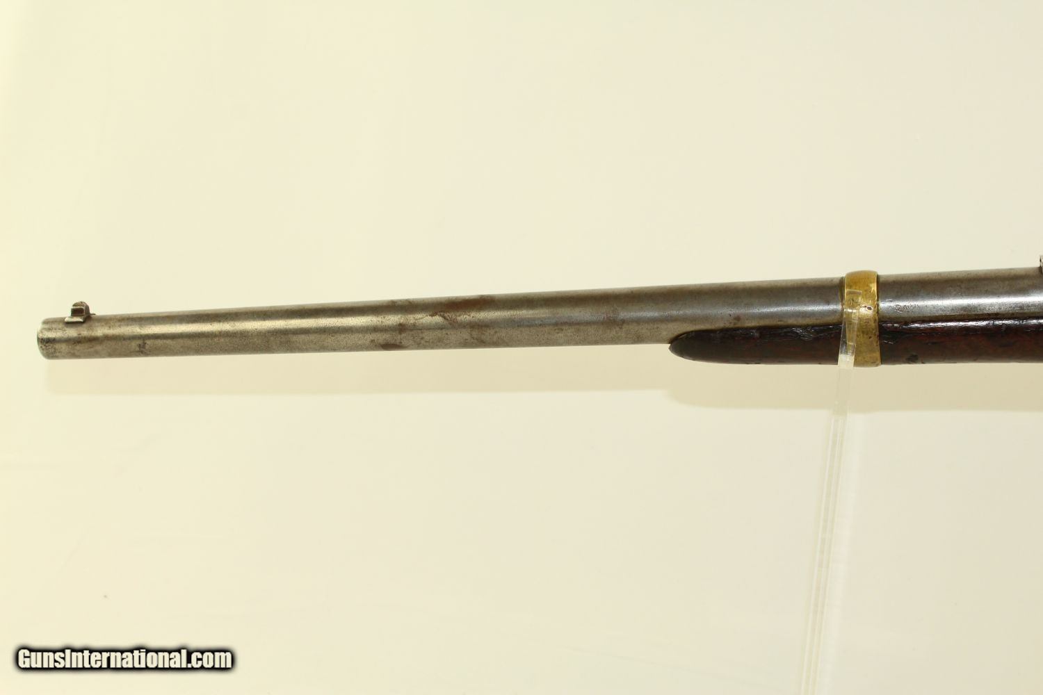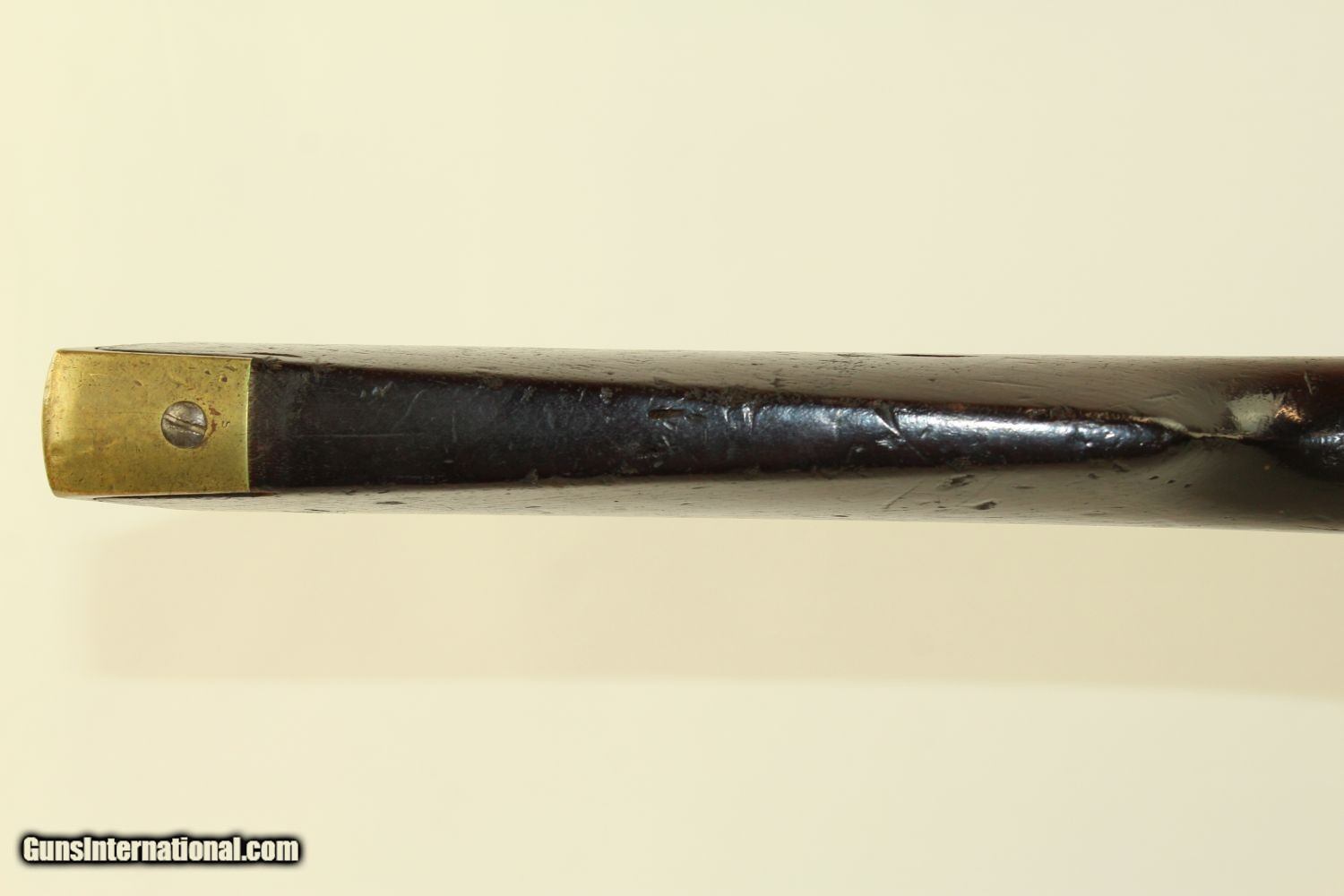 Description: Antique CIVIL WAR CAVALRY Carbine by STARR Arms Breech Loading Percussion Saddle Ring Carbine Here we present an antique Starr Arms Co. Saddle Ring Percussion Carbine, made circa 1863 in Yonkers, New York. This carbine borrows elements from its contemporaries in some ways, and 20,601 were ordered by the Union during the American Civil War. The style and function certainly reflect the more popular Sharps rifle and carbine, though in government test, the Starr carbine rated higher than the better known Sharps carbines. These carbines were known to have been issued, especially in the Western Theater, to the following units: 1st Arkansas, 5th Kansas, 11th Missouri, and 24th New York. The top of the barrel and the right side of the lock are marked “STARR ARMS CO. YONKERS NY”. Behind the breech is marked “STARR’S PATENT/SEPT. 14 1858”. The left side of the barrel is marked with the U.S. government inspector initials “H.G.S.”. The overall condition is very good. The iron parts have a gray patina. The markings are clear. The walnut stock is in good shape for its age and use. There is a small, stable sliver at the toe. The bore is in great shape with sharp rifling. The action is excellent. A really handsome Union Cavalry carbine! Own the original! This is a legitimate antique and not a reproduction. Barrel is 21 inches. Caliber: .54 Overall condition as seen in photos. Very Fast. Very Safe. FREE SHIPPING WORLDWIDE. Delivered directly to your door by express mail! Guaranteed AUTHENTIC & Includes CERTIFICATE OF AUTHENTICITY. ancestryguns $2650 #190136 SOLD Antique: Yes |