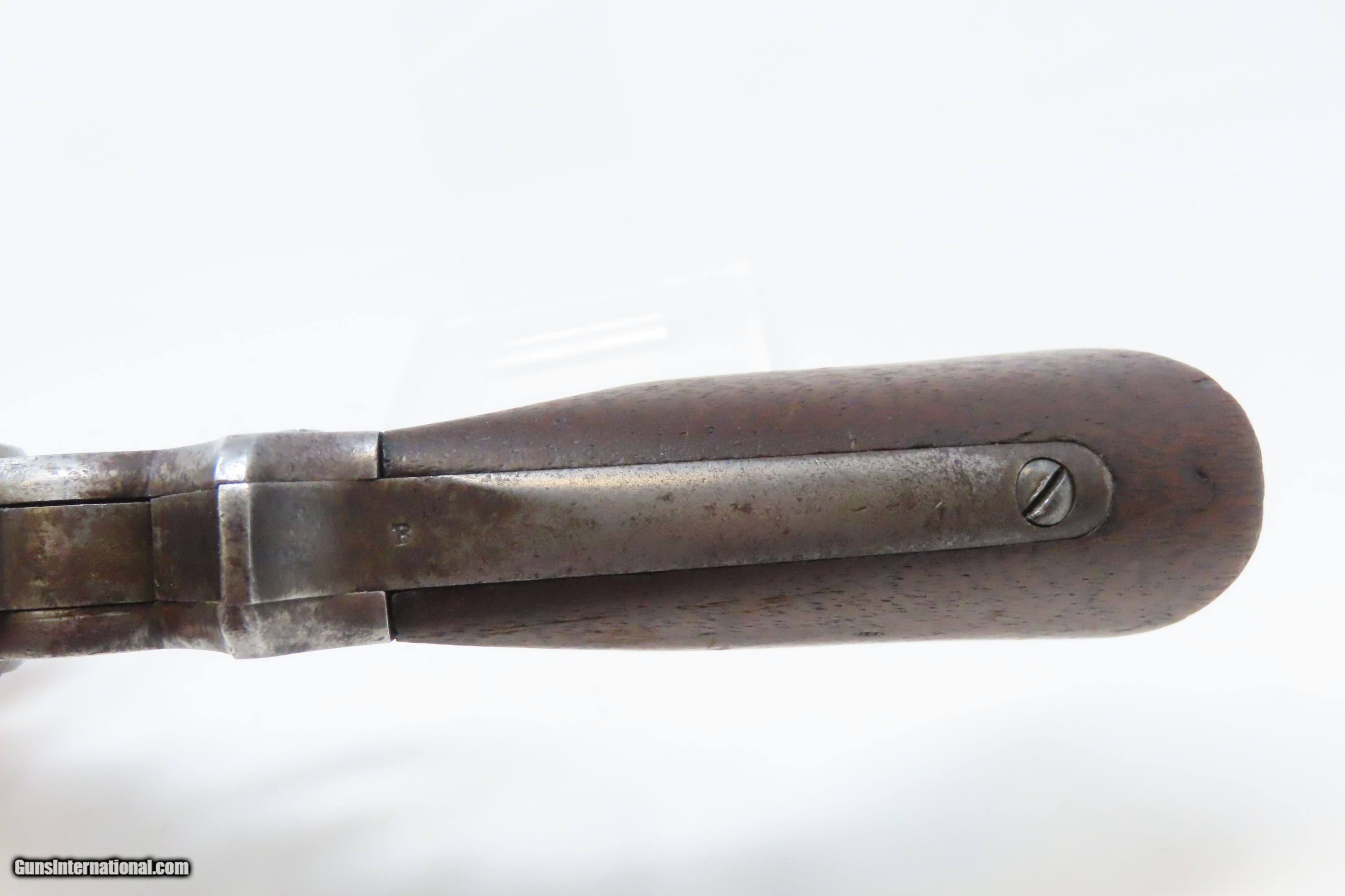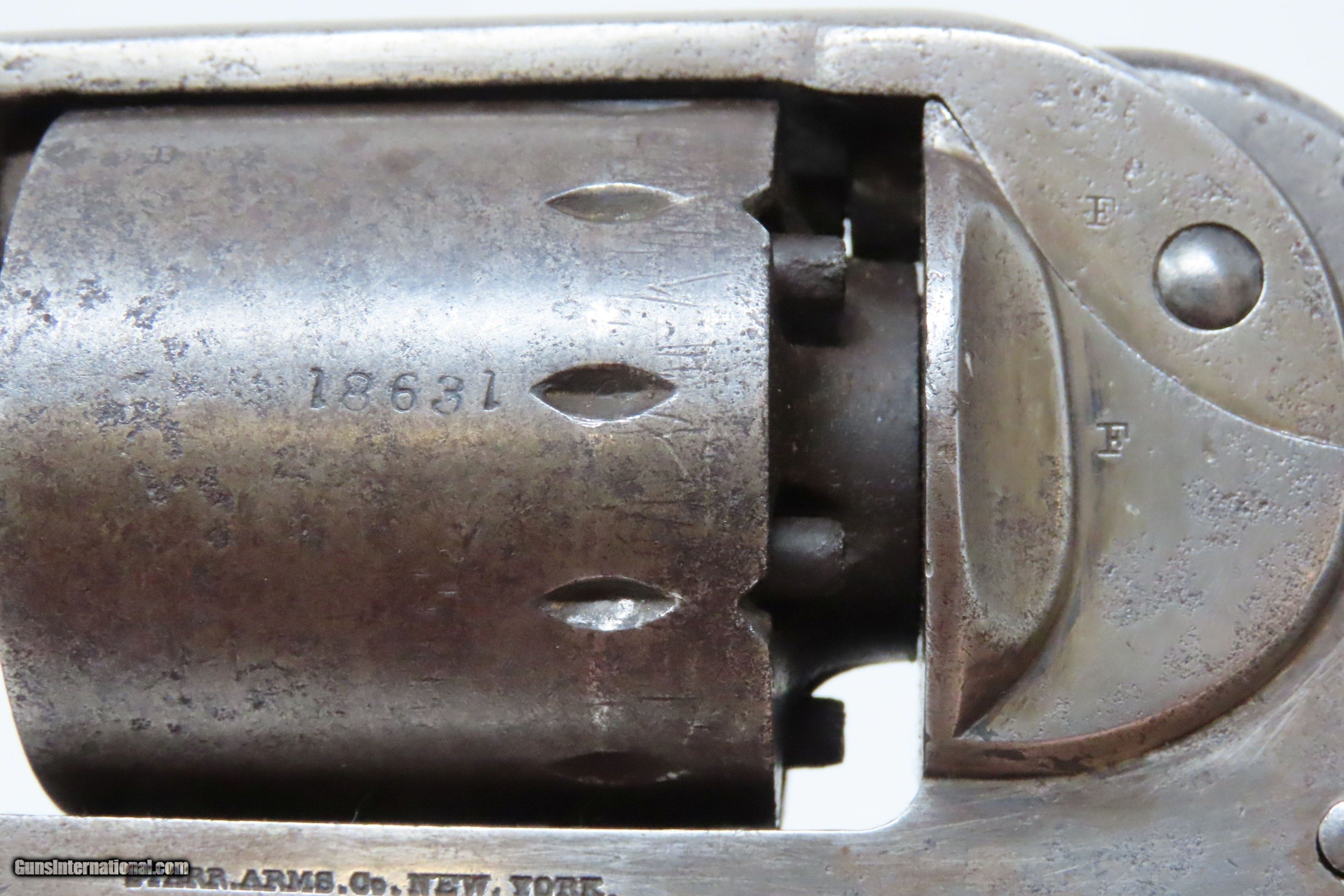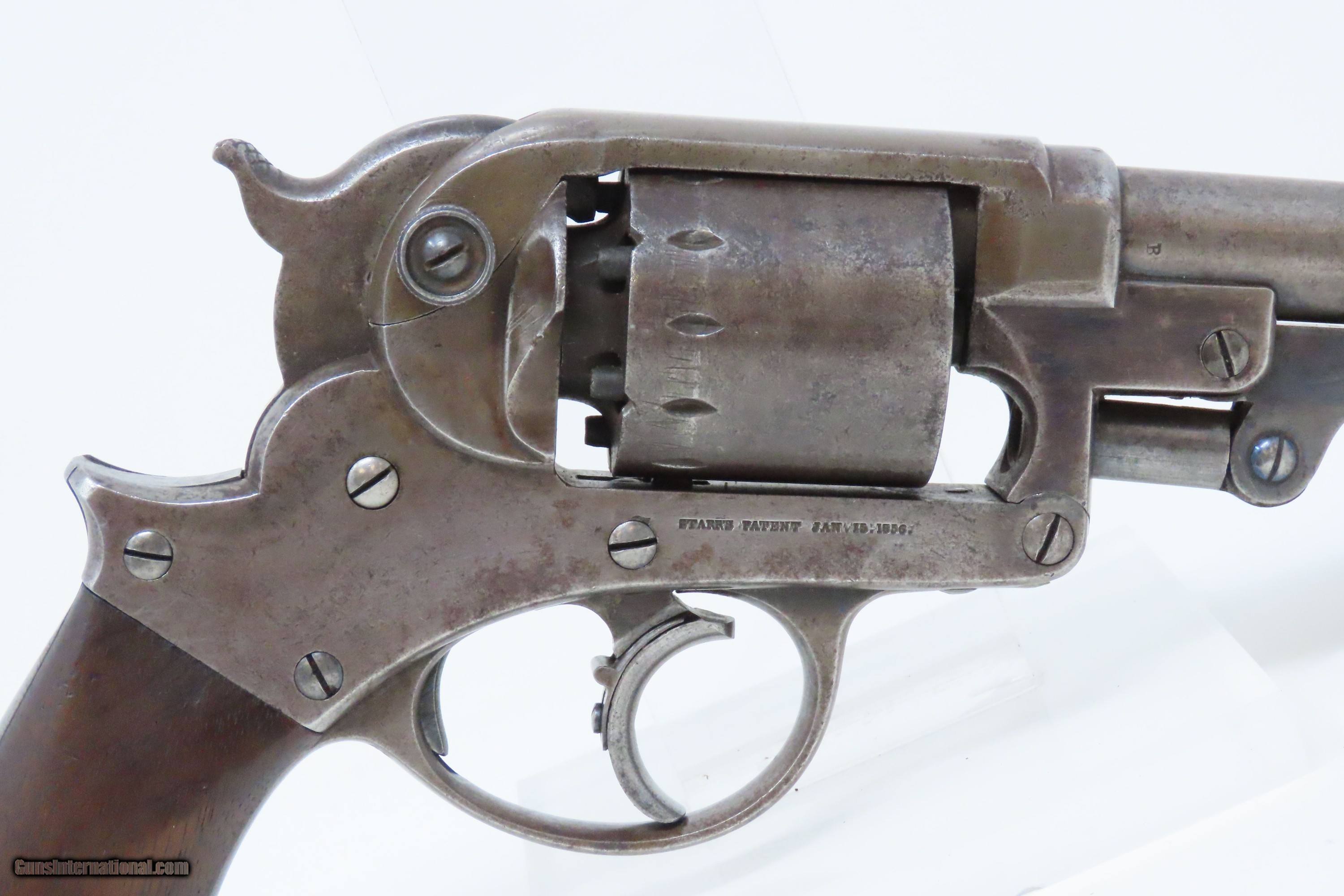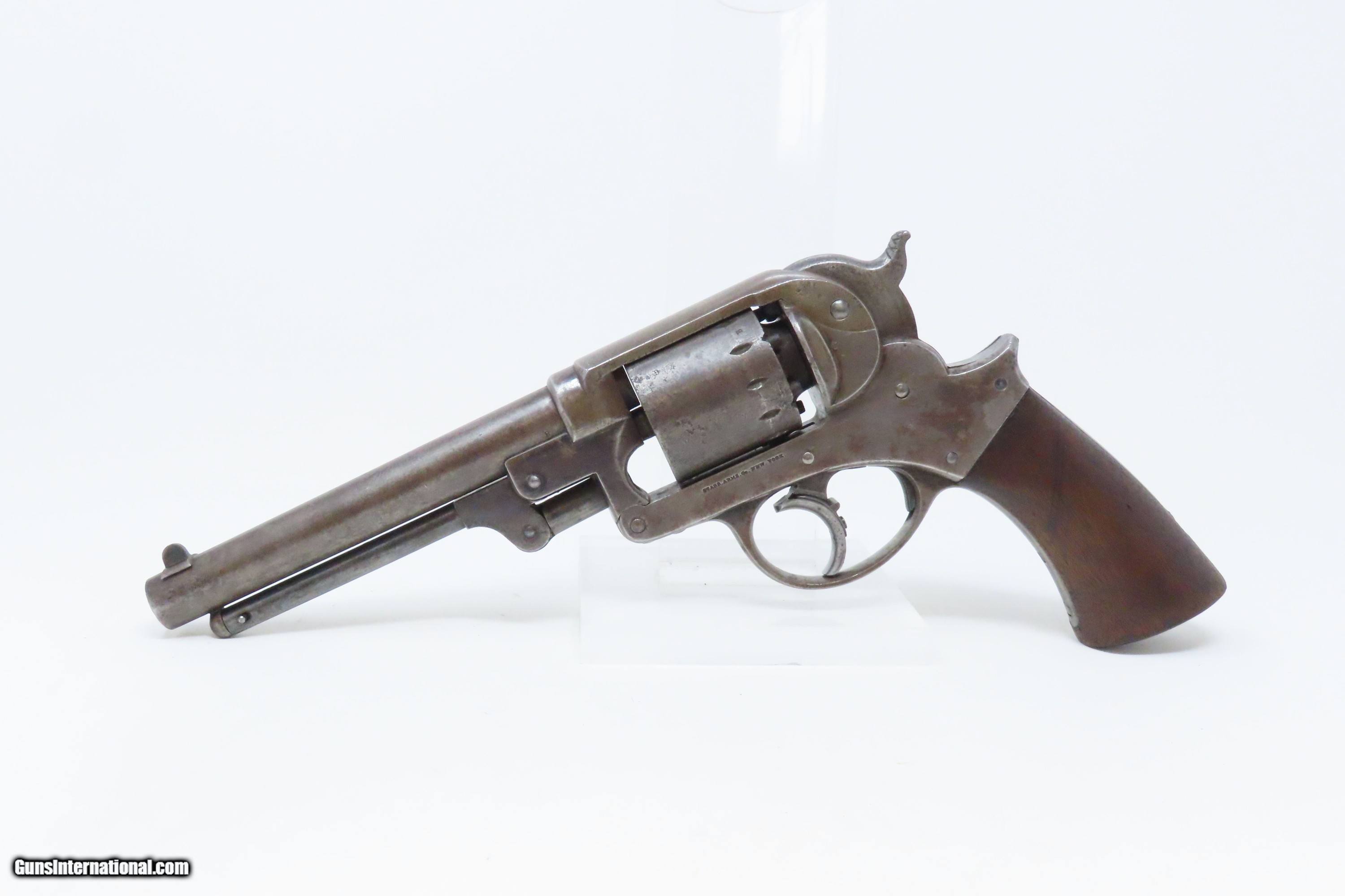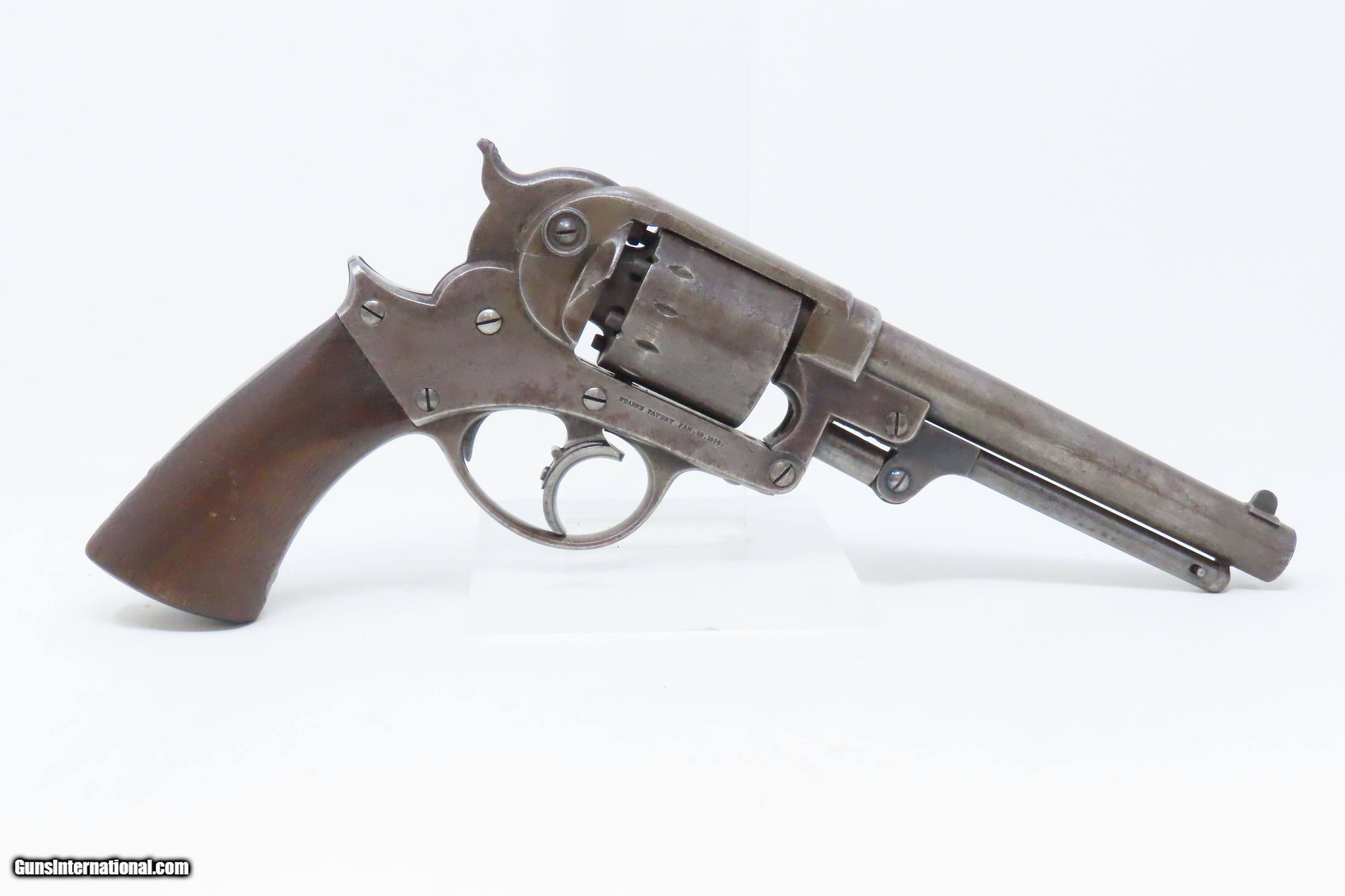 Description: CIVIL WAR Antique STARR ARMS Model 1858 ARMY .44 Cal. Percussion Revolver Double Action Likely UNION CAVALRY Revolver Here we present an antique Starr Arms Company Model 1858 Double Action Army Revolver, made circa the late 1850s to early 1860s in New York. Though not nearly as many of these were made as the Colt 1860s or Remington 1858s, the Starr represents probably the third-most issued revolver during the American Civil War. Requiring all manner of firearms during the Civil War, the U.S. government commissioned the Starr Arms Company to produce a Single Action version of its Double Action revolver. Both versions were eventually taken on by the North with at least 47,454 produced in all. This gun would have been used most widely by cavalrymen. It differed tremendously from the other revolvers in its class by being double actioned. The large, curved trigger cocked the hammer and revolved the cylinder, and, at the end of travel, tripped the trigger at the back of the trigger guard, firing the revolver. Ironically, despite being ahead of its time, the Starr Model 1858 Double Action Revolver was sidelined when the U.S. government asked for a revised single action version for the troops, which culminated in the Starr Model 1863 Single Action Revolver. Eben T. Starr, the inventor, was also responsible for the Starr Cavalry Carbine, which was also purchased by the Union during the war. The overall condition is very good. Some original blue and original gray patina. The numbers match. The action is excellent. The bore is in great shape with strong rifling. The grip is solid; very faint remnants of cartouches remain on either side. Own the original! This is a legitimate antique and not a reproduction. Barrel is 6 inches. Caliber: .44 Percussion Overall condition as seen in photos. Very Fast. Very Safe. FREE SHIPPING WORLDWIDE. Delivered directly to your door by express mail! Guaranteed AUTHENTIC & Includes CERTIFICATE OF AUTHENTICITY. ancestryguns $2400 #227827 SOLD Antique: Yes |