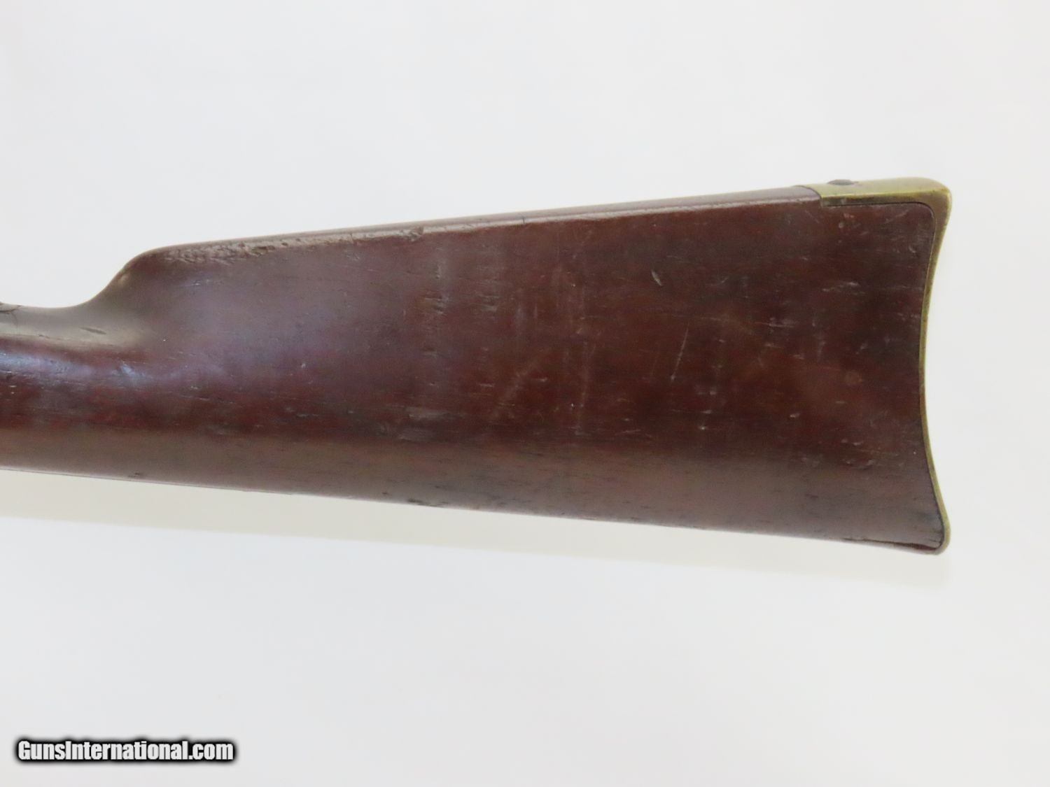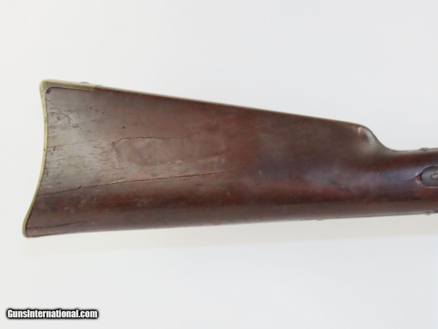 Description: CIVIL WAR Antique STARR ARMS Saddle Ring CAVALRY Carbine Made in YONKERS Breech Loading Percussion Saddle Ring Carbine Here we present an antique Starr Arms Co. Saddle Ring Percussion Carbine, made circa 1863 in Yonkers, New York. This carbine borrows elements from its contemporaries in some ways, and 20,601 were ordered by the Union during the American Civil War. The style and function certainly reflect the more popular Sharps rifle and carbine. These carbines were known to have been issued, especially in the Western Theater, to the following units: 1st Arkansas, 5th Kansas, 11th Missouri, and 24th New York. The left side of the barrel is marked with the U.S. Government Inspector initials “H.G.S,”, for Springfield Arsenal US Ordnance Inspector Henry G. Shaw. Small, single-letter inspector marks throughout. The overall condition is good. The action is strong. Good bore. The stock has seen much use. There is use and weather related fraying around the toe of the stock and a few spots of filler. Solid otherwise. The finish has matured to a smooth dark brown patina on the barrel. A very neat carbine that looks like it was in the thick of things. Own the original! This is a legitimate antique and not a reproduction. Barrel is 21 inches. Caliber: .54 Overall condition as seen in photos. Very Fast. Very Safe. FREE SHIPPING WORLDWIDE. Delivered directly to your door by express mail! Guaranteed AUTHENTIC & Includes CERTIFICATE OF AUTHENTICITY. ancestryguns $1795 #20187 SOLD Antique: Yes |