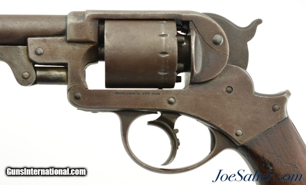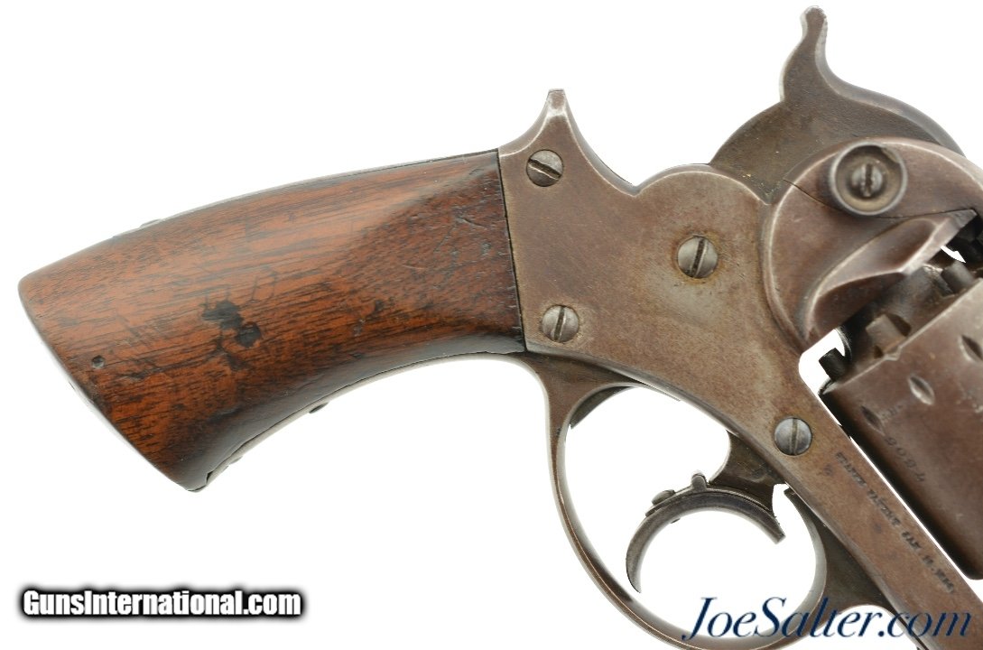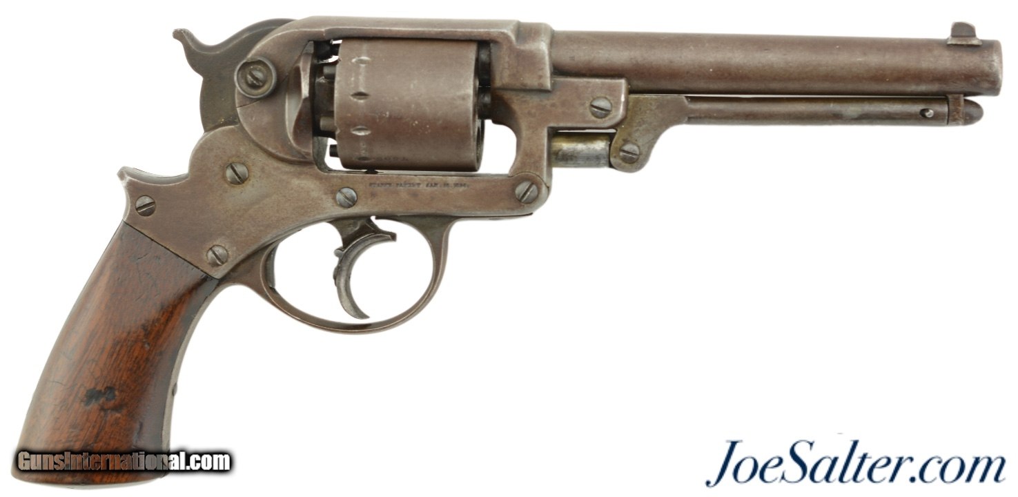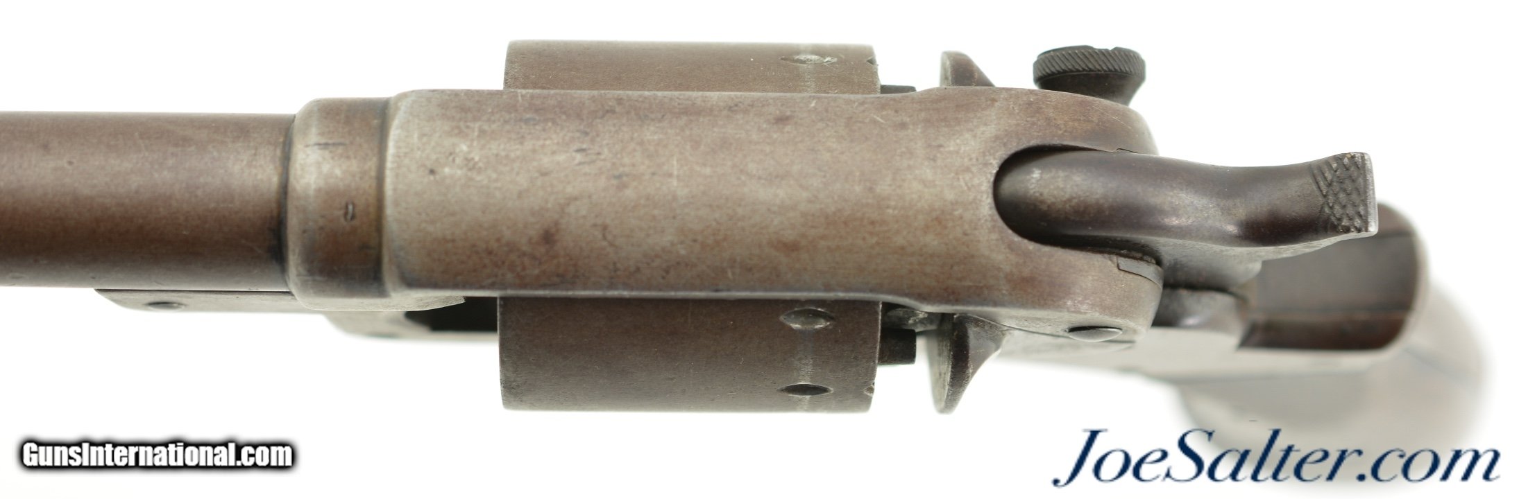 Description: Serial #7505, .44 Caliber, 6" barrel with a good bore that has dark freckling within the grooves, and some mild pinprick pitting along its length. This is an attractive revolver that has matching numbers, with an overall smooth plum-brown patina throughout. Some traces of the original blue remain on protected areas, with some further streaks of pewter gray, mostly along the barrel, topstrap, and loading lever. The one-piece walnut grip does not have US inspector marks, and has numerous small handling marks and blemishes in the original oil finish. The lock-up is tight, and the action is fully functional. This is a very nice revolver that has a great antique look, and would make a great piece for display. Antique SOLD Antique: Yes |