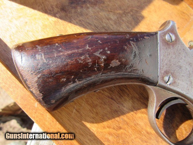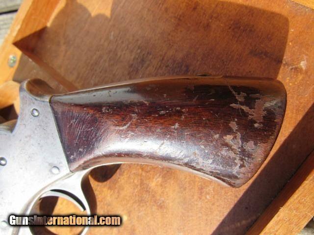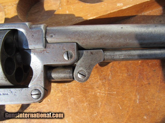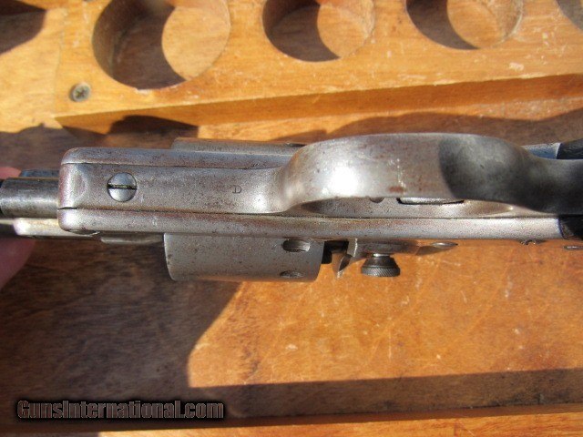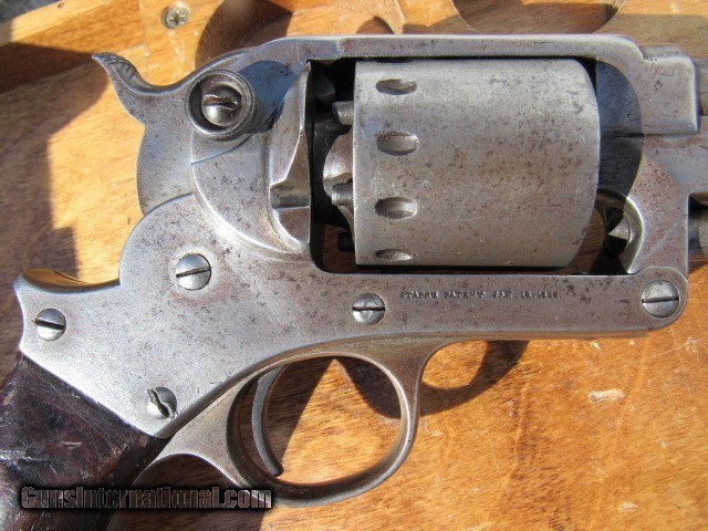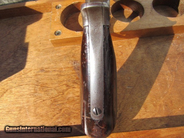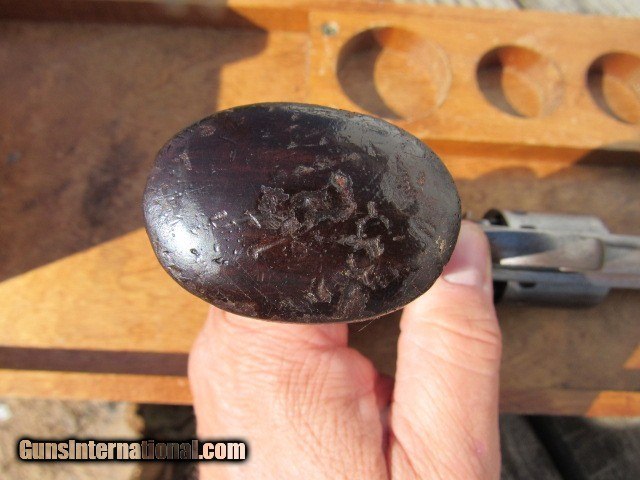 Description: This is the one all the Civil War collectors want as the Single Action Starr 6-shot percussion revolver was much more reliable than the earlier double action model, which had many mechanical issues. Typical Starr Single Action features include walnut grips, 12-stop cylinder, 8" round barrel and round loading rod, "STARR.ARMS.Co.NEW.YORK" marking on the left side of the frame and "STARRS PATENT JAN.15. 1856" marking on the right side of the frame. These originally had an all-blue finish. CONDITION: No bluing remains and all metal surfaces are gray mixed with spotty patina. Action functions flawlessly and has positive clicks on all hammer notches. Very minor cylinder wobble. All parts are original and all serial numbers match in the proper places. Bore is very good with sharp rifling and typical light black powder oxidation, no rings or bulges. Original walnut grips show much wear and dings so that only the outlines of the cartouche boxes faintly remain, but thankfully the grips are still tight and proud, never having been cleaned, sanded or refinished. Sub-inspector marks include a B and a D on the barrel, a D on the trigger guard, a C on the back strap, and a T on the upper and lower portions of the frame. Original dovetailed front sight is intact and has not been damaged or altered. Serial number 23595 falls into late 1863/early 1864 production. After the government contracts with Colt expires, the Army scrambled to get as many revolvers into the hands of its troops, so these Starr revolvers were issue to cavalry units from Illinois, Indiana, Michigan, Pennsylvania and Missouri in early 1864 for use in the last year of the Civil War. Grades NRA Antique Good and is a good example to add to your Civil War firearms collection. TERMS: No international sales. Antique so it can ship directly to you assuming your local laws allow it. 3-day non-firing inspection. Buyer pays return shipping. Payment by bank check, money order or personal check. All major credit cards accepted with 4% convenience fee added. Sold as a collectible only and should be checked by a competent gunsmith if you intend to shoot it. Always interested in Civil War, Old West and other firearms so please contact me if you have something for trade or sale. Thanks for looking and please check my other listings. 315.251.4799 with questions or concerns. SOLD Antique: Yes Manufacturer: Starr Model: 1863 Serial Number: 23595 Barrel Length: 8" round Caliber Info: 44 Percussion Condition: Good Metal Condition: Good Wood Condition: Good Bore Condition: Very Good Action: Single Action Revolver Triggers: Standard/plain |