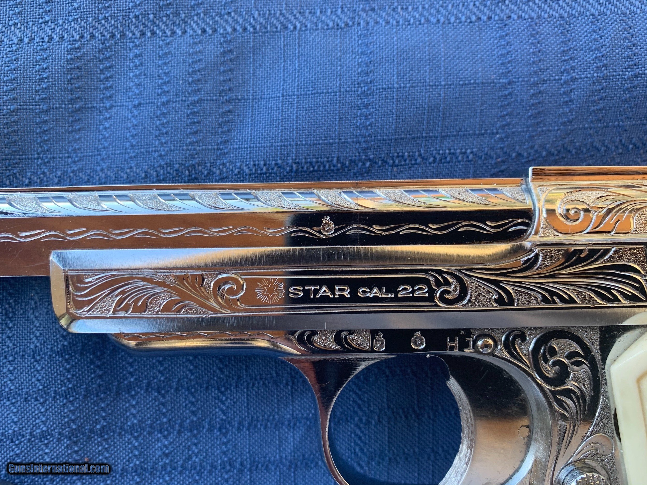 STARR ARMS 22 LONG PISTOL FACTORY ENGRAVED IN PRESENTATION BOX