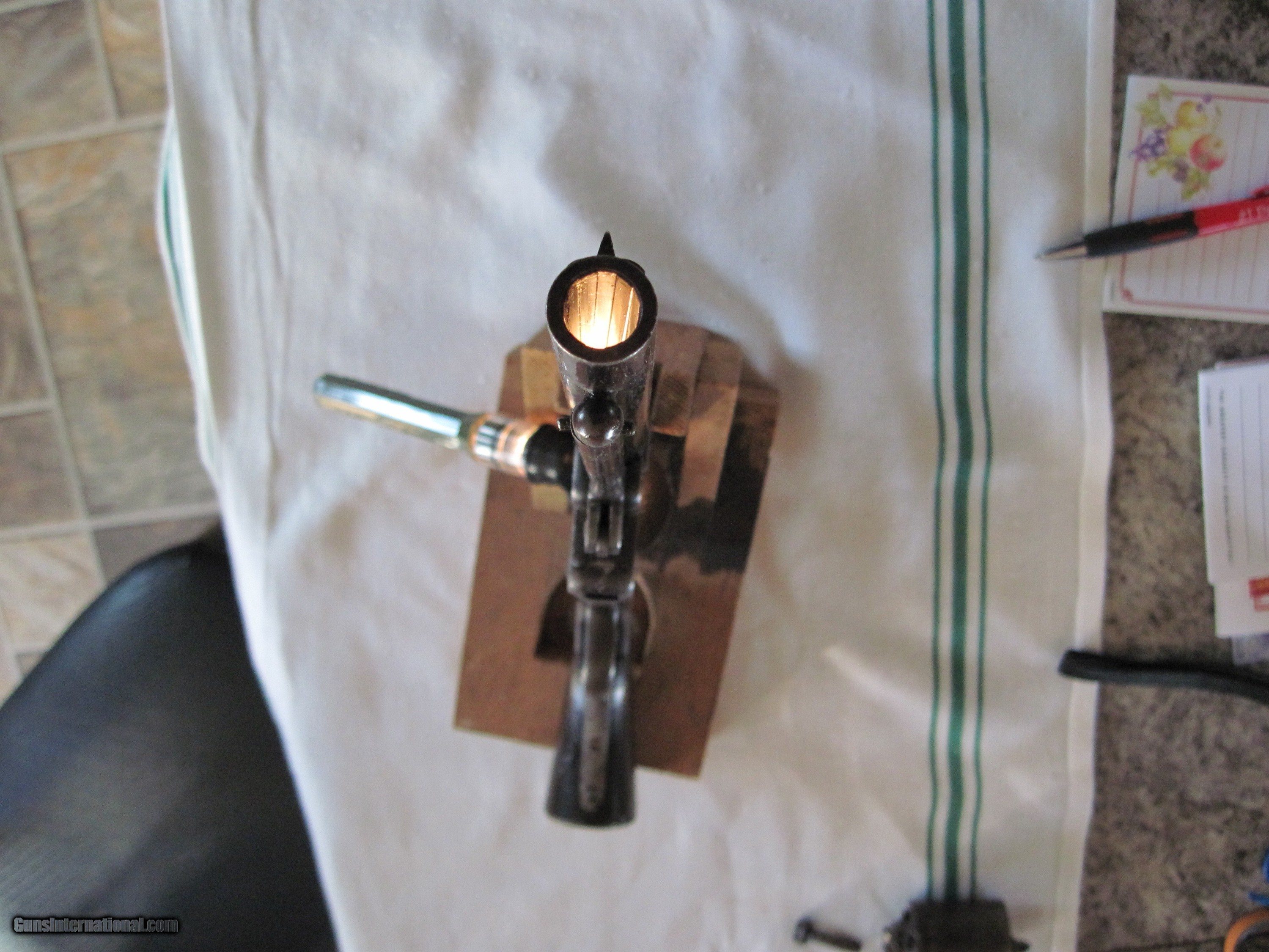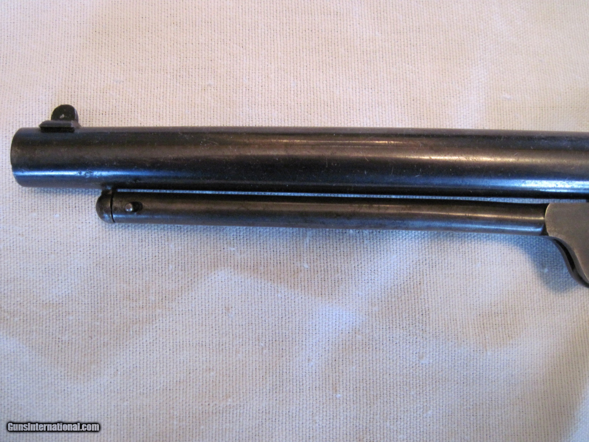 Description: *SOLD* This is a Starr Arms Co. Model 1863 Army single action revolver, made in 1864 in New York City. The production run was from 1863 to 1865 with the single action replacing the difficult to use and maintain double action. This was part of the contract given in October 1863 for 25,000 units. The Starr was mostly used in the western campaign and had an interesting shape and frame yet is a natural fit in my hand. As a cap and ball shooter one other feature I noticed in it's design is this revolver should never have the dreaded cap jam. A single screw is removed and then the barrel rotates down to release the cylinder. This one carries the serial number 39107 and was made in mid 1864. Overall condition is very good considering it's age with a good bore with minor pitting. The barrel is 8" and is the usual 6 shot .44. It is fully functional and has at least 50% of it's bluing along with natural patina. At 76 I have to start thinning my collection and passing them on to those that appreciate what I have collected over the years. I also know I have more latitude in selling an antique but even those I'll rather ship to an FFL, I hope you understand. Insured shipping in the lower 48 $50 SOLD Antique: Yes Handgun Caliber: .44 |