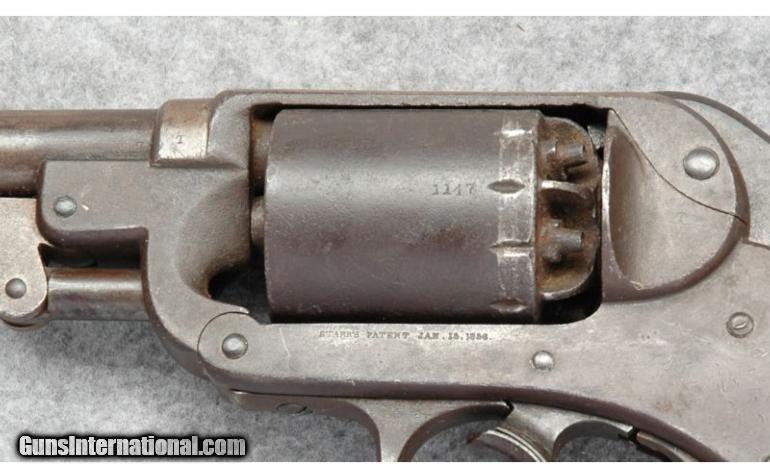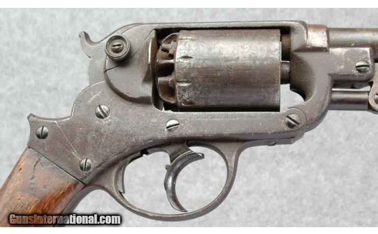 Description: SOLD Manufacturer: 1862-63 Caliber Info: 44 Percussion Metal Condition: Dark patina Wood Condition: Heavy wear Bore Condition: Dark, suggestion of rifling Barrels: 6 Inch Stock: Smooth Wood Sights: V notch hammer rear sight, Blade front Extras: Starr third model variation. Double action functions but,cylinder notches are heavily worn. Item Location: Buda, TX |