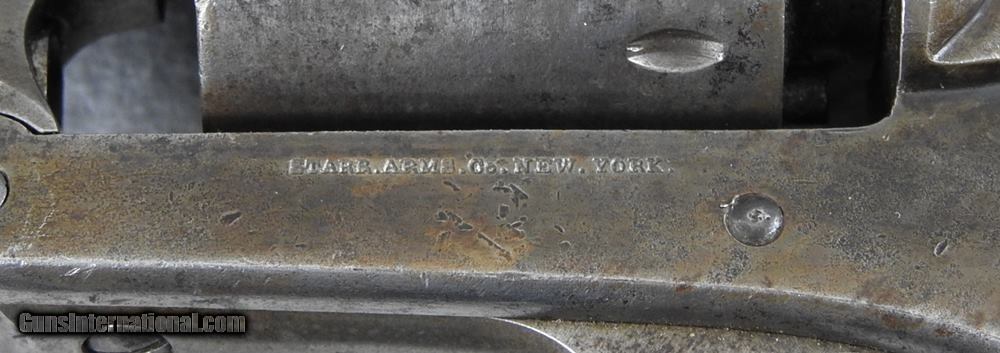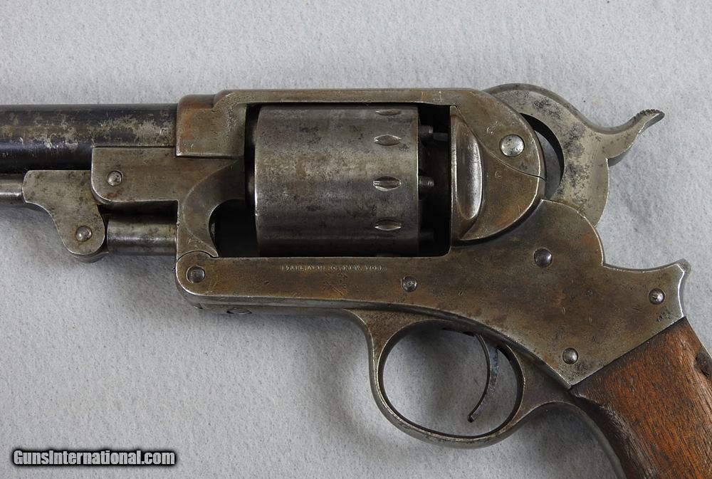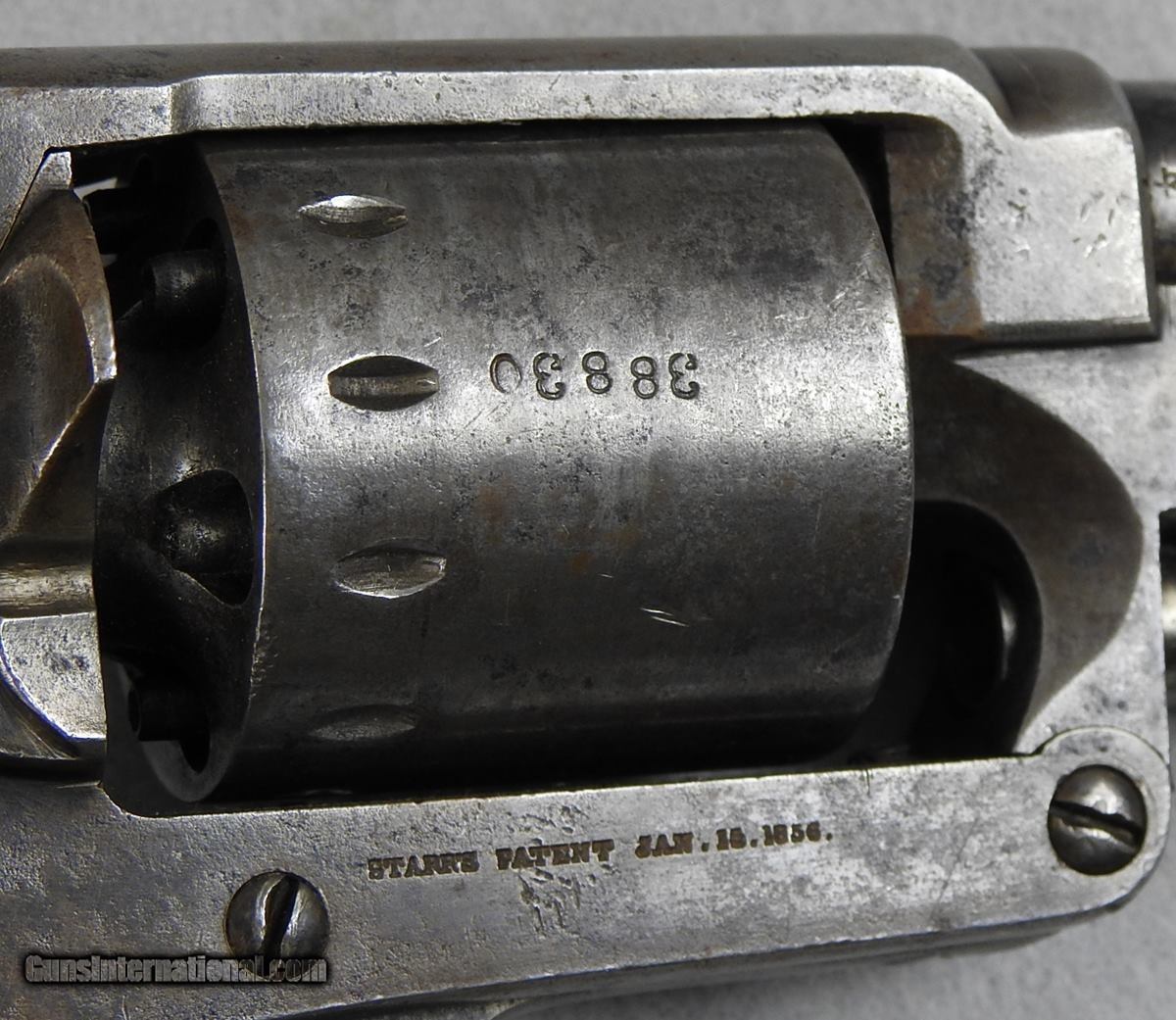 Description: This is a Civil War Single Action 44 caliber percussion revolver. This one has faint cartouches on the grips and is matching serial number 38830. The mechanical function is very good crisp and tight with a very good bright and shiny bore. It still has 38% blue with crisp markings. Made about 1864. I would consider trades for pre 1899 ANTIQUE PISTOLS and rifles on any of my items.. WHAT DO YOU HAVE TO TRADE? Ask about our 30-90 day lay-away program. We accept Bank Check, Money order, Personal checks or wire transfer. SOLD Antique: Yes Manufacturer: Starr Arms Co. Model: S.A. 1863 Army Serial Number: 38830 |