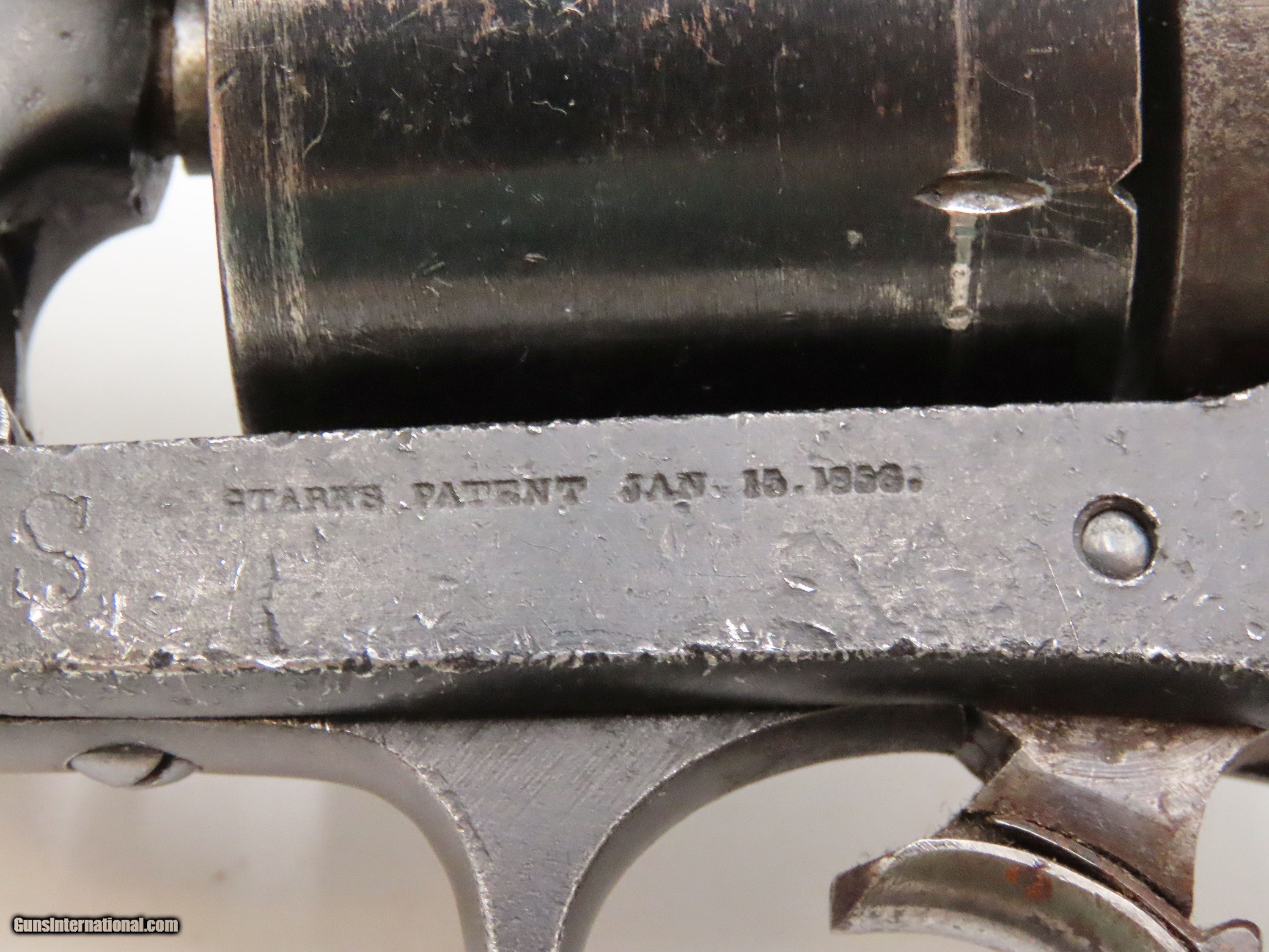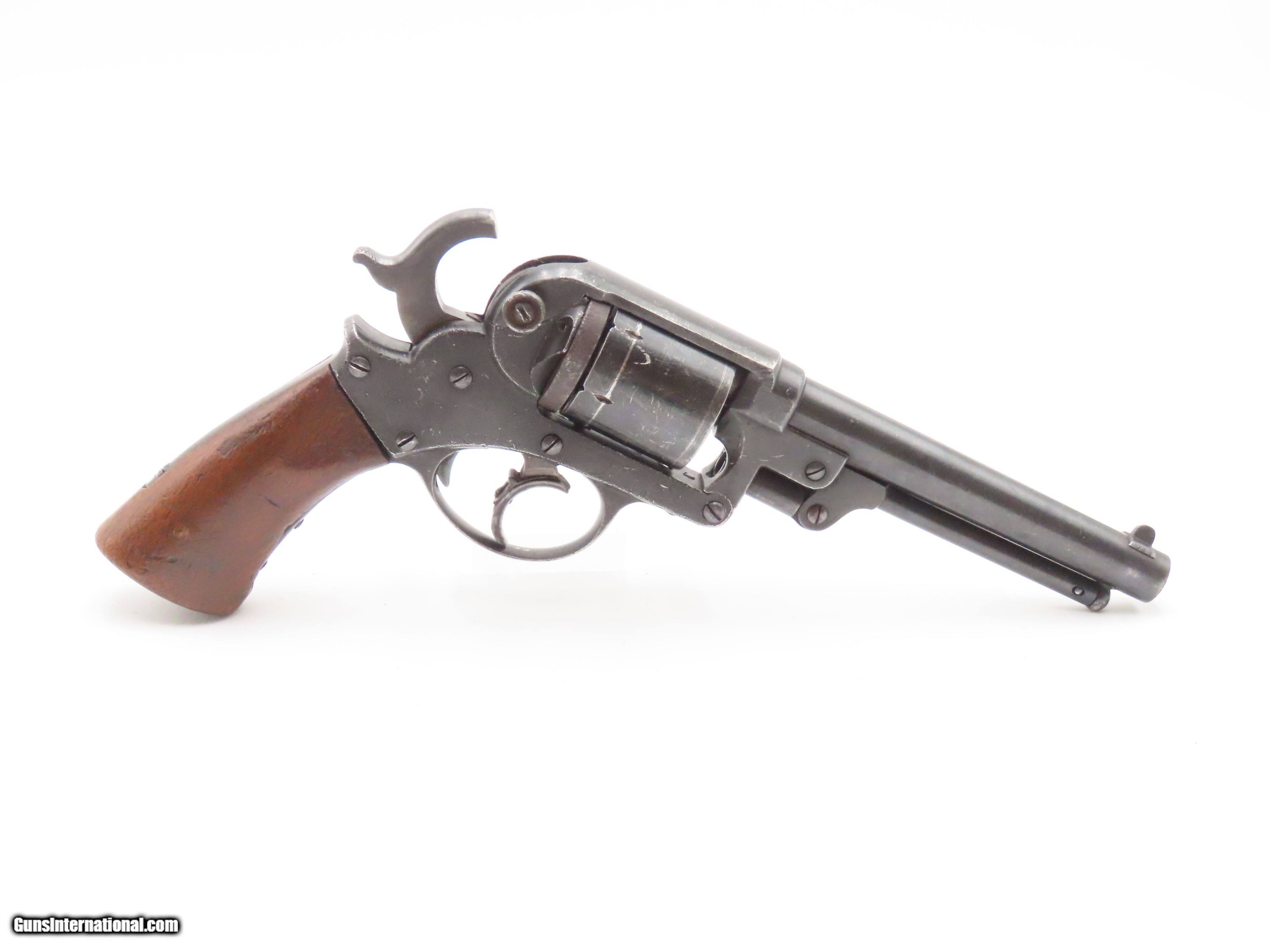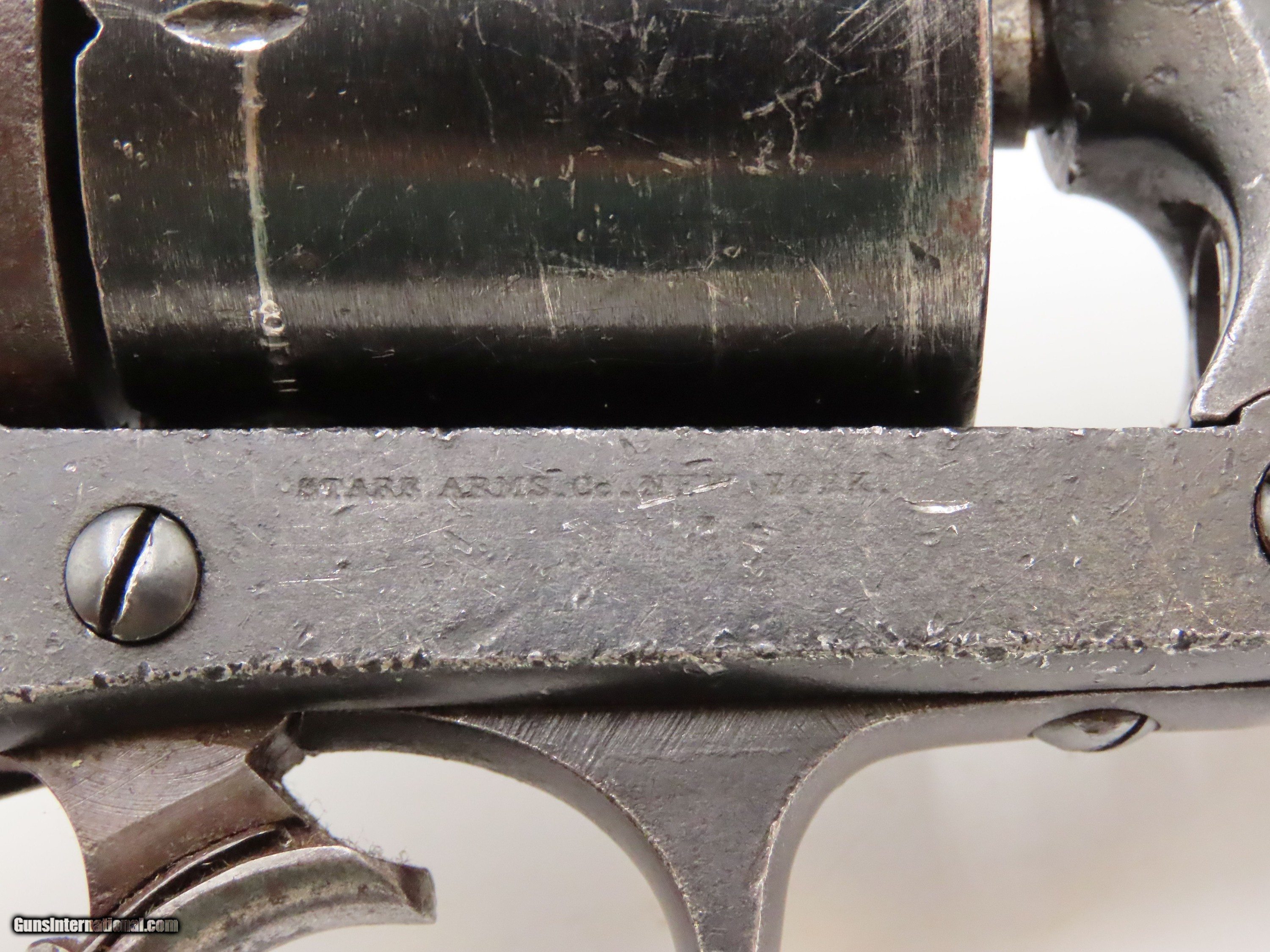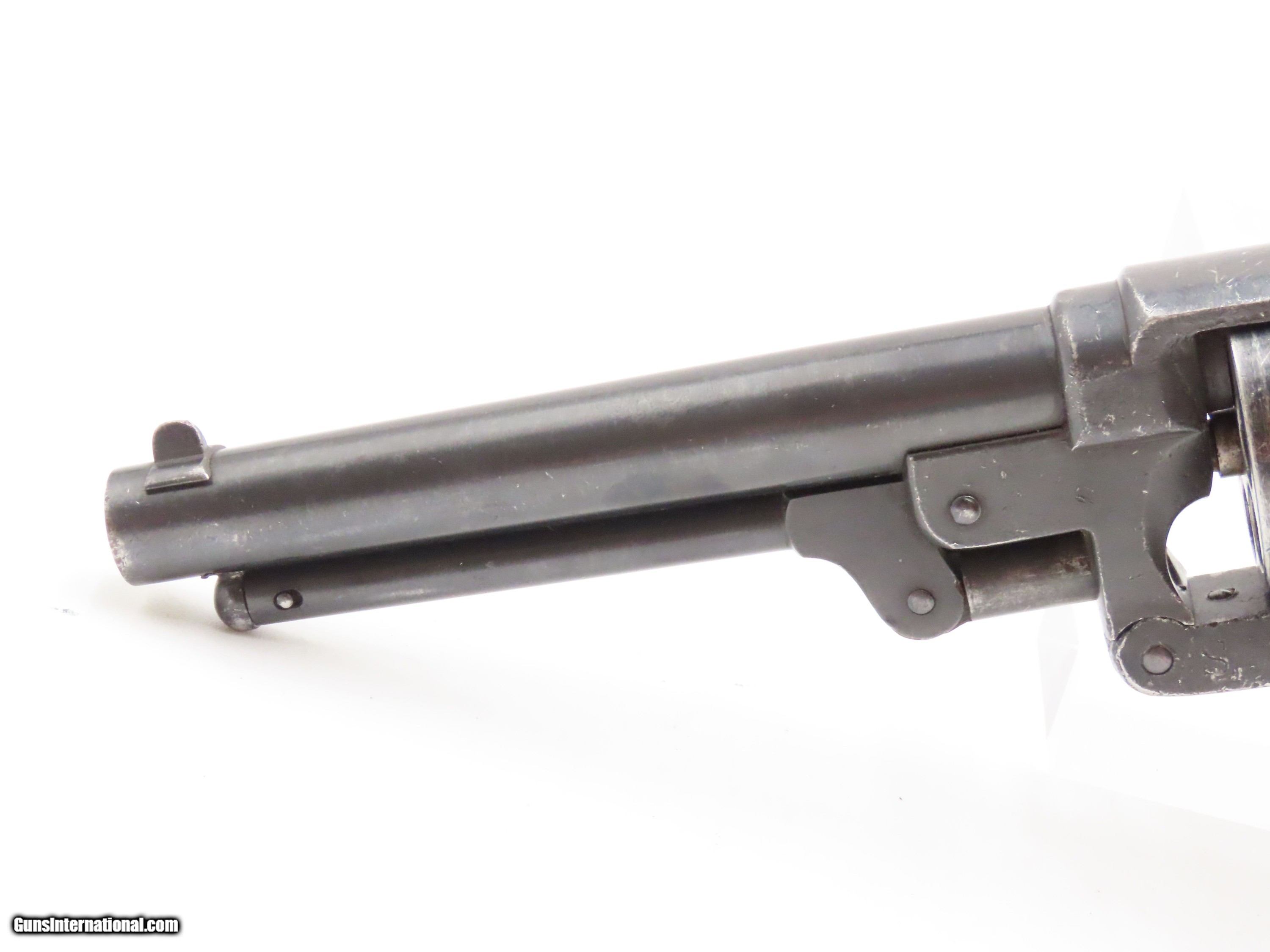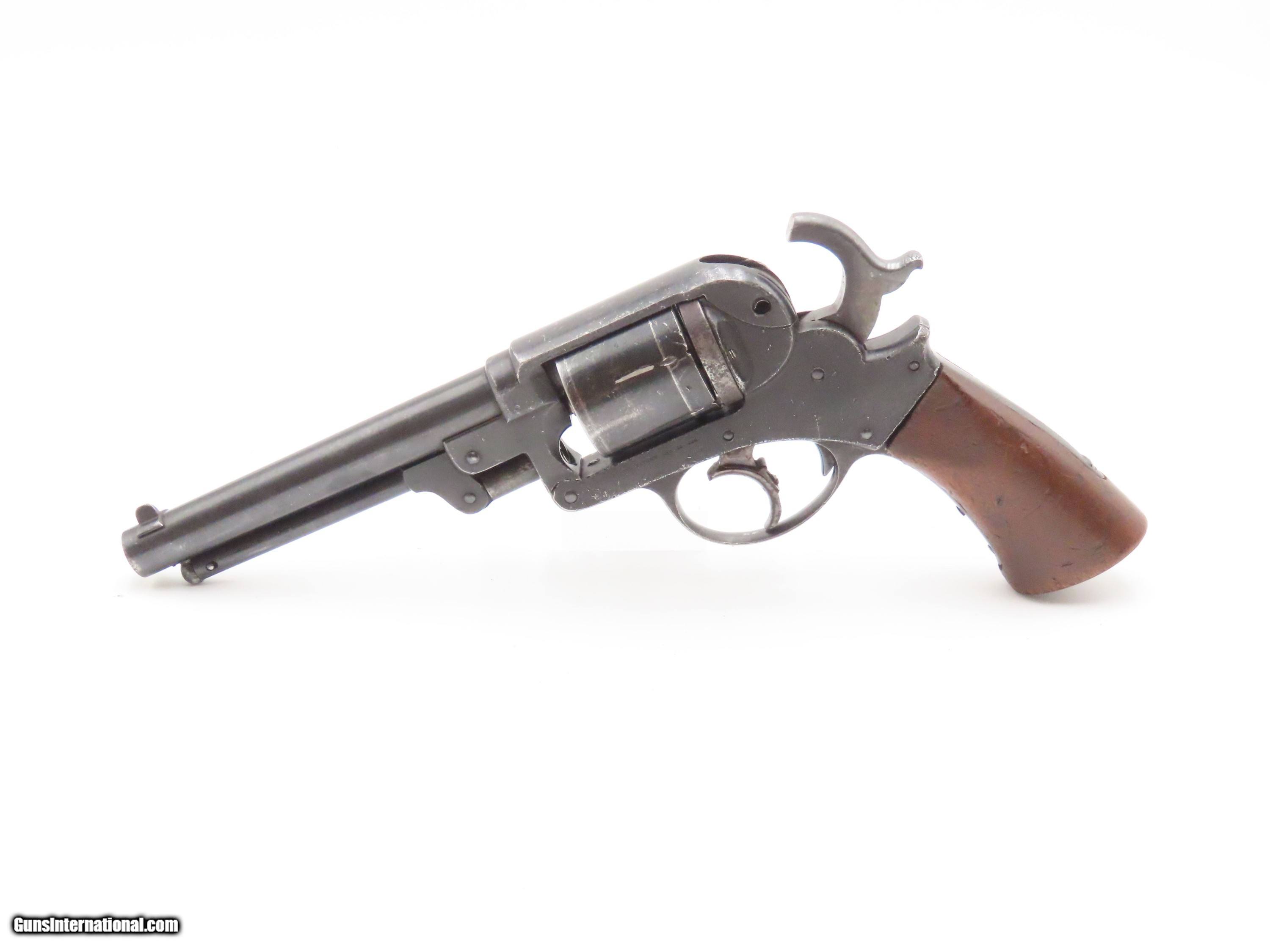 Description: STEMBRIDGE GUN RENTALS Antique STARR ARMS 1858 ARMY Revolver 2-Digit Serial With DEATH VALLEY DAYS PROVENANCE Here we present an antique Stembridge Gun Rentals Owned Starr Arms Company Model 1858 Army Double Action Revolver, made circa 1858. Not only does this revolver have a copy of an invoice from Stembridge Gun Rentals with this revolver listed by serial number (17—a really early number!), but we were able to use the information on the invoice to pinpoint the use of this gun to the long-running Western television show Death Valley Days. In particular, this invoice lists the production as “DVD 7237”. The number corresponds to the episode called “Pete Kitchen’s Wedding Night”, which was a Filmaster Production that aired June 7, 1960, just months after the date on this invoice. The show ran from 1952-1970 and includes 452 episodes! It is very likely that this revolver and all the other pieces on the invoice were used as props in many other American Western productions. This revolver would have started out life as a .44 caliber percussion revolver and was converted either late in the 19th century or perhaps even in the early-20th century when being used as a film prop. Though not nearly as many of these were made as the Colt 1860s or Remington 1858s, the Starr represents probably the third-most issued revolver during the American Civil War. Requiring all manner of firearms during the Civil War, the U.S. government commissioned the Starr Arms Company to produce a Single Action version of its Double Action revolver. Both versions were eventually taken on by the North with at least 47,454 produced in all. This gun would have been used most widely by cavalrymen. It differed tremendously from the other revolvers in its class by being double actioned. The large, curved trigger cocked the hammer and revolved the cylinder, and, at the end of travel, tripped the trigger at the back of the trigger guard, firing the revolver. The overall condition is good. This piece is refinished. The large Stembridge “S” is prominent on the left side of the frame. Shiny, bright bore with strong rifling. The grip is solid with average handling and cartouche remnants on both sides, though it is a likely swap from another Starr given the fit, which is solid but with a gap to the frame at the top. Markings are legible. Due to its role in the film industry, this example is non-functioning, although some elements of the action still work. The large double action trigger will cock the hammer, but not drop it. The interior trigger will drop the hammer. The cylinder does not index at present. The thumbscrew is very tight and may have been made to stay in place to prevent any tampering by Stembridge. The front of the frame and the hammer channel are serial numbered 17, while the cylinder and the hammer bear different numbers. Here is a revolver with a low number and is an artifact of the American Civil War as well as American Western film. Such a neat piece! Own the original! This is a legitimate antique and not a reproduction. Barrel is 6 inches. Caliber: .44 Centerfire Overall condition as seen in photos. Very Fast. Very Safe. FREE SHIPPING WORLDWIDE. Delivered directly to your door by express mail! Guaranteed AUTHENTIC & Includes CERTIFICATE OF AUTHENTICITY. $2750 #257037 Antique: Yes Price: $2,750.00 Buy Now Pay with