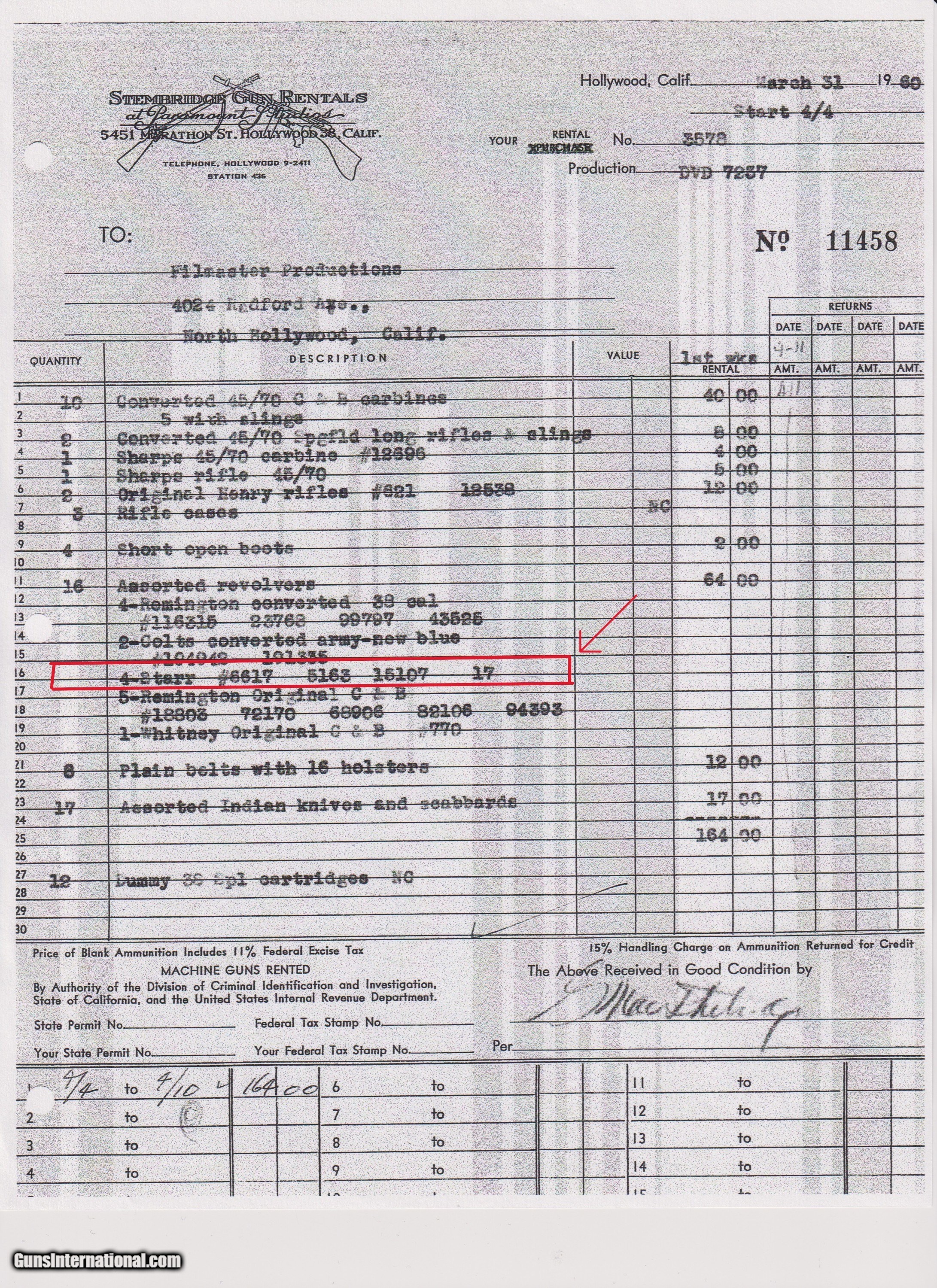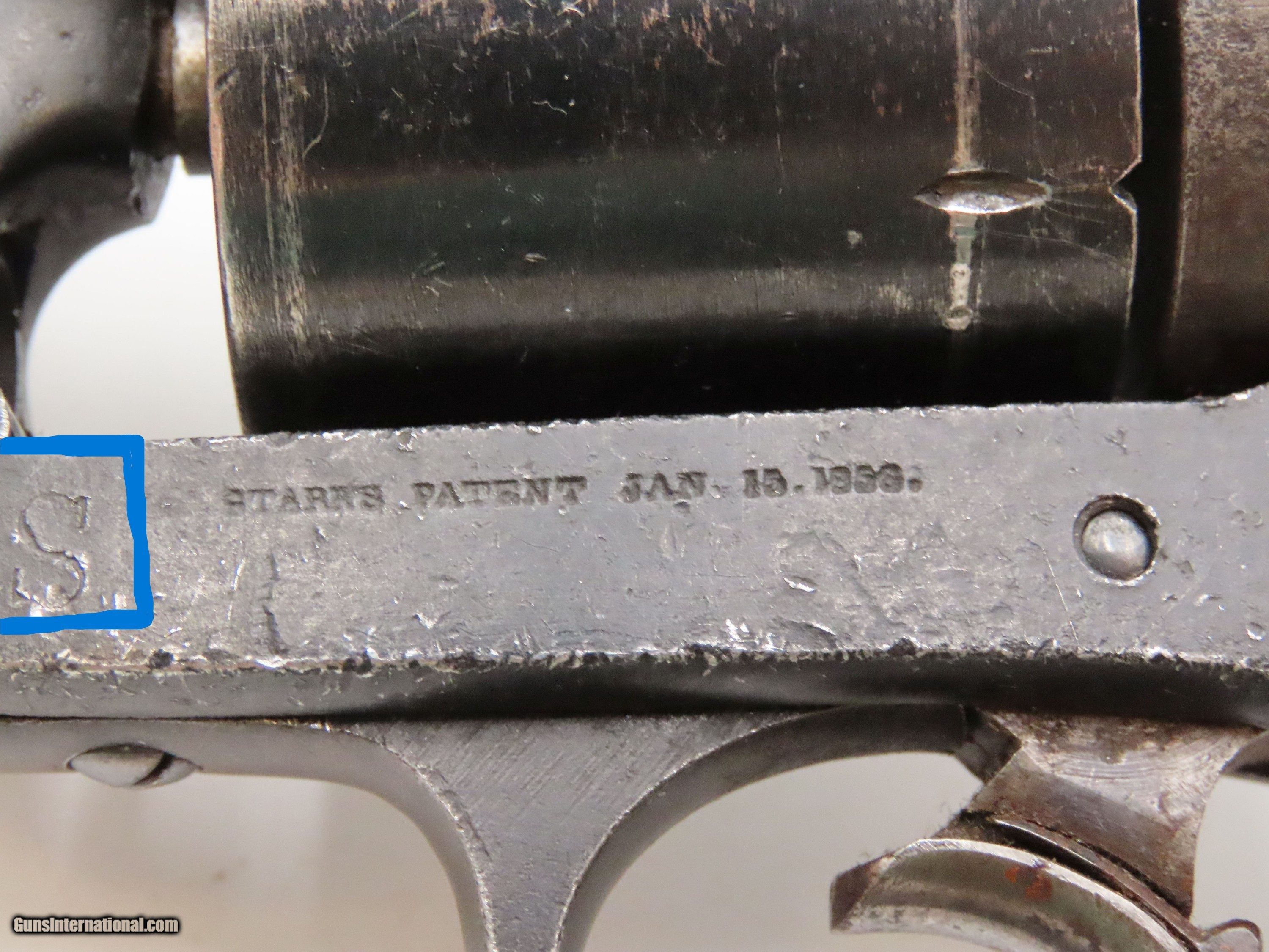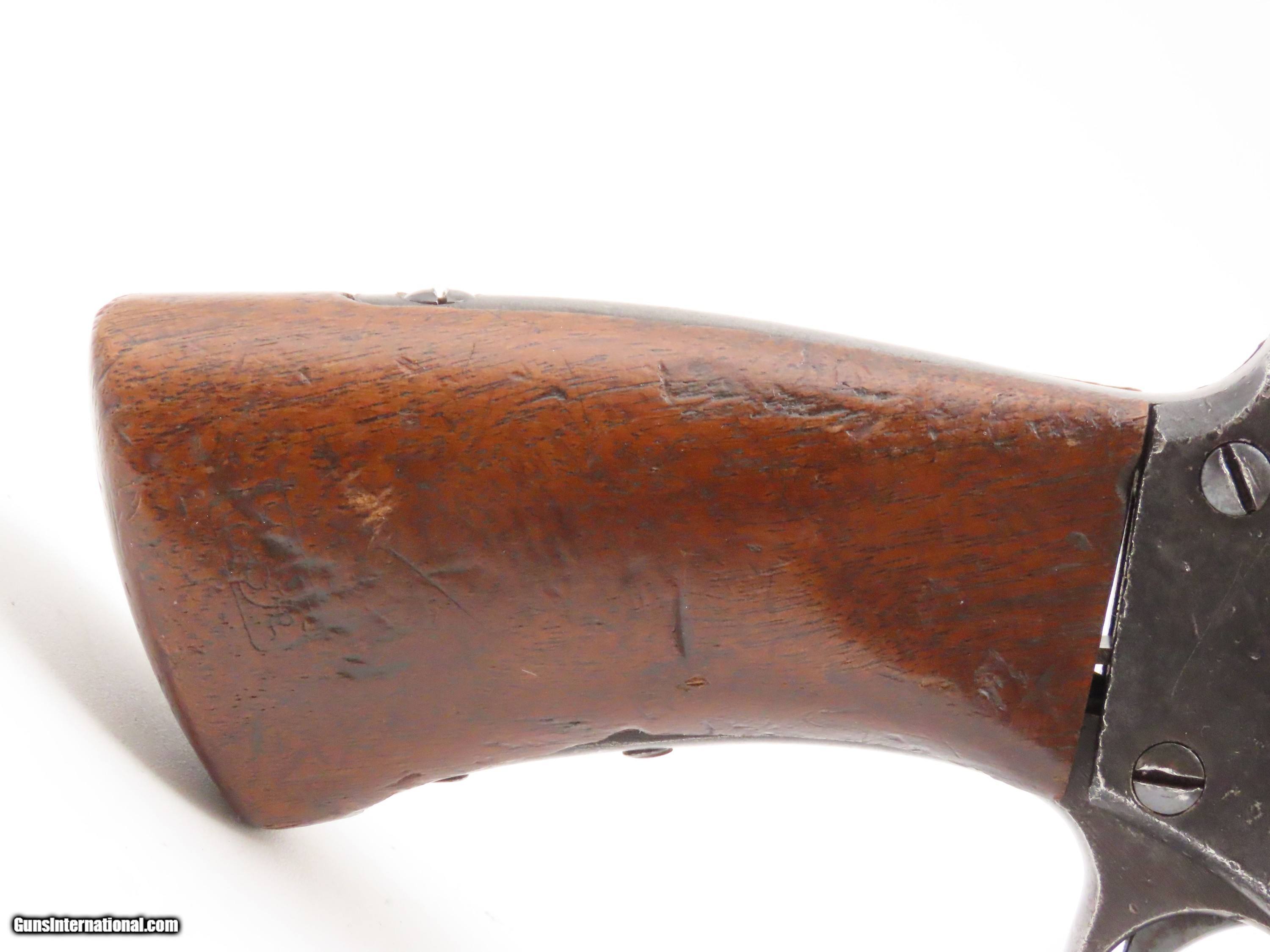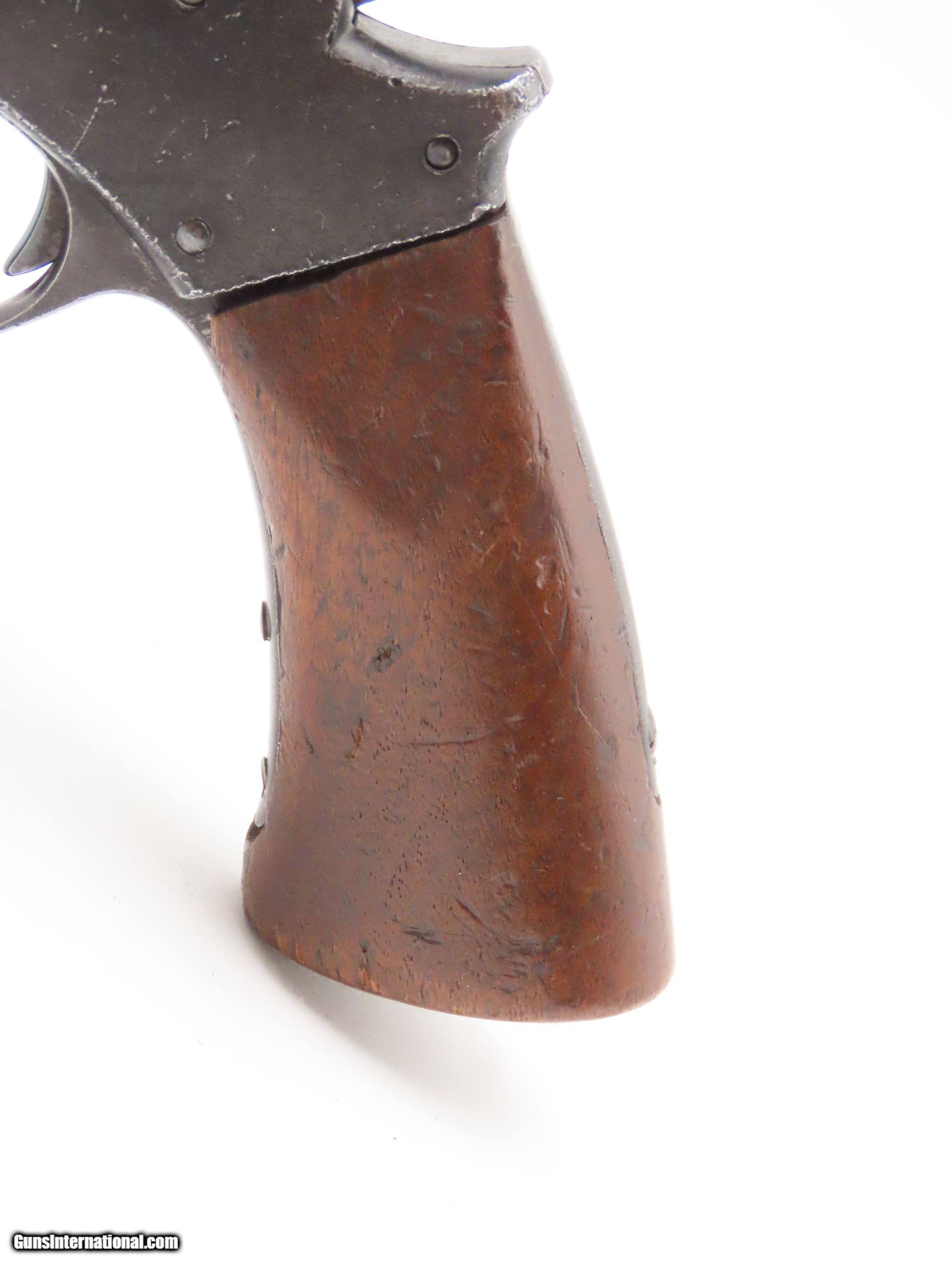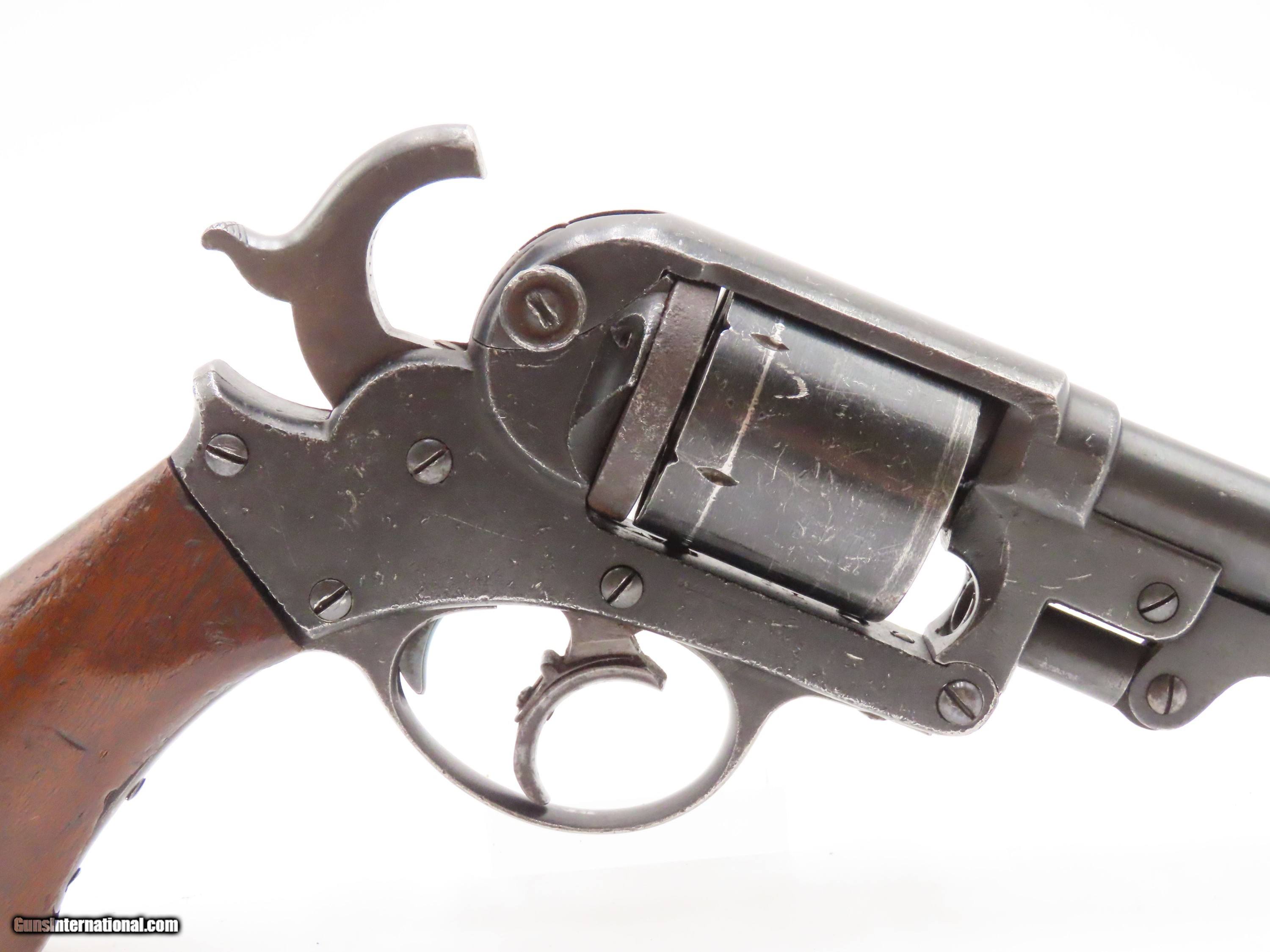 Description: STEMBRIDGE GUN RENTALS Antique STARR ARMS 1858 ARMY Revolver 2-Digit Serial With DEATH VALLEY DAYS PROVENANCE Here we present an antique Stembridge Gun Rentals Owned Starr Arms Company Model 1858 Army Double Action Revolver, made circa 1858. Not only does this revolver have a copy of an invoice from Stembridge Gun Rentals with this revolver listed by serial number (17—a really early number!), but we were able to use the information on the invoice to pinpoint the use of this gun to the long-running Western television show Death Valley Days. In particular, this invoice lists the production as “DVD 7237”. The number corresponds to the episode called “Pete Kitchen’s Wedding Night”, which was a Filmaster Production that aired June 7, 1960, just months after the date on this invoice. The show ran from 1952-1970 and includes 452 episodes! It is very likely that this revolver and all the other pieces on the invoice were used as props in many other American Western productions. This revolver would have started out life as a .44 caliber percussion revolver and was converted either late in the 19th century or perhaps even in the early-20th century when being used as a film prop. Though not nearly as many of these were made as the Colt 1860s or Remington 1858s, the Starr represents probably the third-most issued revolver during the American Civil War. Requiring all manner of firearms during the Civil War, the U.S. government commissioned the Starr Arms Company to produce a Single Action version of its Double Action revolver. Both versions were eventually taken on by the North with at least 47,454 produced in all. This gun would have been used most widely by cavalrymen. It differed tremendously from the other revolvers in its class by being double actioned. The large, curved trigger cocked the hammer and revolved the cylinder, and, at the end of travel, tripped the trigger at the back of the trigger guard, firing the revolver. The overall condition is good. This piece is refinished. The large Stembridge “S” is prominent on the left side of the frame. Shiny, bright bore with strong rifling. The grip is solid with average handling and cartouche remnants on both sides, though it is a likely swap from another Starr given the fit, which is solid but with a gap to the frame at the top. Markings are legible. Due to its role in the film industry, this example is non-functioning, although some elements of the action still work. The large double action trigger will cock the hammer, but not drop it. The interior trigger will drop the hammer. The cylinder does not index at present. The thumbscrew is very tight and may have been made to stay in place to prevent any tampering by Stembridge. The front of the frame and the hammer channel are serial numbered 17, while the cylinder and the hammer bear different numbers. Here is a revolver with a low number and is an artifact of the American Civil War as well as American Western film. Such a neat piece! Own the original! This is a legitimate antique and not a reproduction. Barrel is 6 inches. Caliber: .44 Centerfire Overall condition as seen in photos. Very Fast. Very Safe. FREE SHIPPING WORLDWIDE. Delivered directly to your door by express mail! Guaranteed AUTHENTIC & Includes CERTIFICATE OF AUTHENTICITY. $2750 #257037 Antique: Yes Price: $2,750.00 Buy Now Pay with