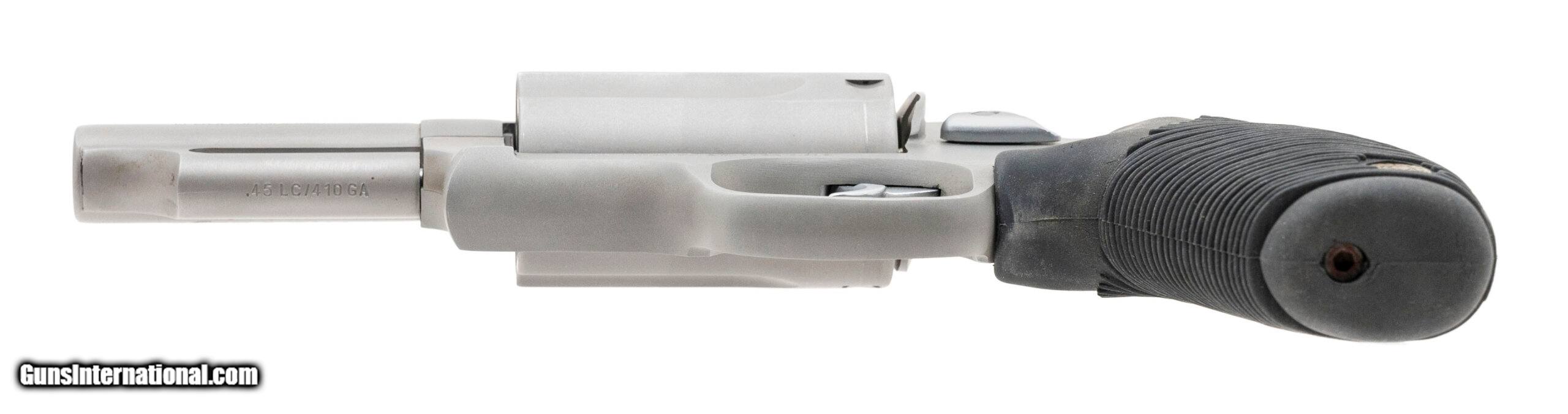 Description: "SN:By727948 Modern production .45 LC-.410 Bore with a 3"" barrel. Bore is in very good condition. Scarce double action Ultra-Lite Titanium framed revolver Finish is in very good condition with holster wear. Grips are in excellent condition. Overall condition is very good. SOLD |