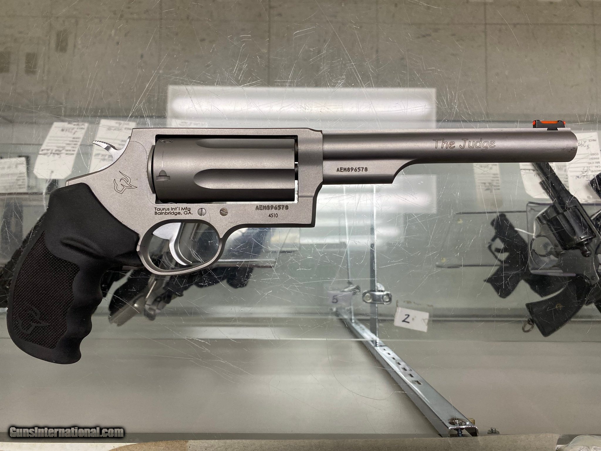 Description: Guns Listing ID: 1311072 TAURUS 4510 THE JUDGE CALIBER - .45 LC/.410 GA SOLD Manufacturer: TAURUS Model: 4510 THE JUDGE Caliber Info: .45 LC/.410 GA Condition: Used - Non-Certified Barrels: 7 BARREL Finish: SILVER |