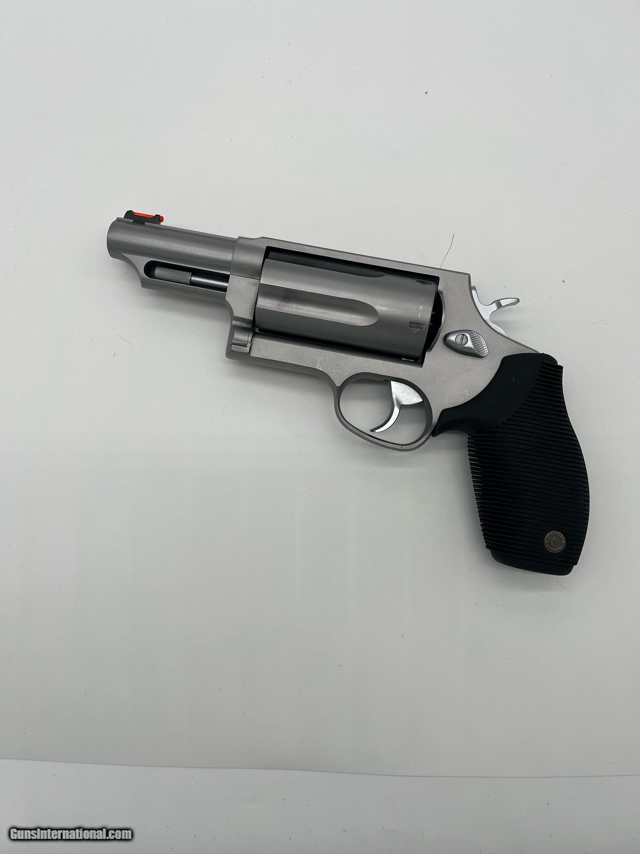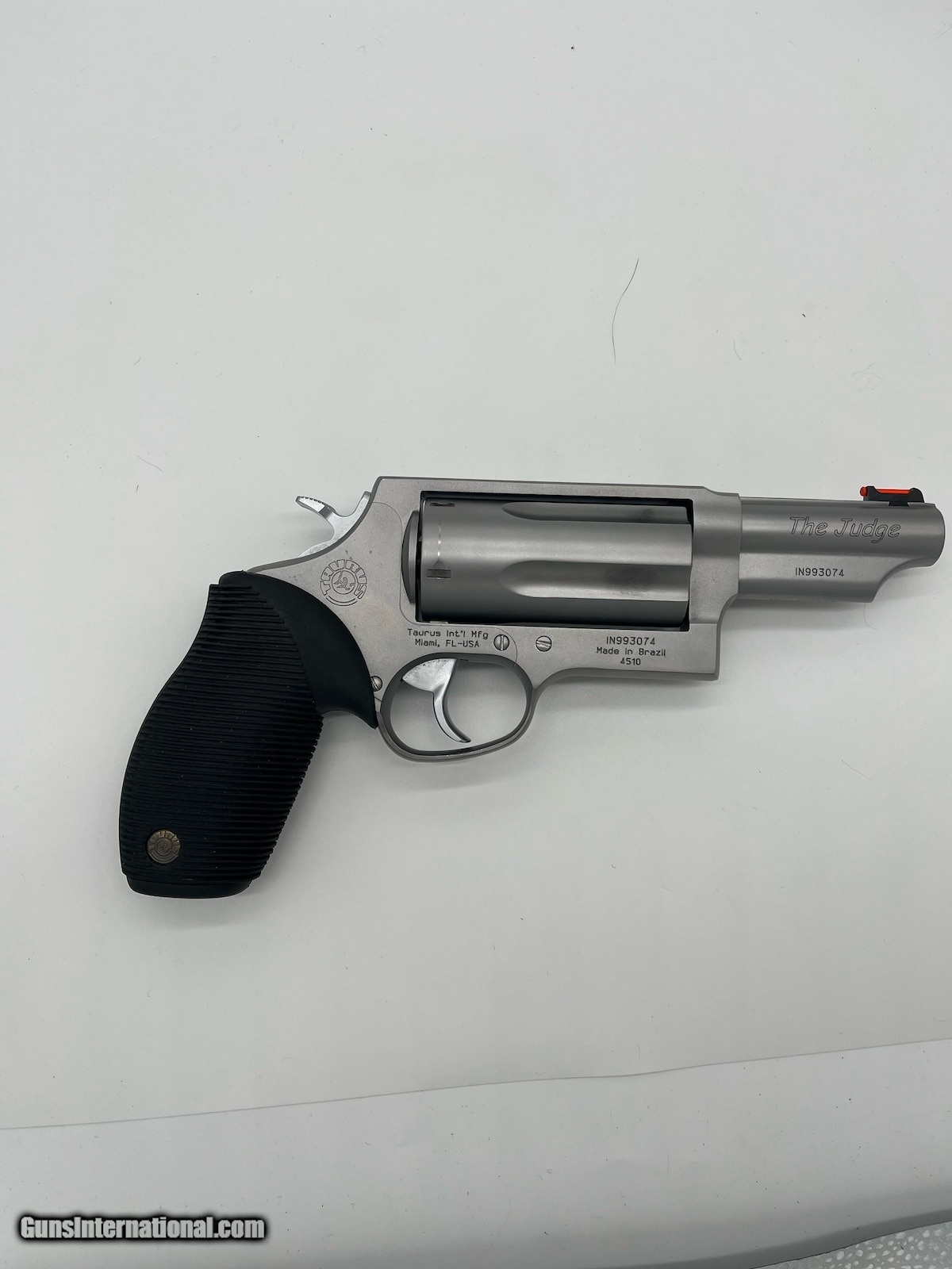 Description: Guns Listing ID: 531852 no box SOLD Manufacturer: TAURUS INTERNATIONAL MFG., INC. Model: THE JUDGE Caliber Info: .45 LC/.410 GA Condition: Used - Non-Certified Barrels: 3 BARREL Finish: STAINLESS |