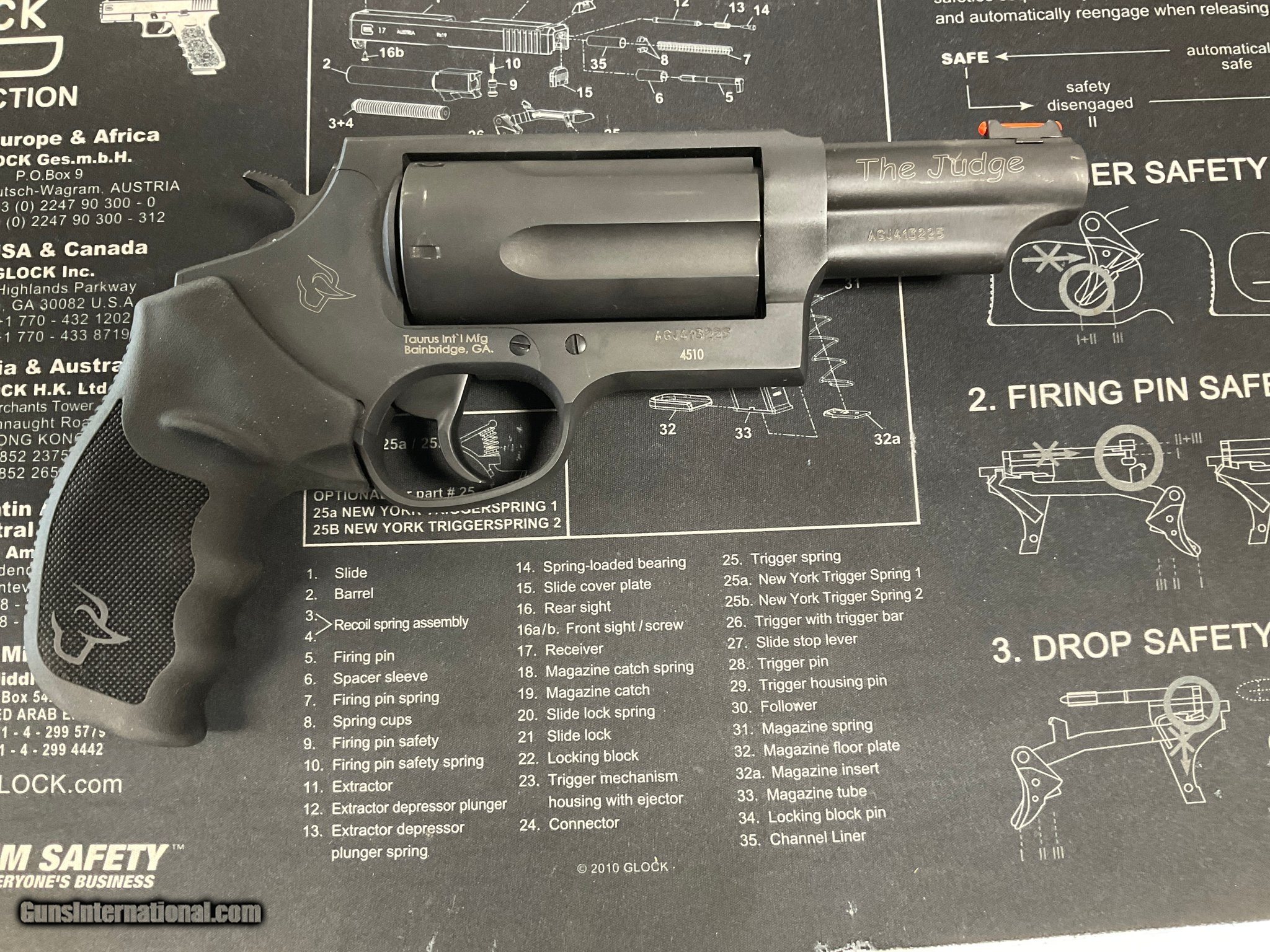 Description: Guns Listing ID: 495229 Taurus Judge in good condition. SOLD Manufacturer: TAURUS Model: JUDGE Caliber Info: .45 ACP/.410 GA Condition: Used - Non-Certified Barrels: 3 Finish: black |