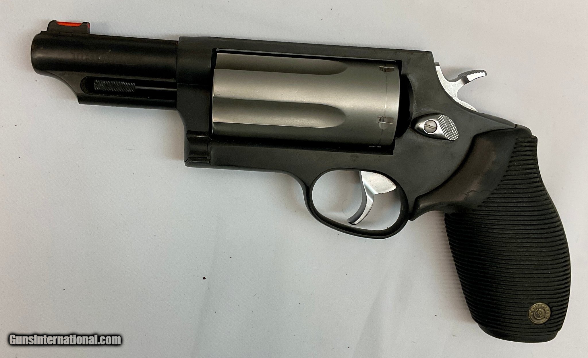 Description: Guns Listing ID: 549548 The Taurus Judge, a .45 Colt/.410 revolver, gained popularity for its ability to fire both pistol cartridges and shotshells, making it a versatile option for personal and home defense. Originally named the 4410, it was renamed \"The Judge\" after it was discovered judges in Miami were using it for courtroom self-defense. Its design, with a rifled barrel, allows it to fire .45 Colt rounds accurately, while also handling .410 shotshells, though the rifling is shallower to minimize shot dispersion. SOLD Manufacturer: TAURUS Model: JUDGE Caliber Info: .45 ACP/.410 GA Condition: Used - Non-Certified Barrels: 3" BARREL Action: REVOLVER Finish: black |