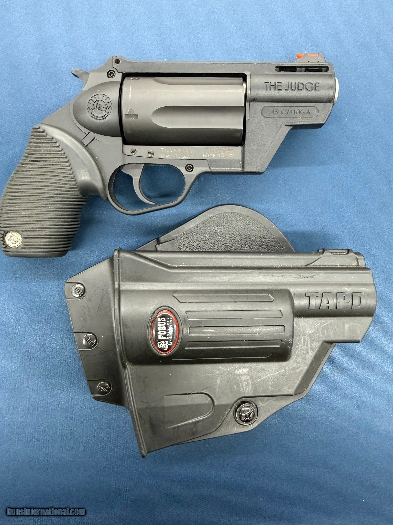 Description: Guns Listing ID: 574069 Taurus Judge Public Defender 45 LC, 410 revolver in very good condition!! Comes with a Fobus holster as seen in the pics SOLD Manufacturer: TAURUS Model: Judge Caliber Info: .45 LC/.410 GA Condition: Used - Non-Certified Barrels: 2" BARREL Action: REVOLVER Finish: GREY Weight: 1.6 lbs. |