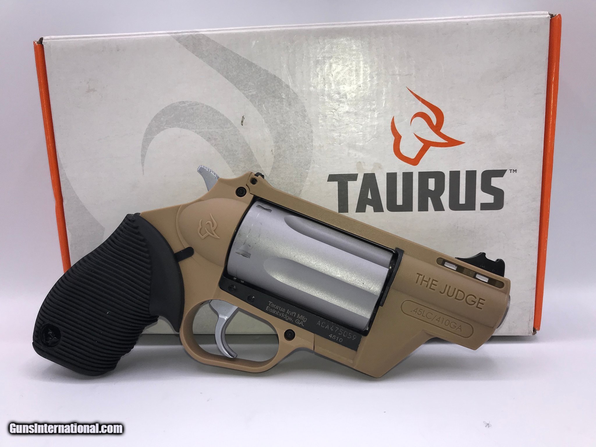 Description: Guns Listing ID: 519039 This is a pre-owned revolver TAURUS THE JUDGE .45/410 5 ROUNDS and is in good condition just the way is in the pictures. Action: DA/SA Caliber: .45 Colt / .410 Gauge Barrel Length, in 2.5\" Capacity, rd: 5 Sights: Fixed Fiber Optic Front / Fixed Rear Frame: Small Frame Material: Polymer Frame Finish: Flat Dark Earth Cylinder Material: Stainless Steel Cylinder Finish: Matte Stainless Grips: Black Ribber (Ribbed Rubber) Safety: Transfer Bar Overall Length, in 7.65\" 0458038-UMM-SA SOLD Manufacturer: TAURUS Model: THE JUDGE Caliber Info: .45lc / .410 Condition: Used - Non-Certified Barrels: 2.5 Action: REVOLVER |