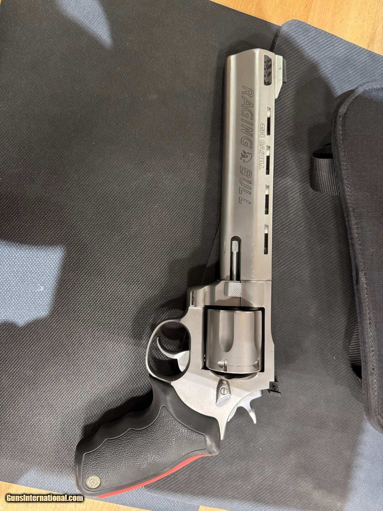 Description: Guns Listing ID: 495313 Excellent condition, lightly used. Comes with fabric and leather holsters (pictured). SOLD Manufacturer: TAURUS Model: TAURUS RAGING BULL Caliber Info: .454 CASULL Condition: Used - Non-Certified Barrels: 8.37 BARREL Finish: stainless |