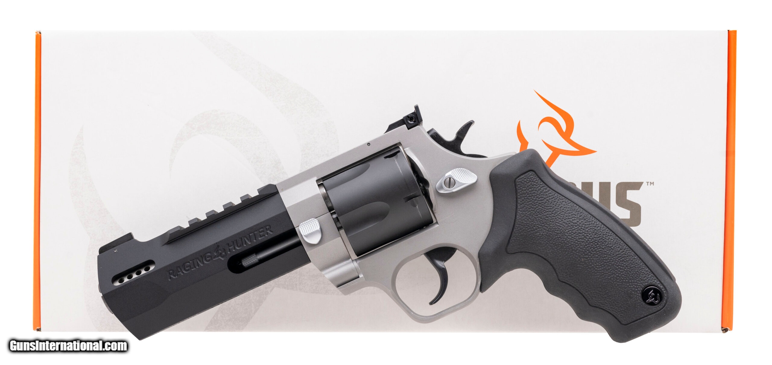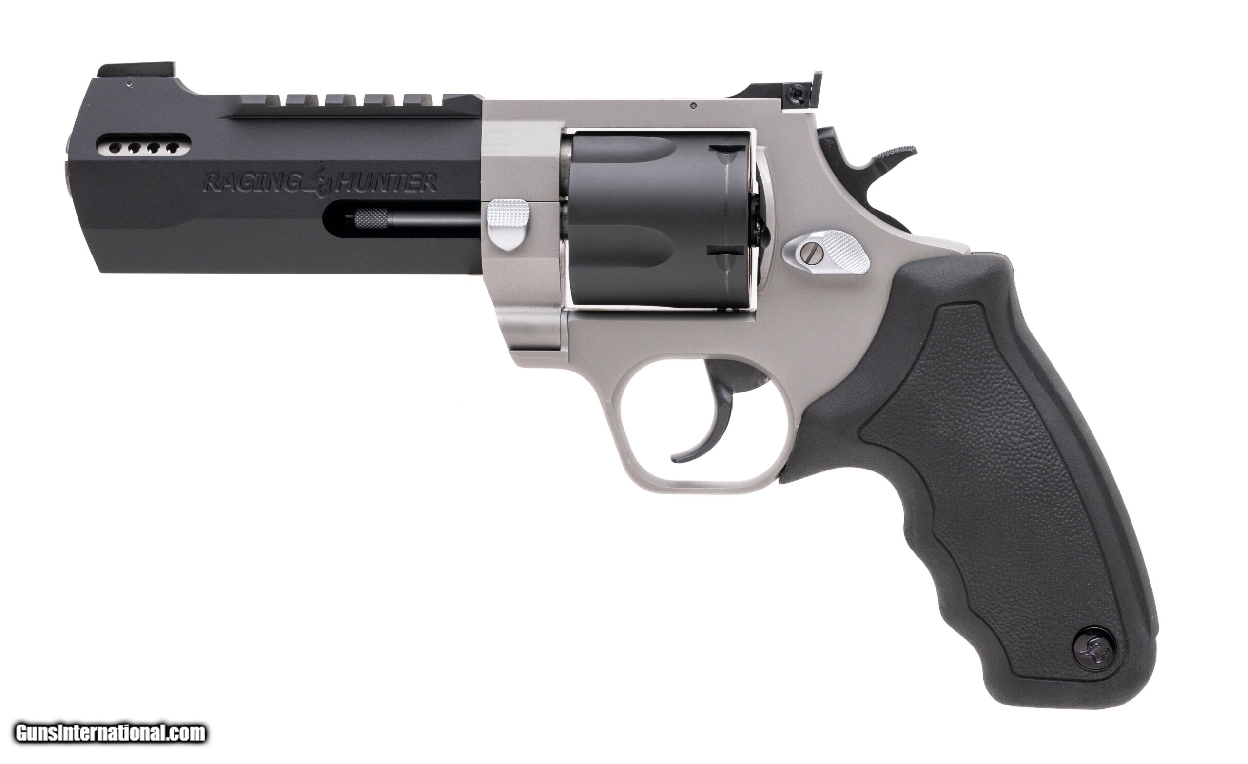 Description: "Taurus Raging Hunter Revolver. .454 Casull with an 5"" ported barrel. Double action two-tone revolver with a picatinny rail, steel frame, and matte black/grey finish. New. UPC: 725327617631 (STOCK PHOTO) SOLD |