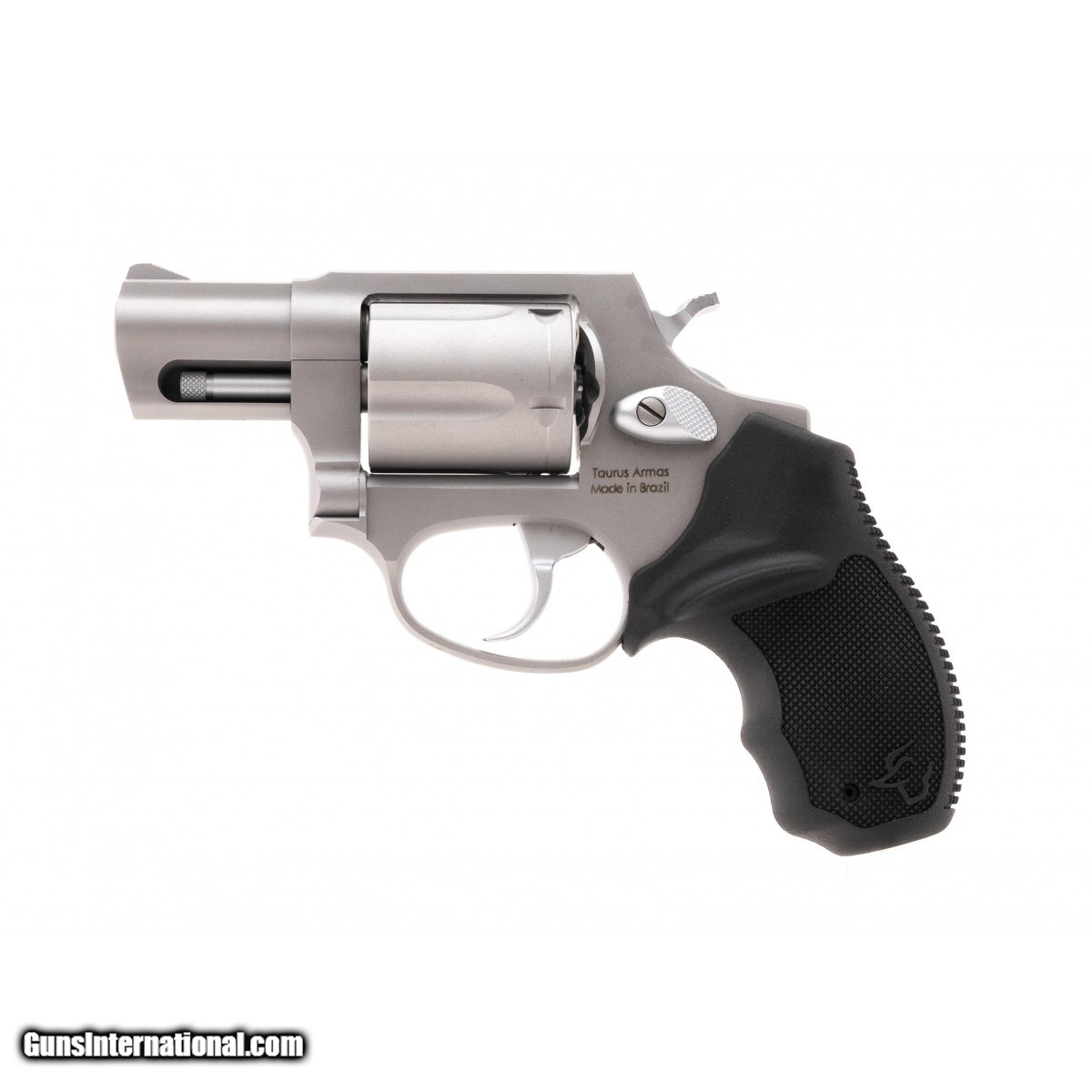 Stainless steel snub nose 5-shot capacity with black rubber grips. New. UPC: 725327203025