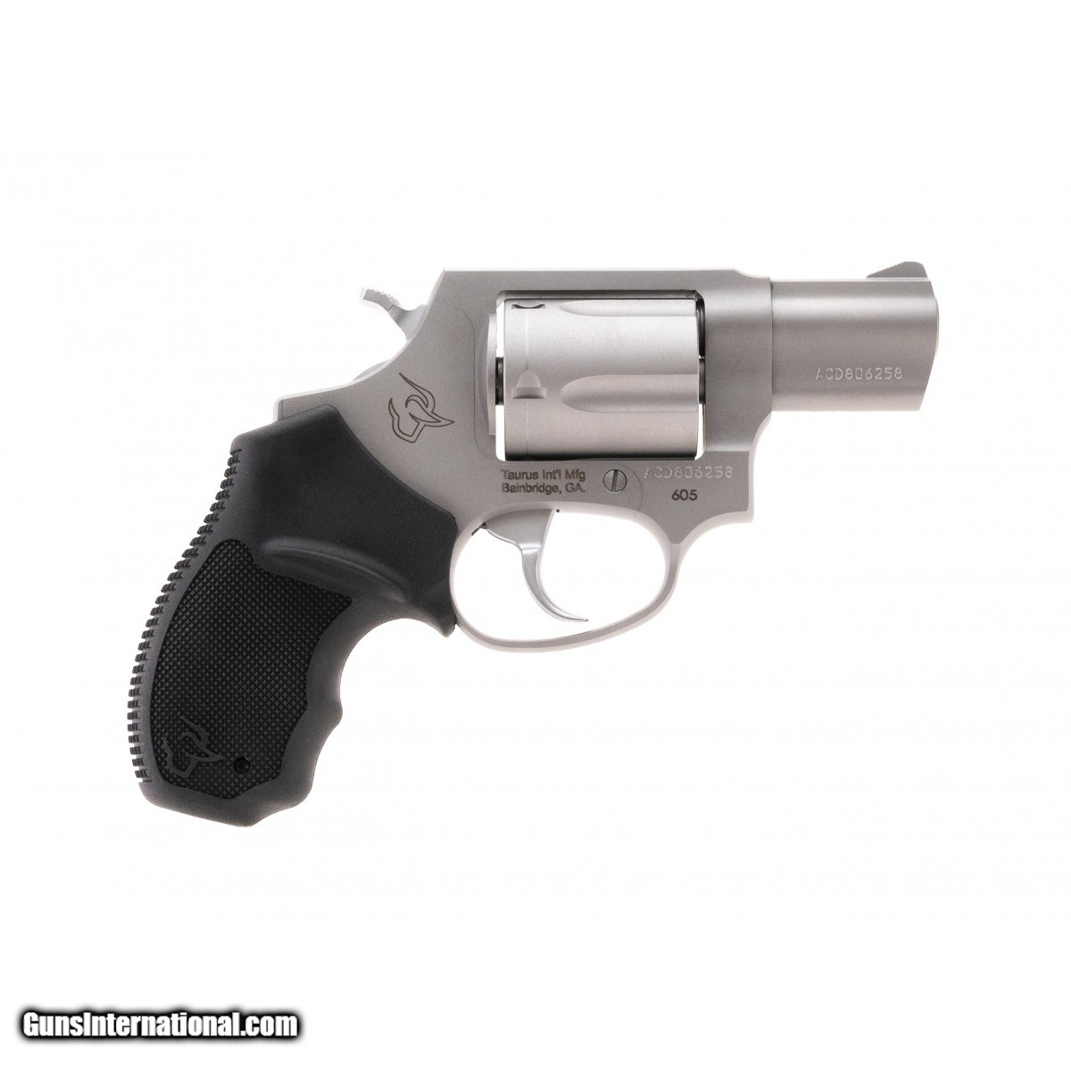 Stainless steel snub nose 5-shot capacity with black rubber grips. New. UPC: 725327203025
