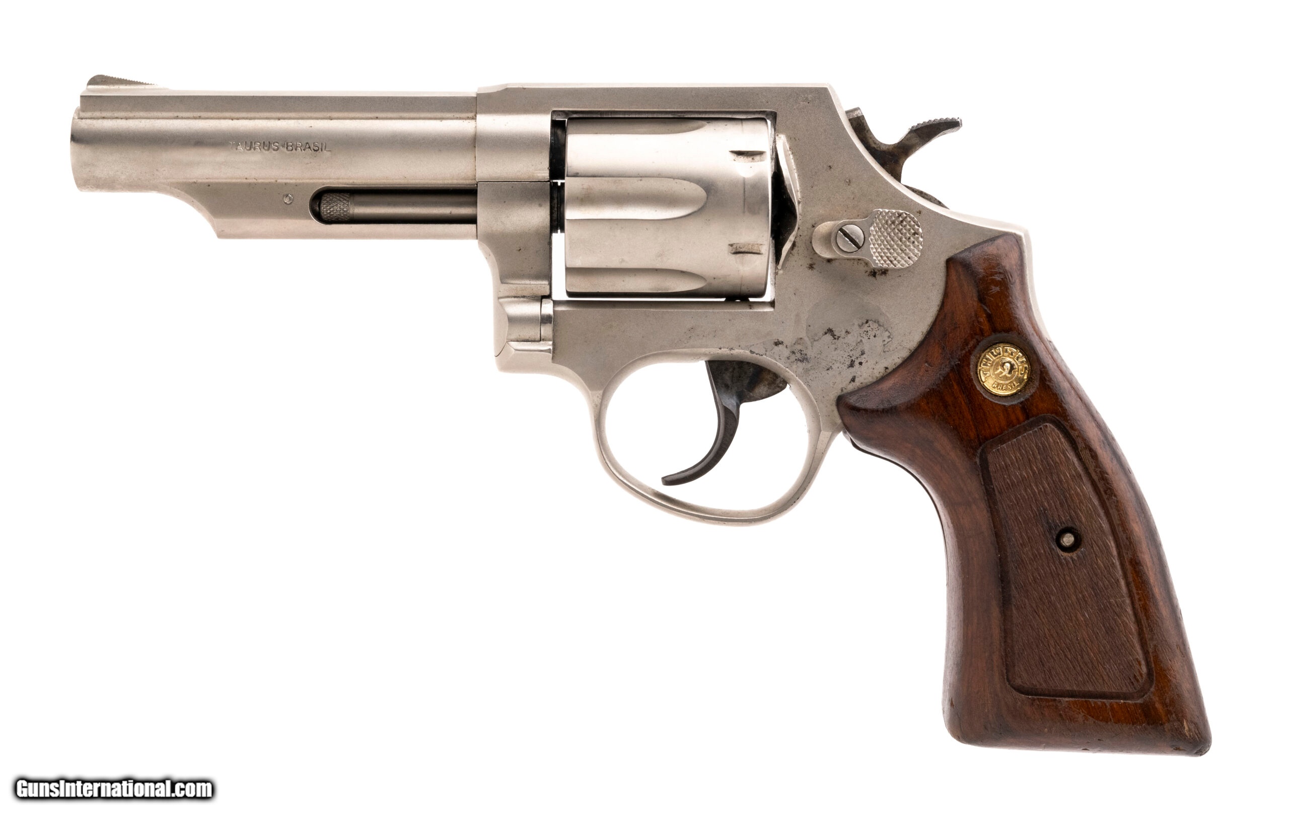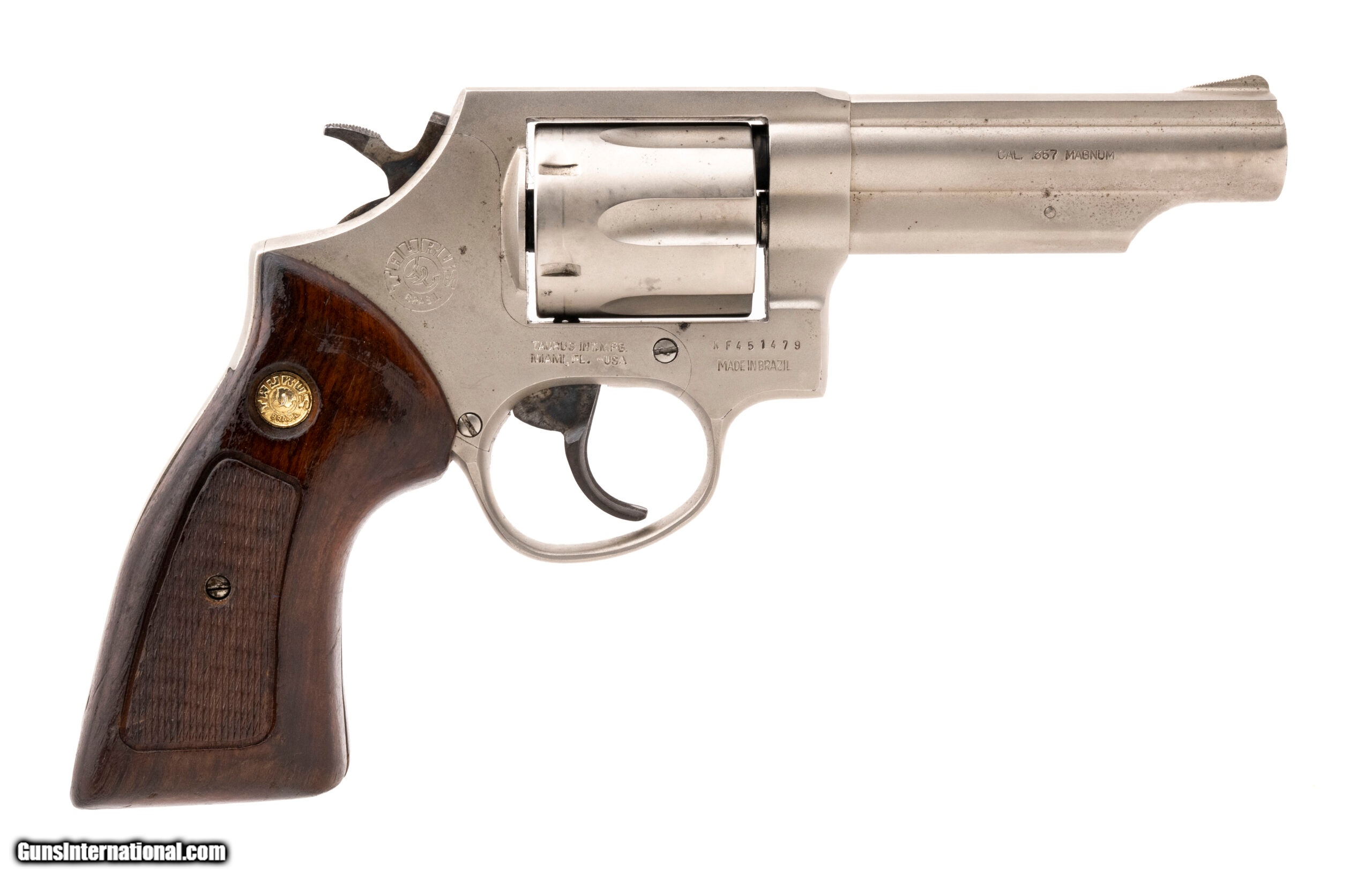 Description: "SN: KF451479. 1980's production .357 Mag with a 4"" barrel. Fixed sight service revolver with fixed sights. Has a satin nickel finish that shows blemishes and wear. Overall good condition. SOLD |