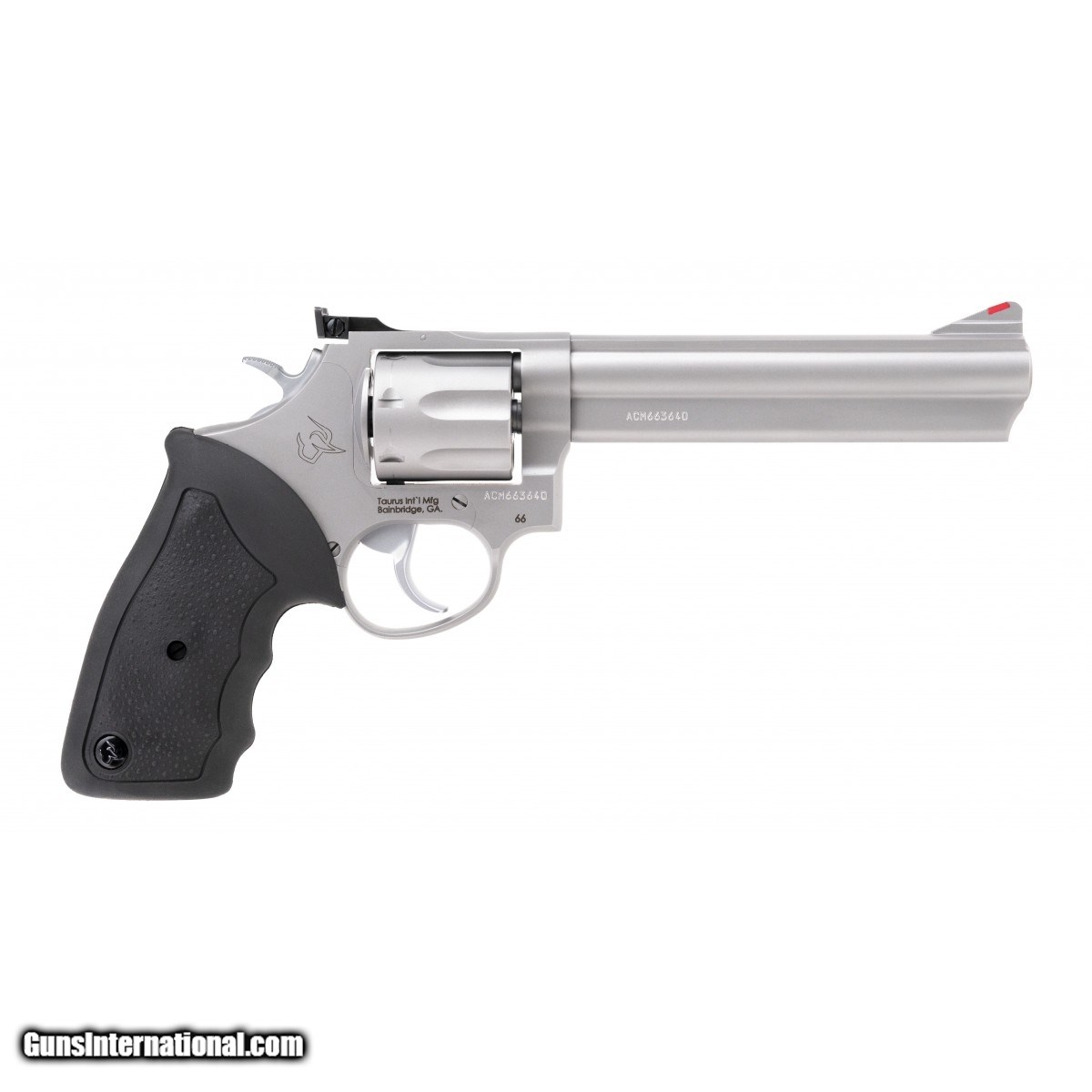 Double action/single action full frame revolver with 7 shots, full lug, and black rubber grips. New. UPC:725327200185