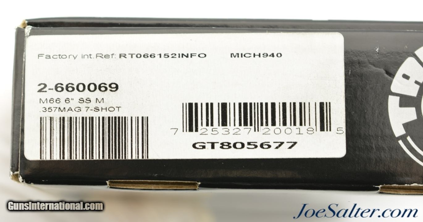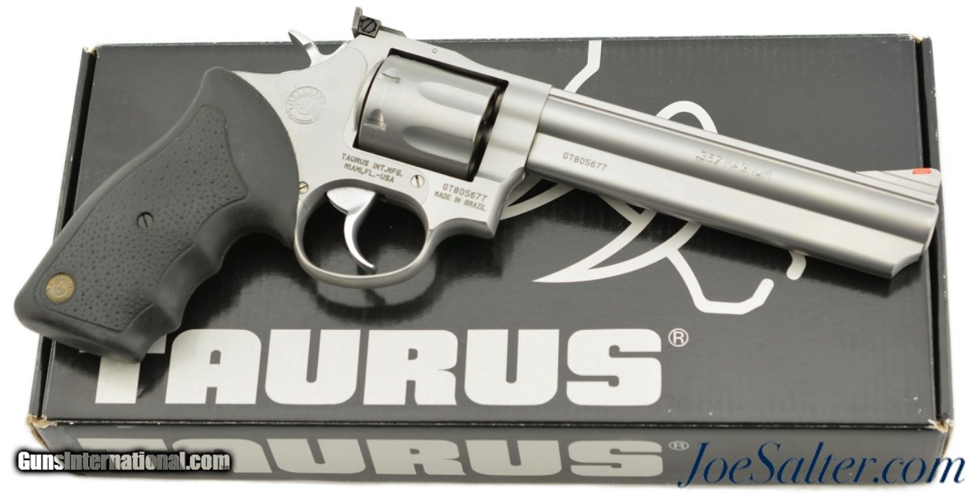 Description: Serial #GT805677, .357 Magnum, 6 inch barrel with an excellent bore. This is the Model 66 revolver manufactured by Taurus in Brazil. The 7 shot DA/SA revolver is in excellent condition retaining about 97-98% of the original matte stainless finish with only a very mild turn ring and light use marks. It comes in the original cardboard box numbered to the gun with manual, paperwork and gun key. FFL SOLD |