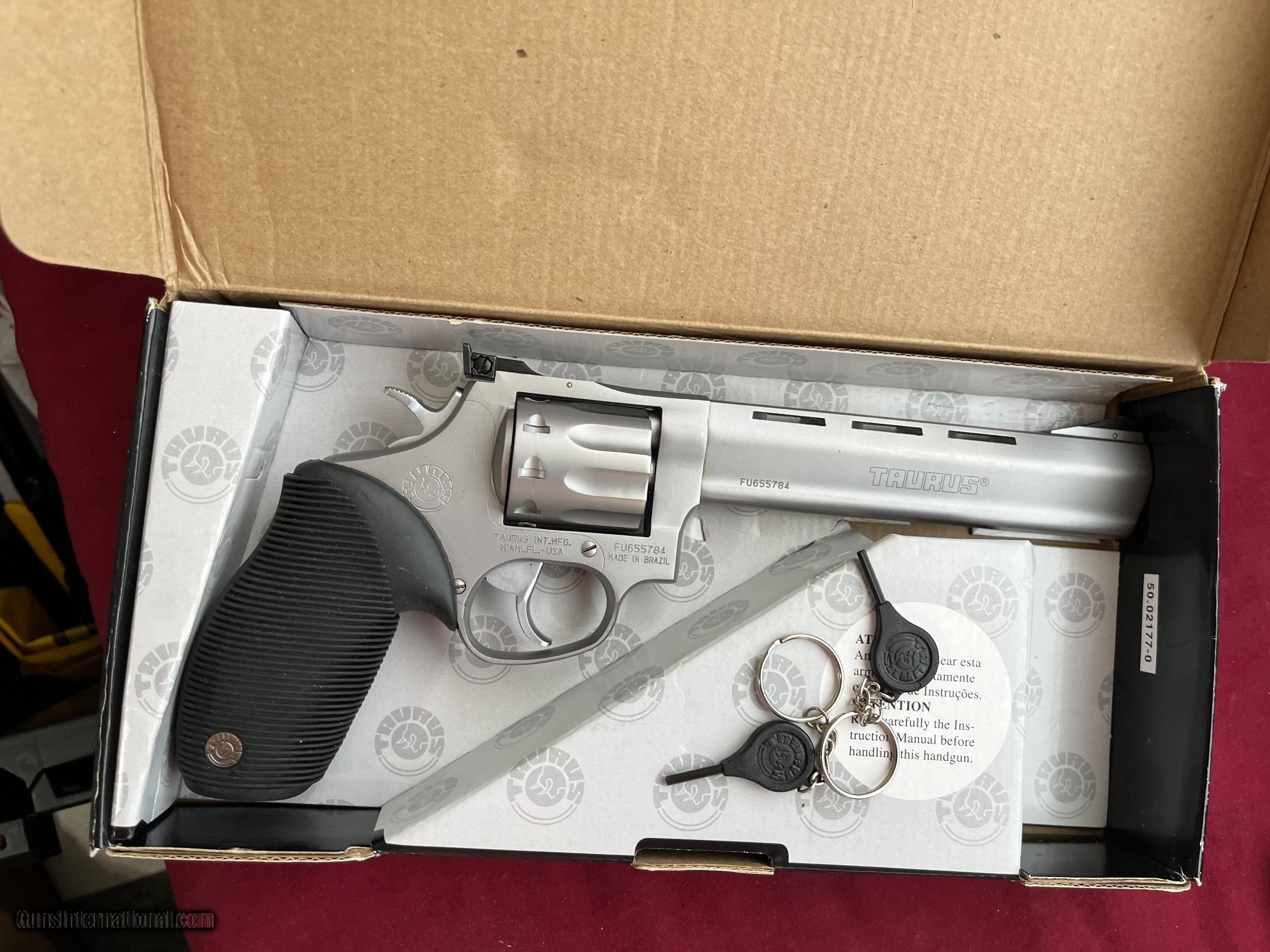 Description: TAURUS TRACKER STAINLESS REVOLVER, SER# FU655784, CALIBER 22 LR , 9 SHOT CYLINDER. TAURUS LOGO GRIPS. 6 1/2 " BARREL WITH A BRIGHT BORE. ADJUSTABLE REAR SIGHT. COMES WITH ORIGINAL BOX. EASTERN BRANCH FIREARMS ADD 35.00 SHIPPING – HANDGUN USPS PRIORTY MAIL ADD 35.00 SHIPPING – LONG GUNS GROUND SHIPPING Questions e-mail or call Glen at Eastern Branch Firearms 207-215-5021 TERMS – PLEASE READ BEFORE I DO NOT HAVE A LAYAWAY OPTION ( WE ACCEPT CREDIT CARDS ) -- I GET ALOT OF REQUEST FOR TRADES, I WOULD PERFER NOT TO DO TRADES ON MY INTERNET LISTINGS PAYMENT OPTIONS- We accept money orders, cashier’s checks , bank checks. sorry no personal checks. We accept all major credit cards please add 3% to the ’s cash discount price.(Maine Residents to pay 5% sales tax) .Handguns and long guns do need to be shipped separate. PLEASE do not send payment via FED EX . USPS & UPS are fine. Thank you. We include a signed copy of our FFL with each firearm shipped. SAFTY NOTICE- Buyer is solely responsible for determining that a used gun is safe to shoot. The firearms offered have not been test fired but have been given a visual inspection only for purposes. It is a requirement that every used firearm is inspected by a qualified gunsmith before firing. By , the buyer agrees to hold seller harmless against damages, injury, or death caused by defective merchandise. RETURN POLICY- All firearms come with a 3-day non firing , non messing with ( turning srews ,taking apart,removing parts, scoping. firing, cleaning or messing with in anyway) inspection/return privilege.Inspection is based on a visual review of the gun to confirm the gun is in the condition stated. In the case of a return, buyer pays all shipping charges & if paid for with a credit card buyer absorbs the 3% credit card charges . So please ask questions BEFORE you bid. Thanks for Looking and Good Luck!! U.S. sales only, no exports…this includes antiques. I will ship to third party for exporting 550.00 SOLD |