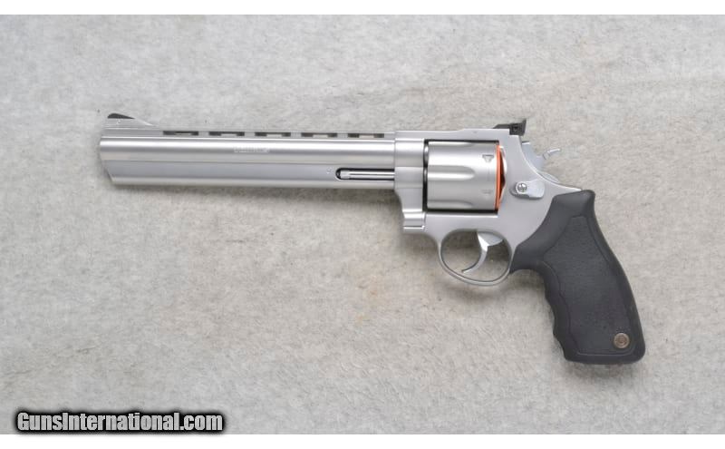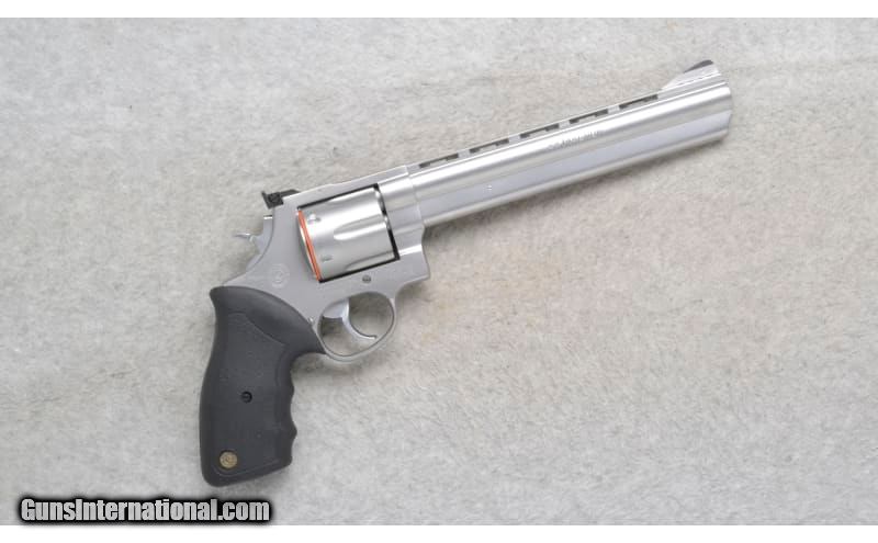 Description: This Taurus Model 44 is a 6 shot double action revolver in .44 Magnum Cal. It has an 8 3/8 inch ported ventilated rib barrel. A raised blade front sight with red and an adjustable white outline notch rear sight. The grip is a textured black rubber with finger grooves. .44 Magnum SOLD Chambers: 6 shot. Metal Condition: Excellent. Bore Condition: Excellent. Barrels: 8 3/8 inch ported ventilated rib barrel. Triggers: SA/DA Weight: 3 lb. 12 oz. Sights: Raised blade front with red. Adjustable white outline notch rear. Item Location: Richfield, WI |