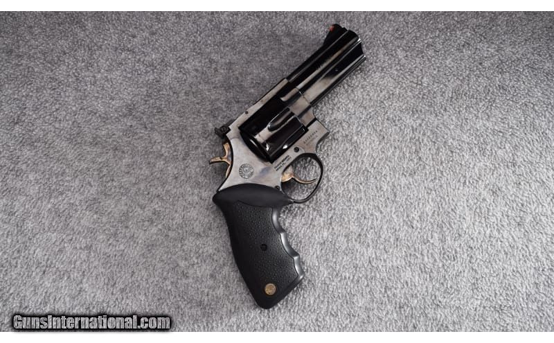 Description: This Taurus Model 44 in .44 Magnum remains in very good overall condition. The blue shows some wear on the sharp edges of the cylinder and there is a definitive cylinder ring present. The 4" barrel is ported to aid in recoil reduction. The bore remains bright and shiny. No box. .44 Magnum SOLD Metal Condition: Very Good Bore Condition: Excellent Barrels: 4" Ported Triggers: Factory DA / SA Butt Pad: Black Rubber With Finger Grooves Weight: 44 Oz Sights: Serrated Ramped Orange Front - U Notch Rear Item Location: Wheeling |
