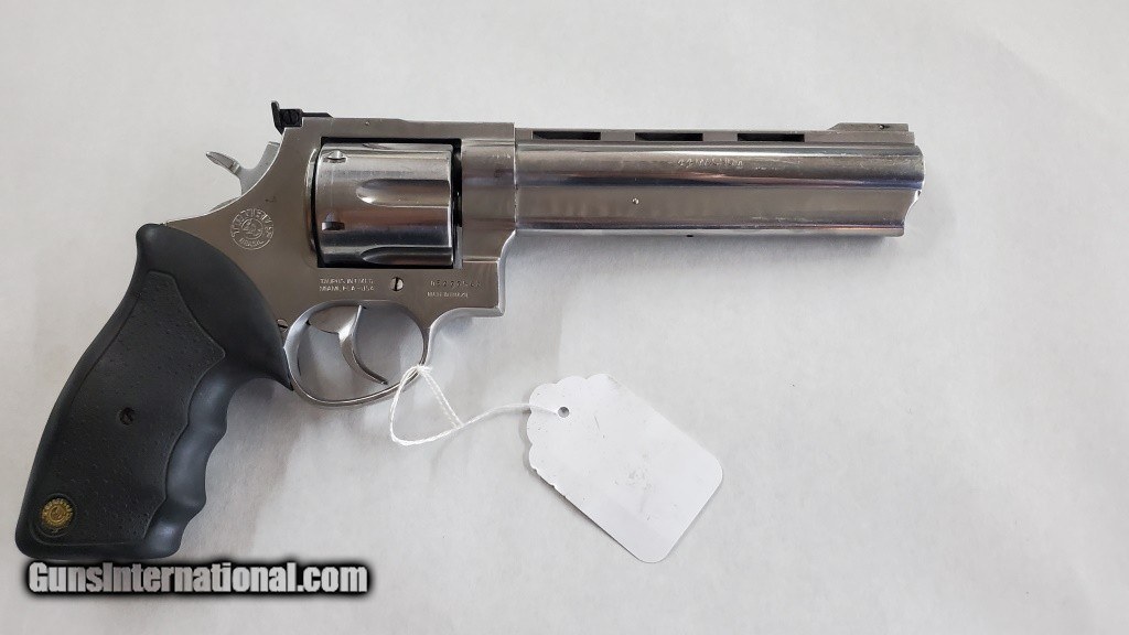 Description: Guns Listing ID: 560770 For Sale – Taurus Model 44 (.44 Magnum Revolver, 6\" Barrel) Up for sale is a Taurus Model 44, chambered in the powerful .44 Magnum and also capable of firing .44 Special. Built on a solid steel frame, this revolver is designed to handle heavy recoil while providing excellent accuracy and durability. With its 6-inch barrel, it offers improved sight radius and ballistic performance, making it a great choice for hunting, target shooting, or defense. Specifications Make / Model: Taurus Model 44 Caliber: .44 Magnum / .44 Special Action: Double-action / single-action revolver Capacity: 6 rounds Barrel Length: 6" Overall Length: ~11.5" Weight: ~45 oz (unloaded) Frame / Finish: All-steel construction, matte stainless or blued (varies by production) Grips: Rubber ergonomic grips with finger grooves Sights: Fully adjustable rear sight, red insert front ramp Condition: Very good – some light handling wear, tight lockup, and smooth action Highlights 6-inch barrel provides excellent accuracy and velocity for .44 Magnum loads Strong Taurus frame ensures durability and recoil control Double-action/single-action trigger for versatile shooting Compatible with both .44 Magnum and lighter .44 Special rounds Great option for handgun hunting, silhouette shooting, or as a powerful range revolver ?? Big-bore performance at an affordable price – this Taurus Model 44 with a 6-inch barrel is built to deliver power and precision. SOLD Manufacturer: TAURUS Model: 44 Caliber Info: .44 MAGNUM Condition: Used - Non-Certified Barrels: 6 BARREL Action: REVOLVER Finish: stainless steel |
