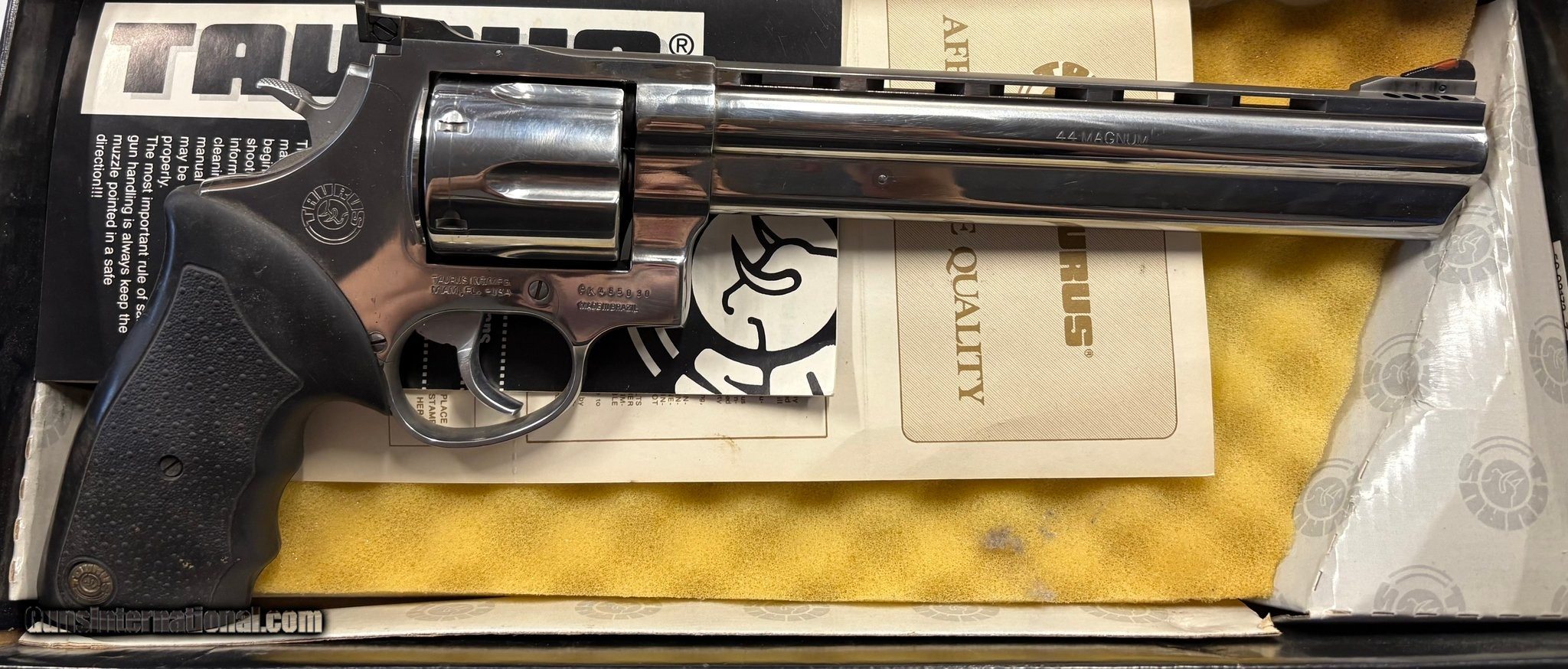 Description: Guns Listing ID: 610226 Very Good Condition Old Style Shiny Stainless with Original Box Manufacturer: TAURUS Model: 44 Caliber Info: .44 MAGNUM Condition: Used - Non-Certified Barrels: 8.4" BARREL Action: DOUBLE ACTION Finish: STAINLESS Weight: 3.6 LBS. Price: $579.99 Contact Seller |
