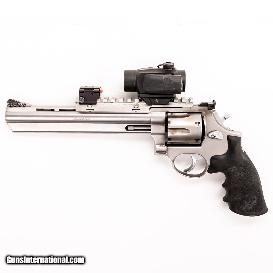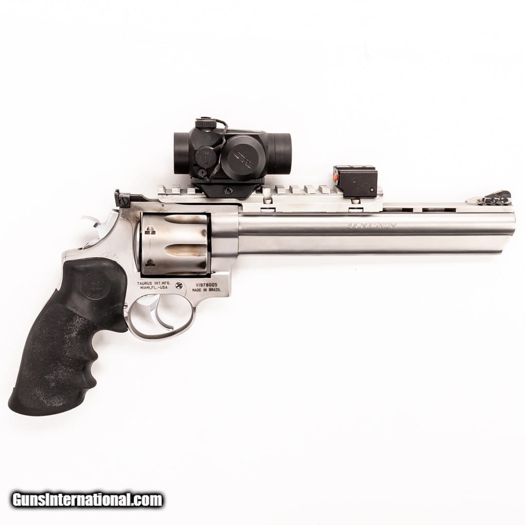 Description: Guns Listing ID: 394162 The Taurus 44 is a well-made revolver chambered in the heart stopping .44 Magnum cartridge. It is surprisingly affordable and excellent for self-defense against pretty much anything with legs. This handgun includes a Vortex Sparc red dot, a Laserlyte laser mounted, and the original case. SOLD Manufacturer: TAURUS Model: 44 Caliber Info: .44 MAGNUM Condition: Used - Certified Barrels: 8.4 BARREL Finish: STAINLESS |