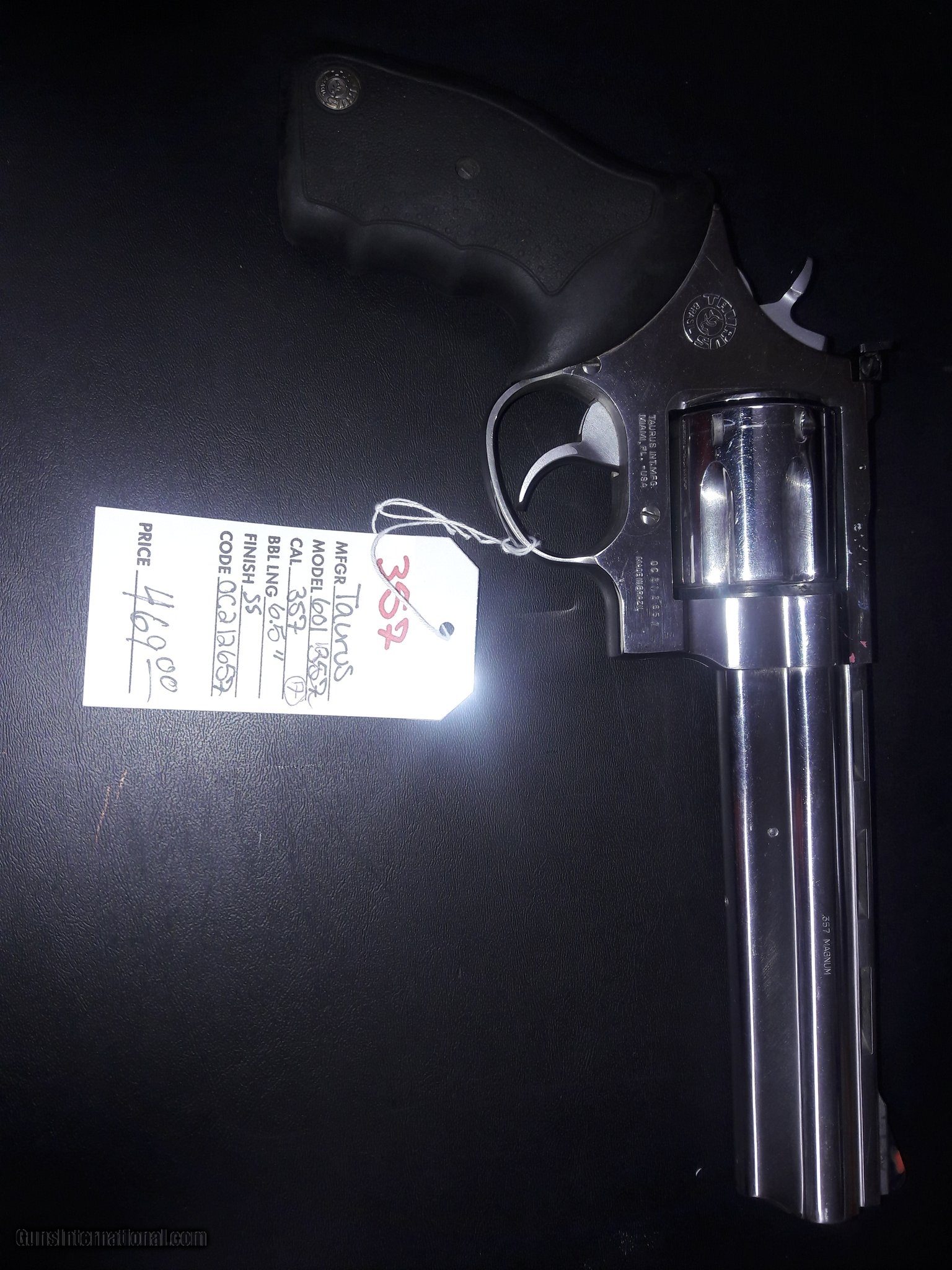 Description: Guns Listing ID: 1307813 With soft case. SOLD Manufacturer: TAURUS Model: 601 Caliber Info: .357 MAG Condition: Used - Non-Certified Barrels: 6.5 BARREL Finish: STAINLESS |