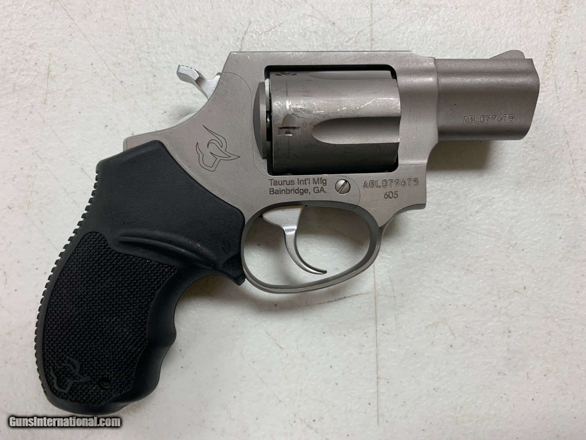Description: Guns Listing ID: 477450 Has scuffs and scratches (SEE PICS). SOLD Manufacturer: TAURUS Model: 605 Condition: Used - Non-Certified Barrels: 2 Gauge Info: .357 MAG Finish: gray |