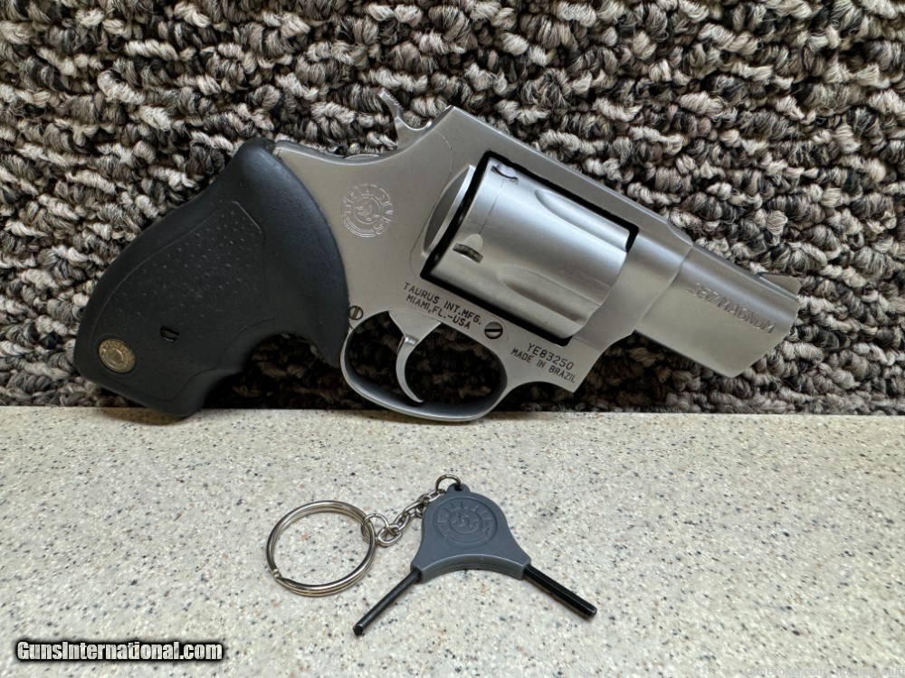 Description: Guns Listing ID: 1411119 This listing is for a USED Taurus 605 DA/SA 357 Mag SS Finish Synthetic Grip 2\" BBL 5 Shot. This is a used gun, it has been fired and will have residue present. This Taurus 605 is chambered in 357 Magnum, and it will hold 5 rounds in the magazine. This revolver comes with a 2 inch barrel. It comes equipped with a fixed front sight, and a fixed rear sight. There are light scratches present on the barrel, cylinder, and on the frame. There is rust present on the grip screw. The action appears to be in good condition, the finish appears to be in overall good condition, and the bore appears to be in good condition. This revolver comes with a hammer lock key. This would be a great concealed carry revolver. ** DISCLAIMER** THIS FIREARM HAS NOT BEEN TEST FIRED*** SOLD Manufacturer: TAURUS Model: 605 Caliber Info: .357 MAG Condition: Used - Non-Certified Barrels: 2 BARREL Finish: STAINLESS STEEL |