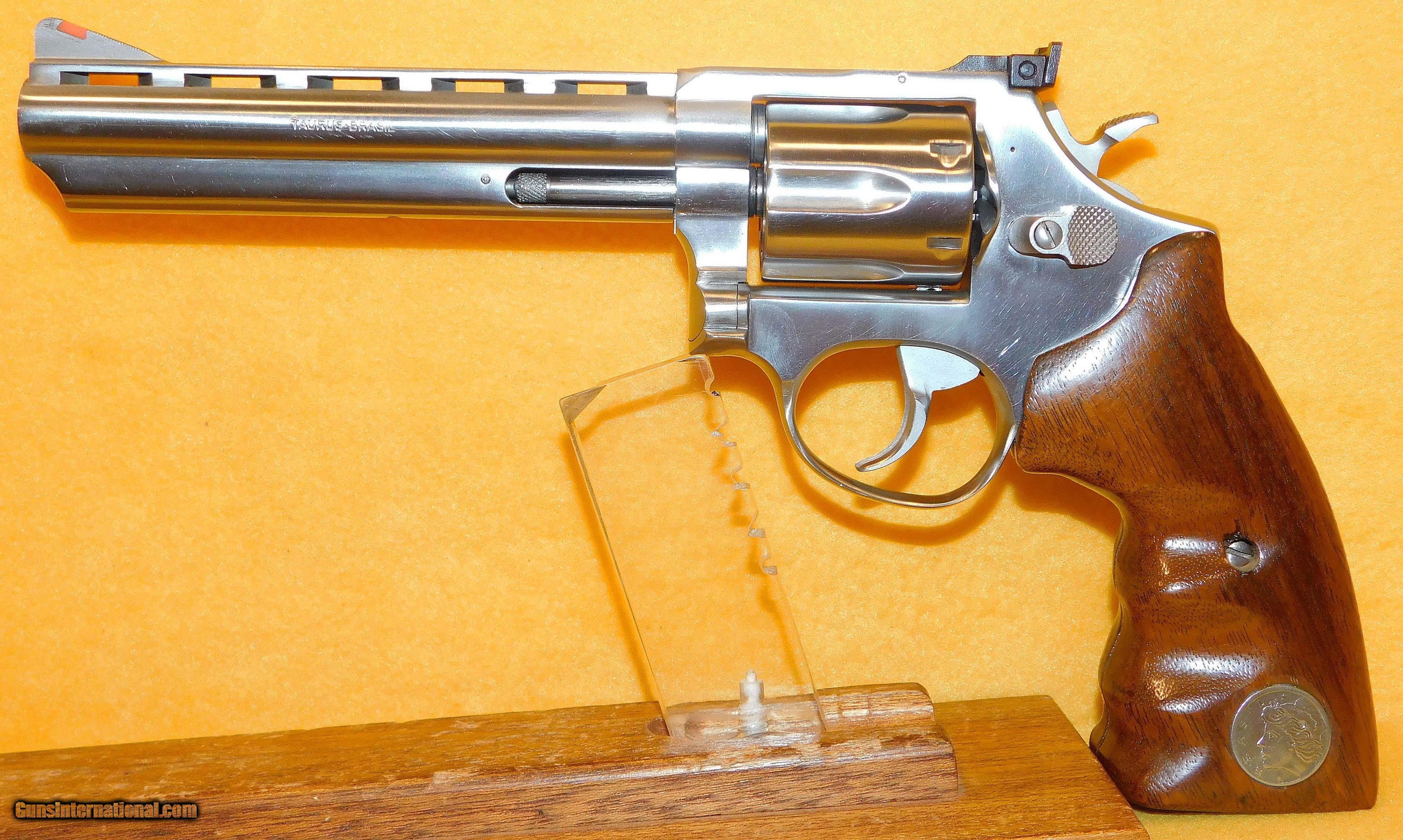 Description: TAURUS 669 IN .357 MAGNUM CAL., WITH 6" BARREL. COLOR STAINLESS STEEL. CONDITION 96%. SERIAL NUMBER IH188701. TAURUS MODEL 669 IN .357 MAGNUM CALIBER, VENT RIB STAINLESS STEEL BARREL WITH MIRROR BORE, ADJUSTABLE REAR SIGHT WITH RED INSERT FRONT BLADE, REPLACEMENT WOOD TARGET GRIPS, 96% OVERALL CONDITION, OUR STOCK # D2926 SOLD |